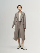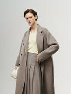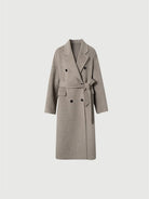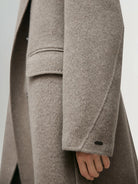 A premium wool coat in pumice gray. Designed with structured shoulders and clean lines, it offers timeless elegance and warmth for the season.