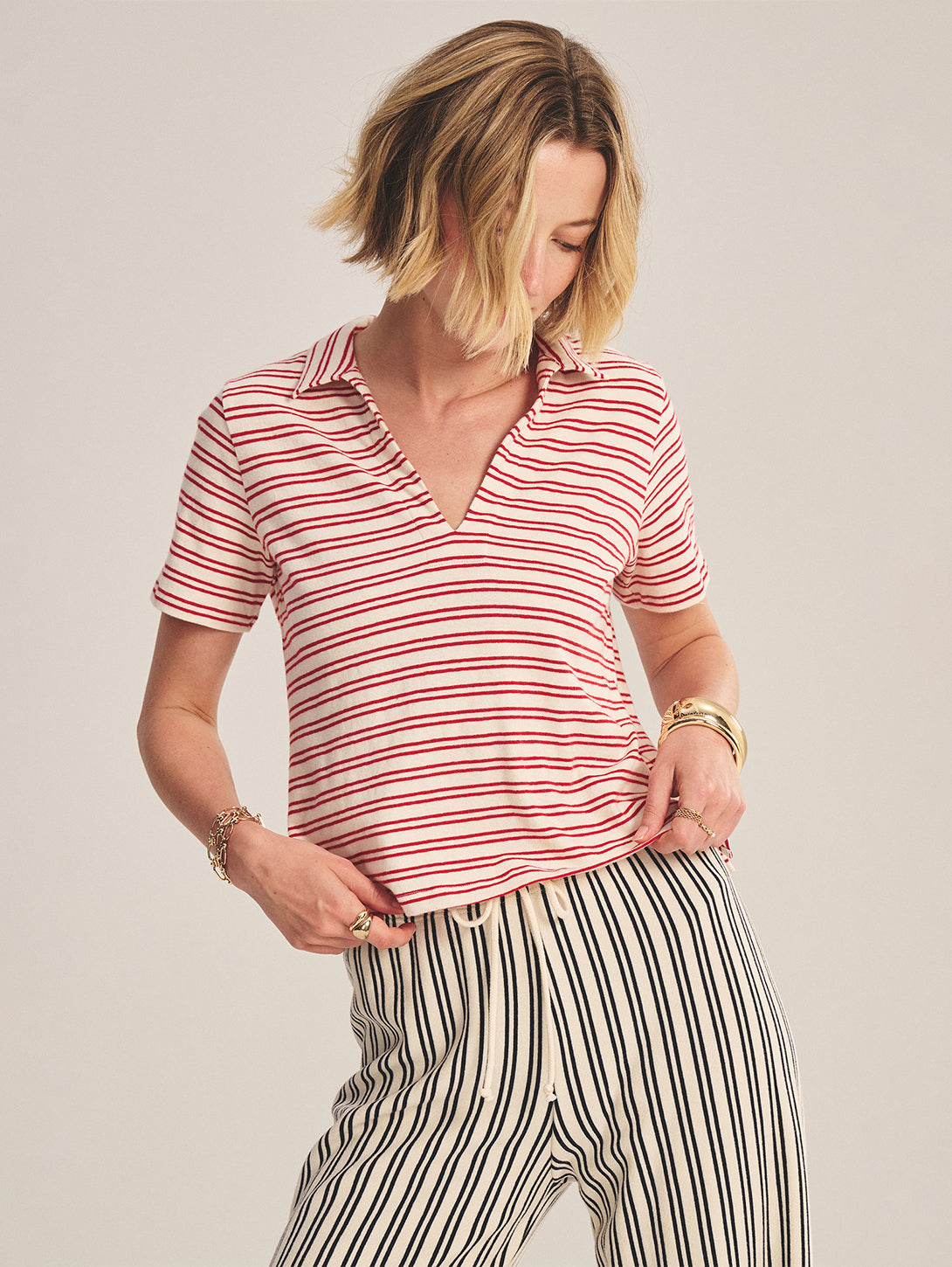 Perrin Yarn Dye Stripe Jersey Top - Natural/Red