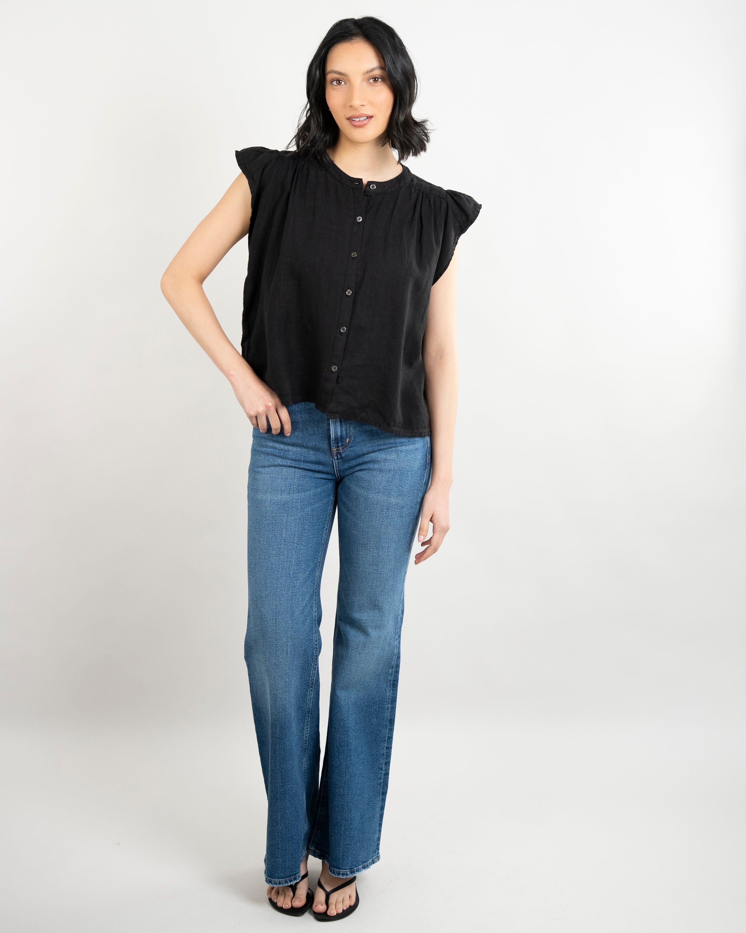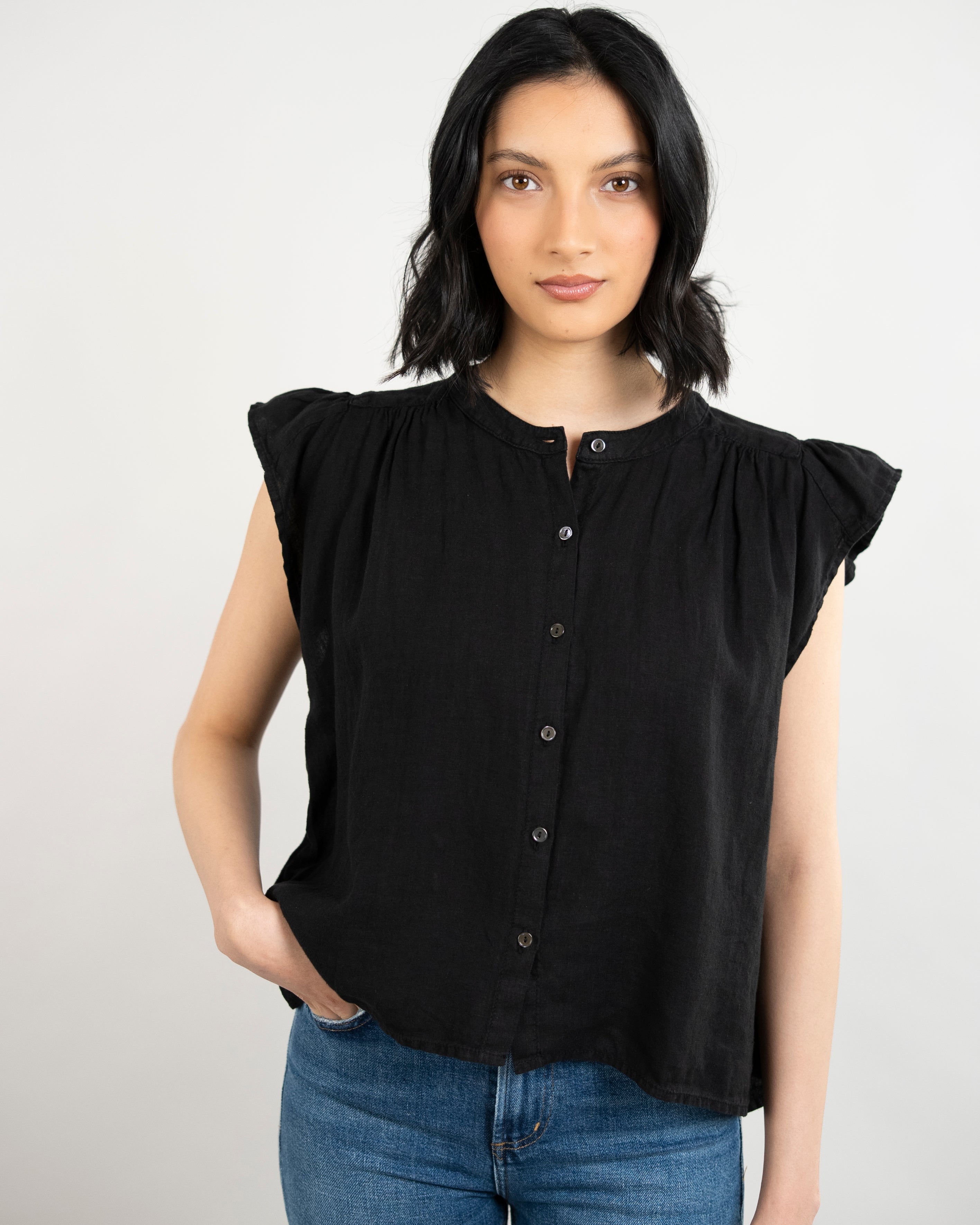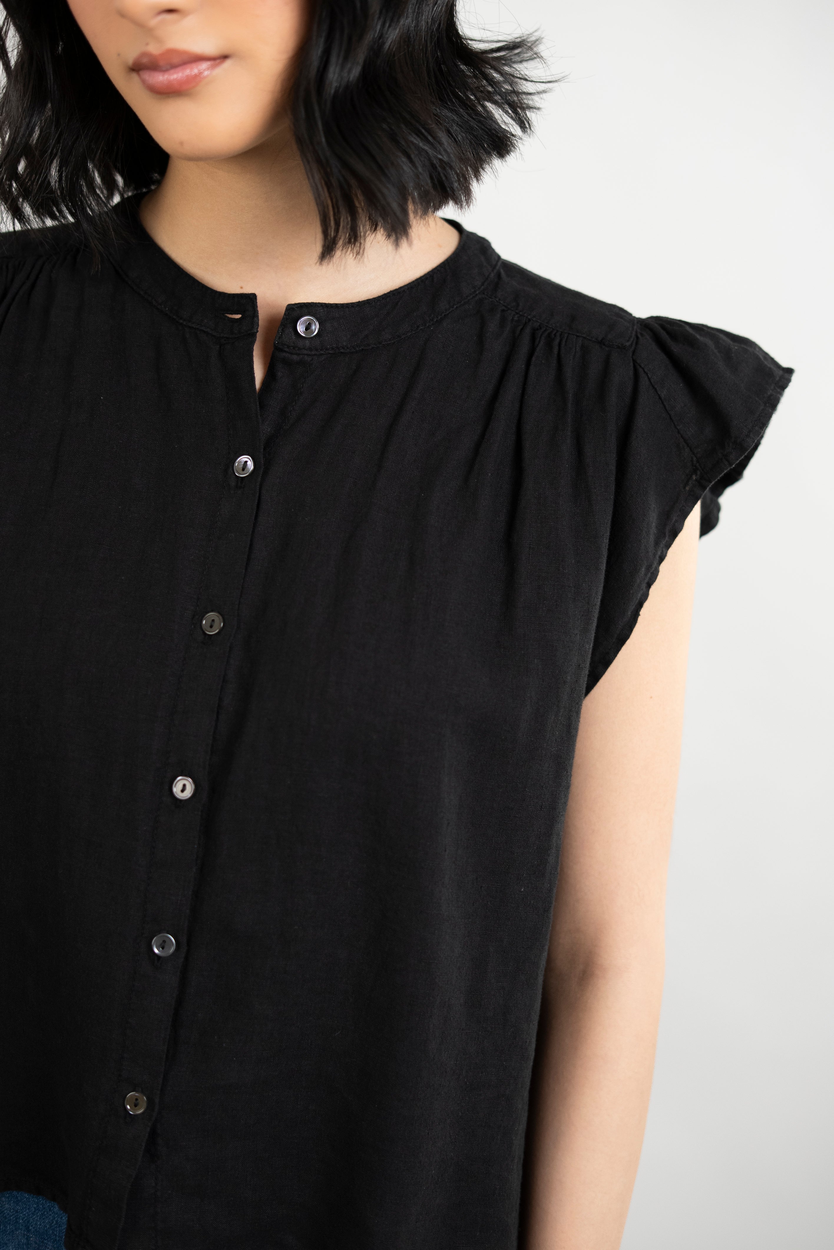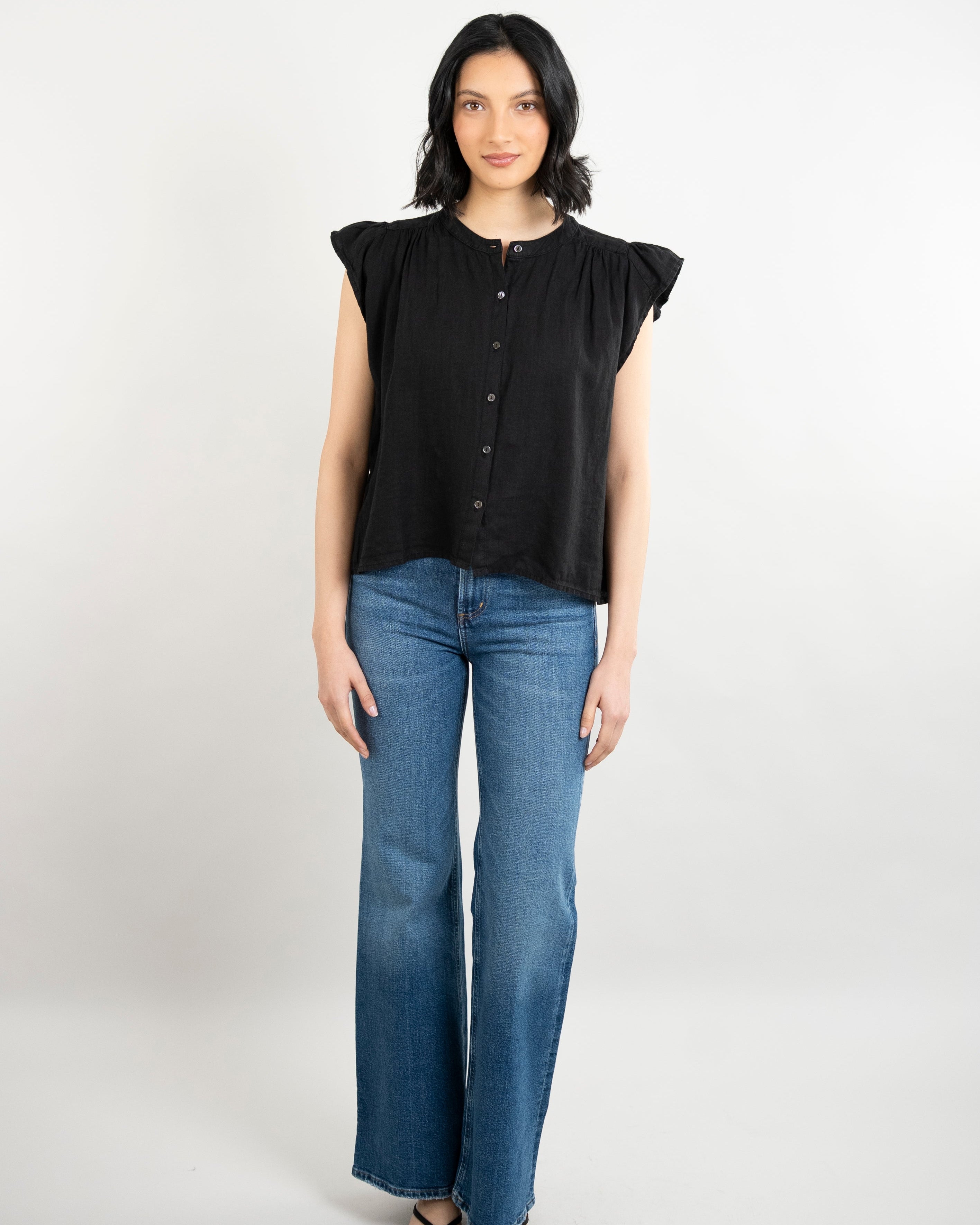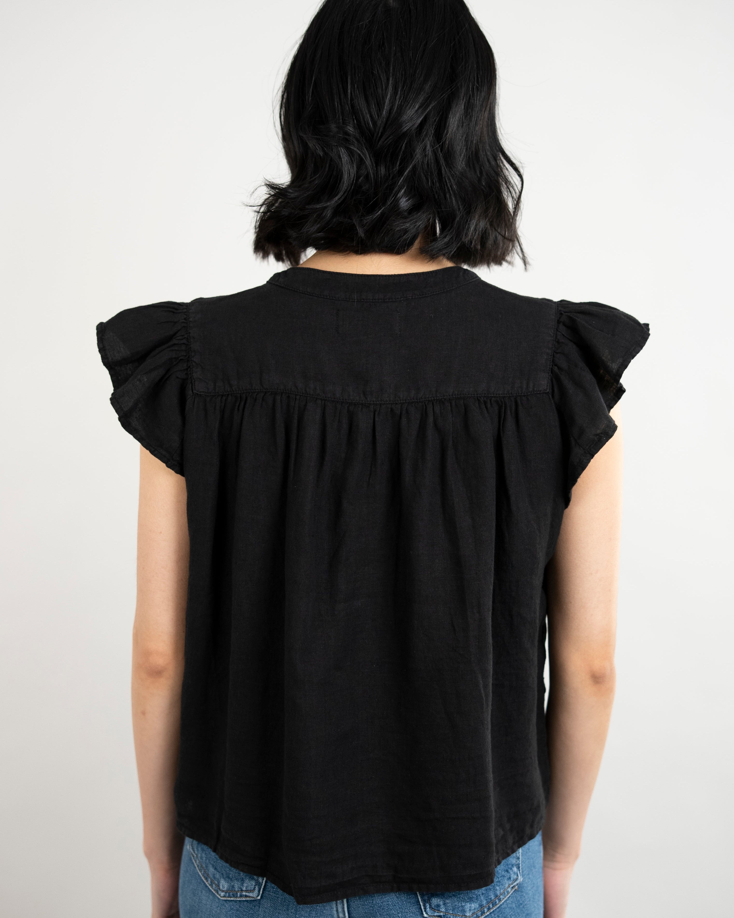 Janey Woven Linen Top - Black