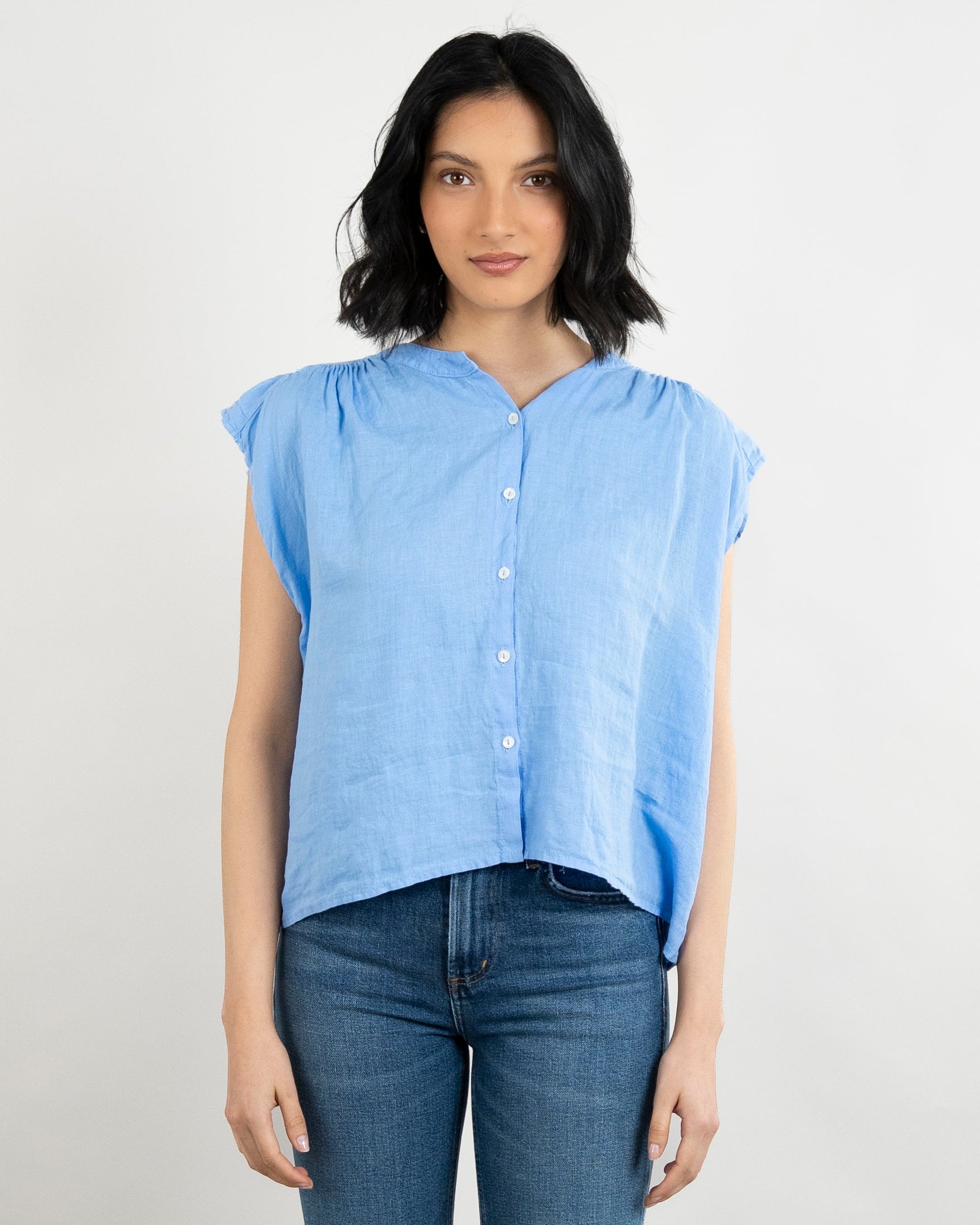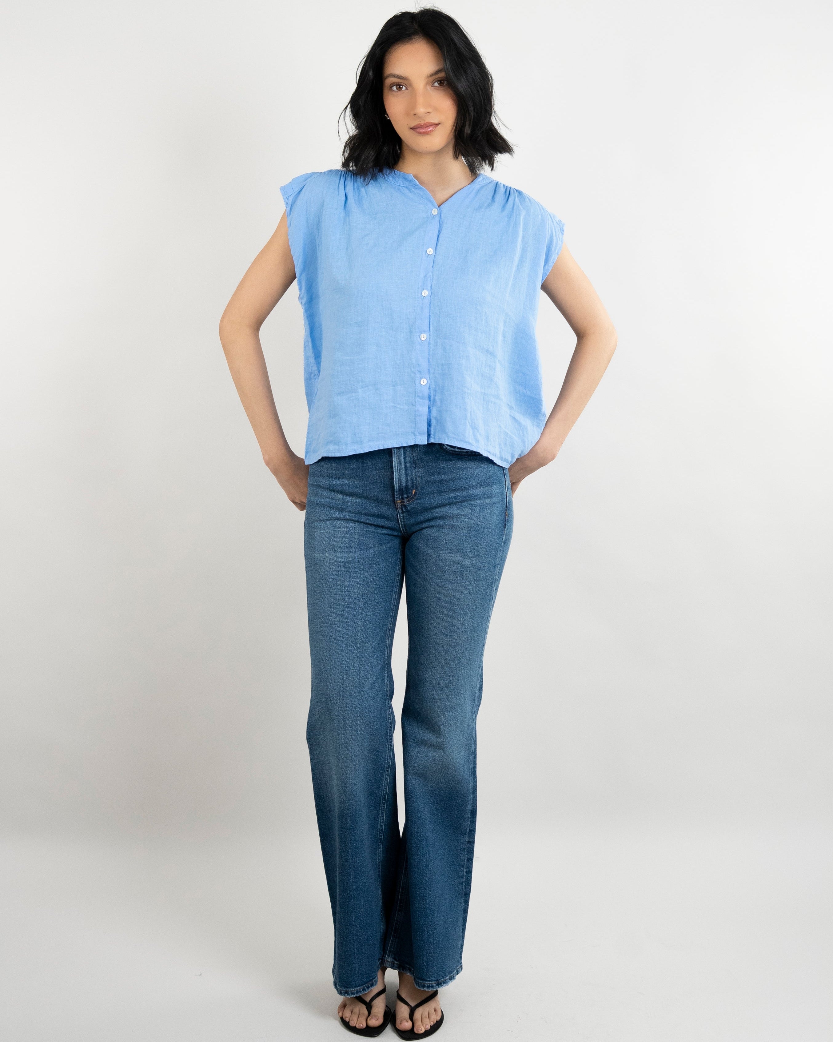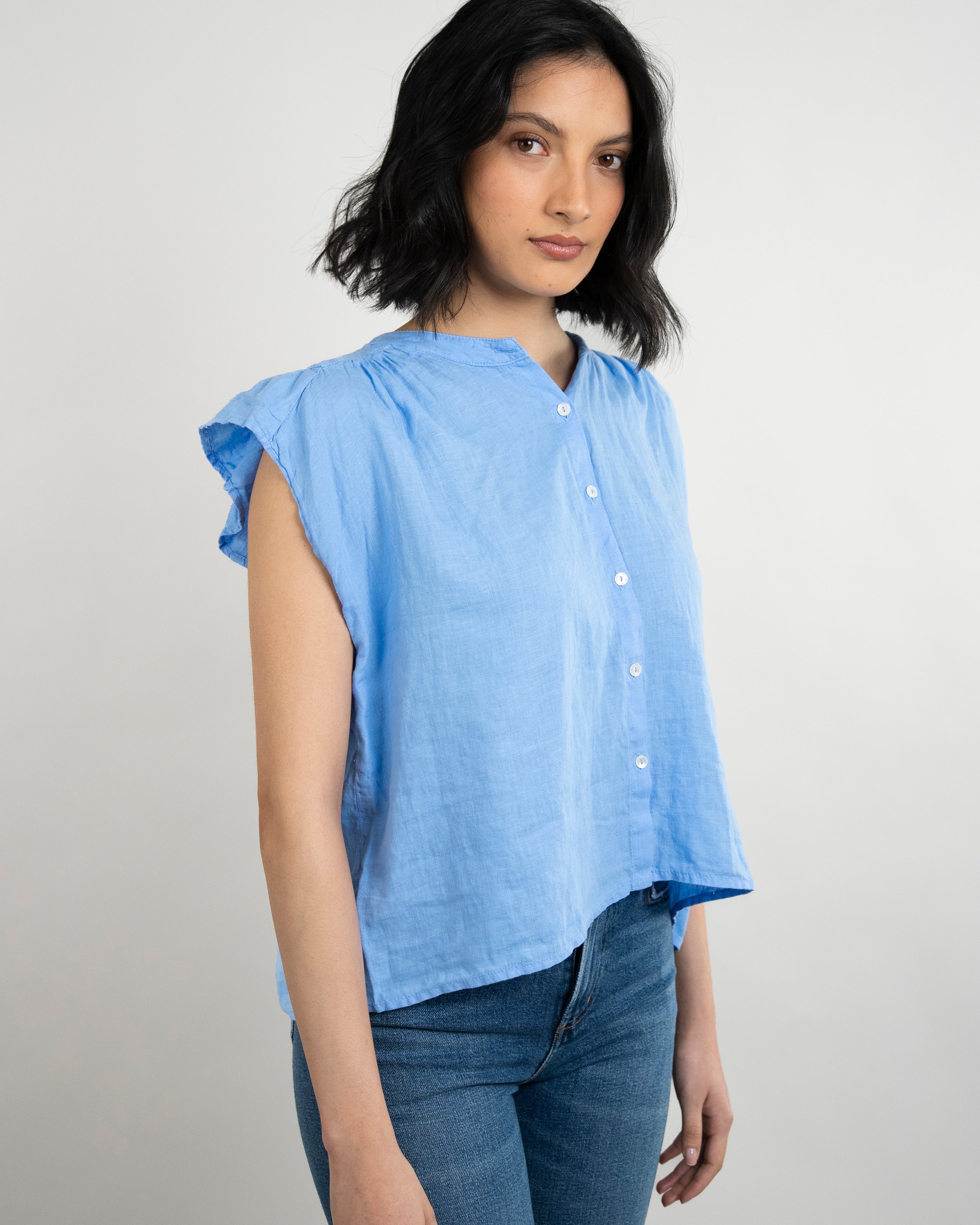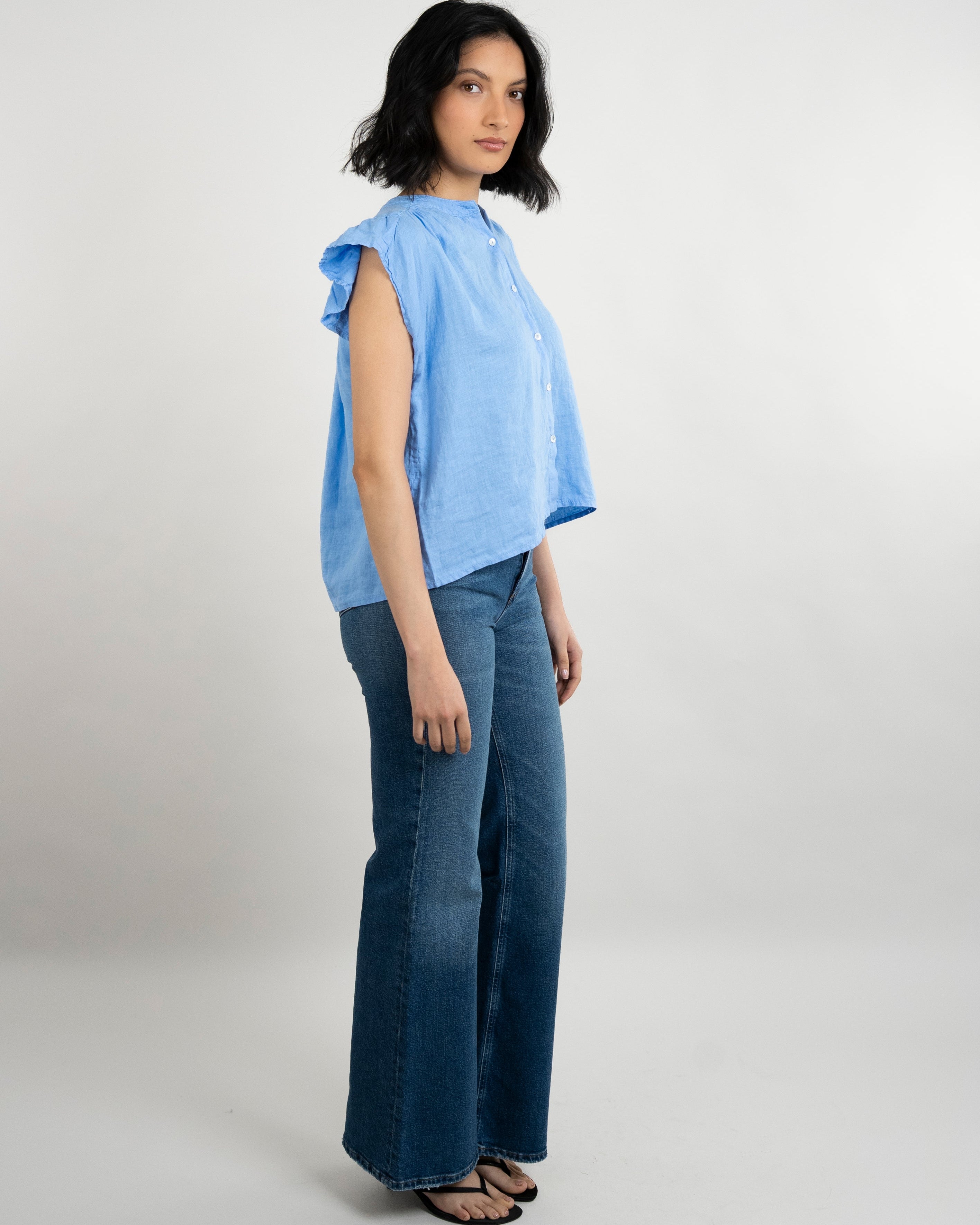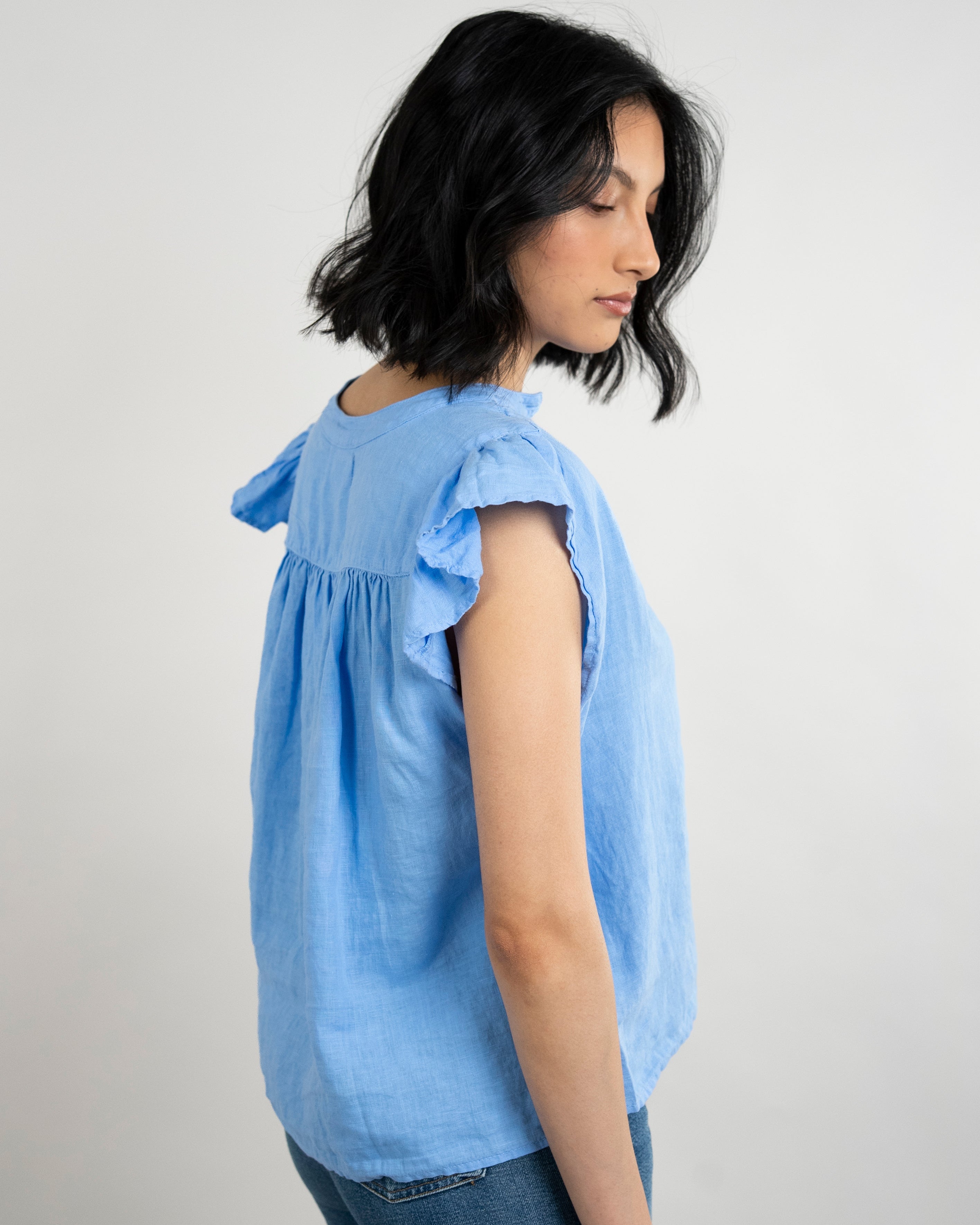 Janey Woven Linen Top - Sailboat
