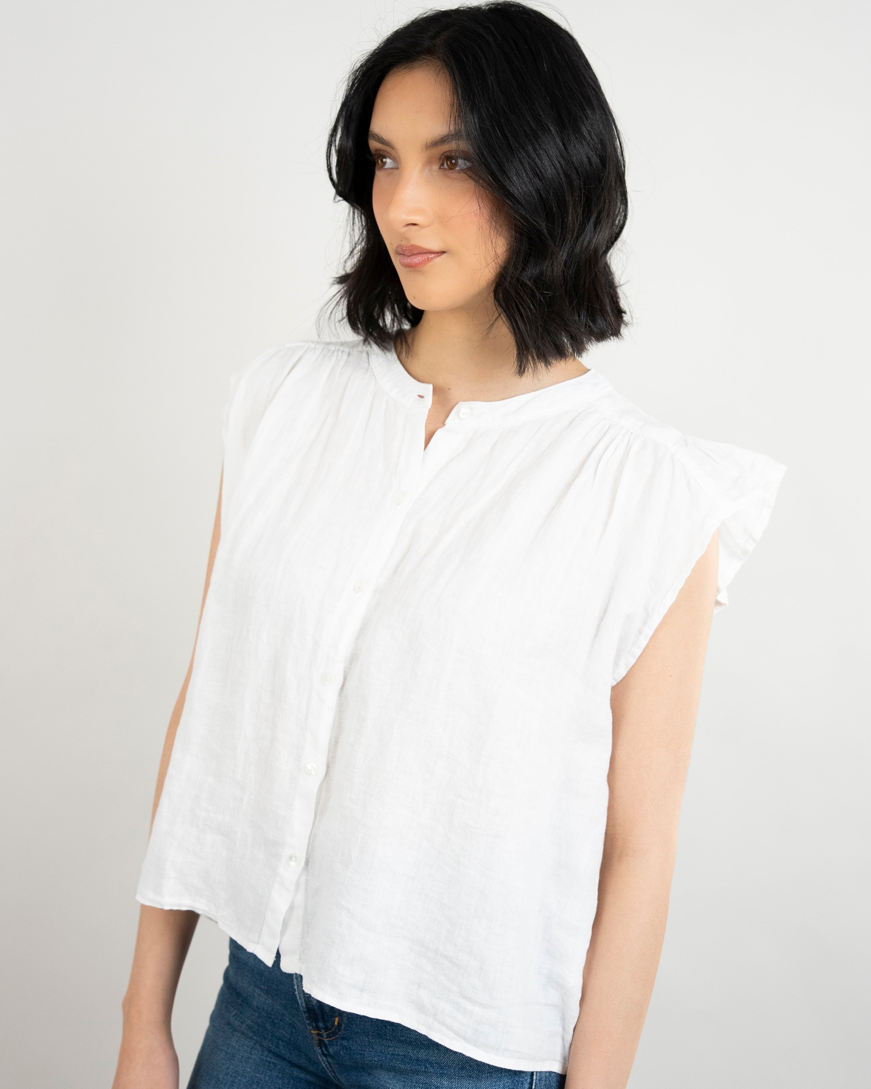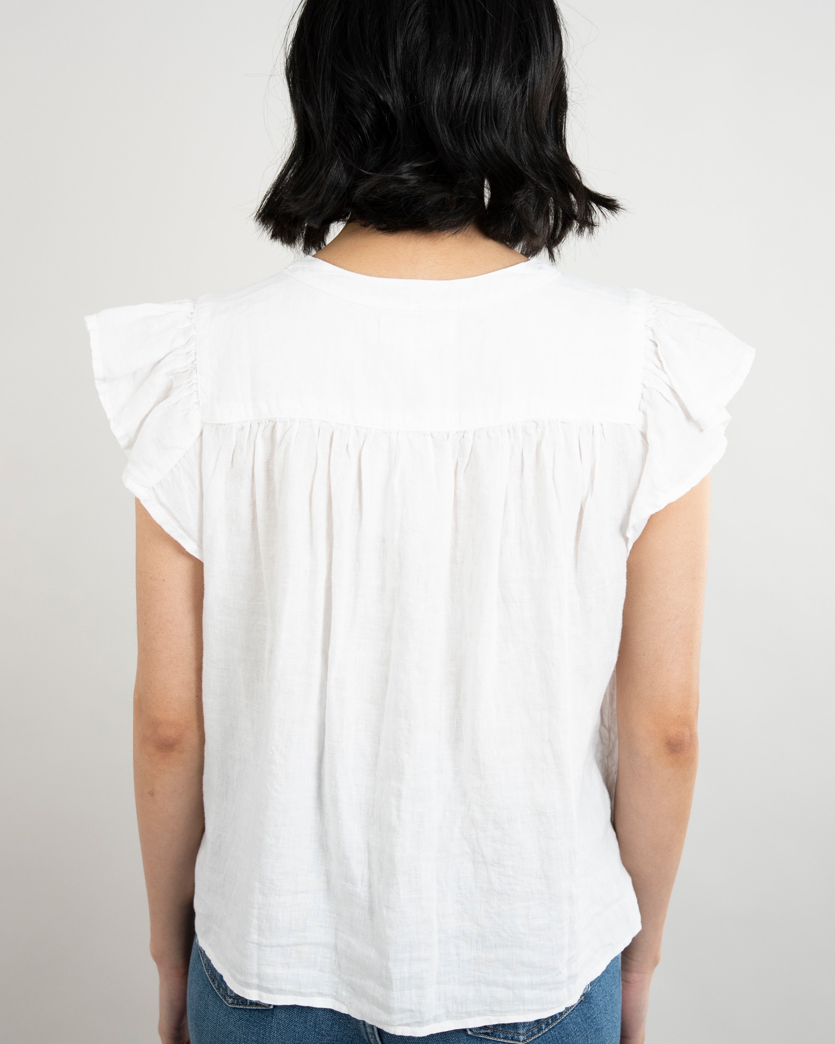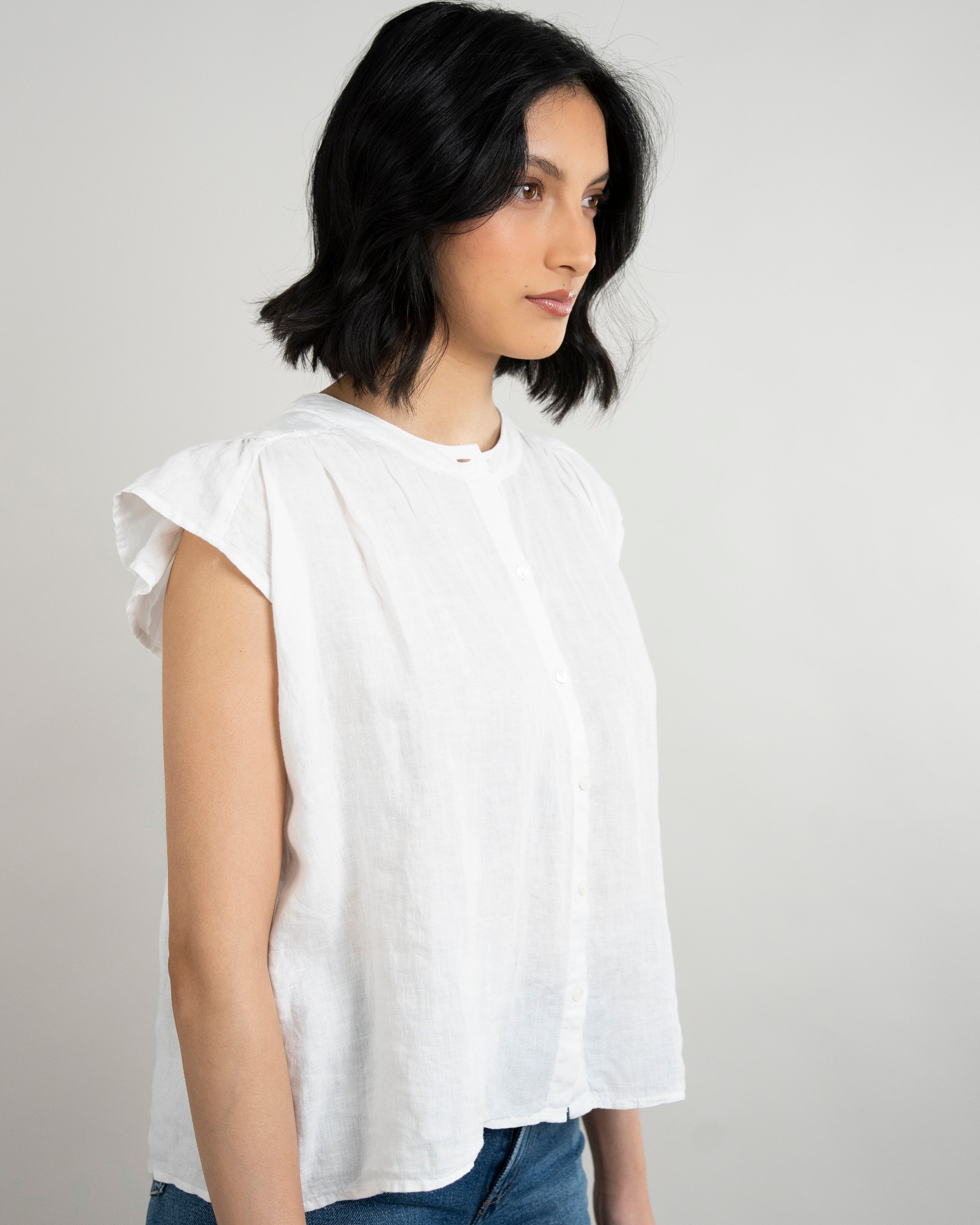 Janey Woven Linen Top - White