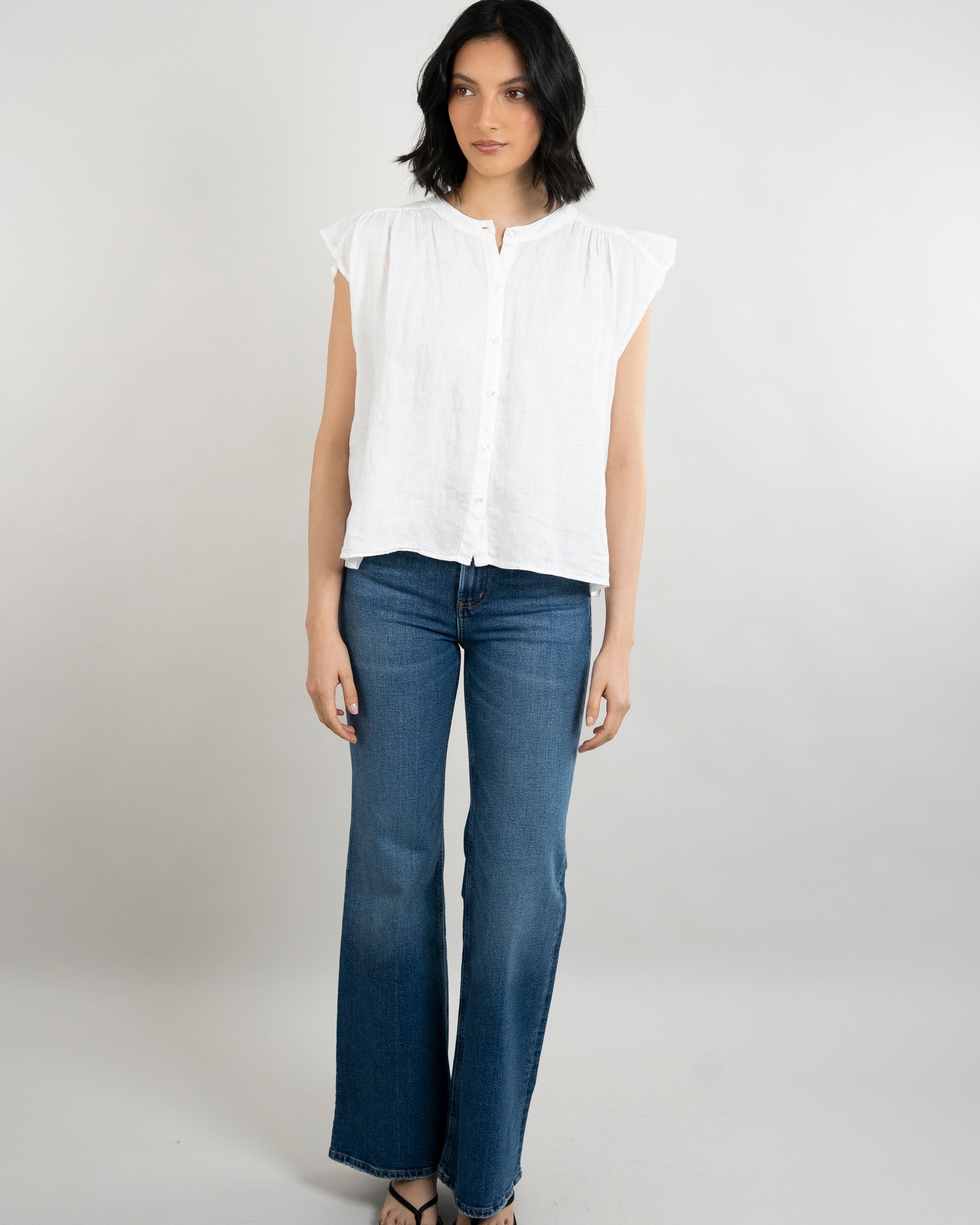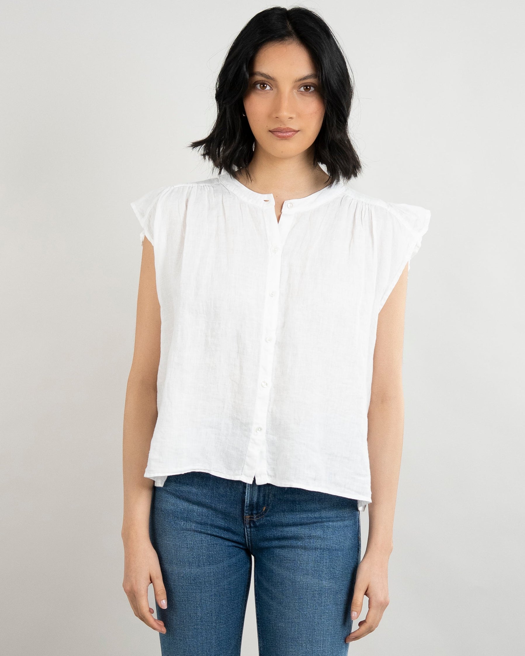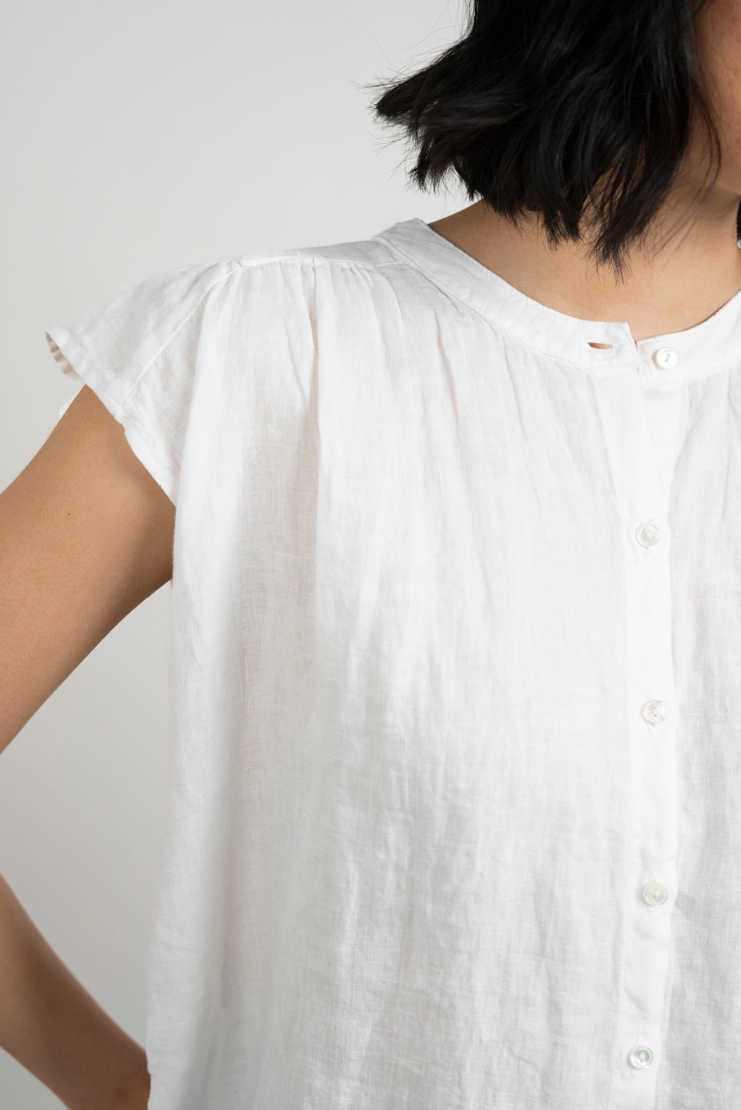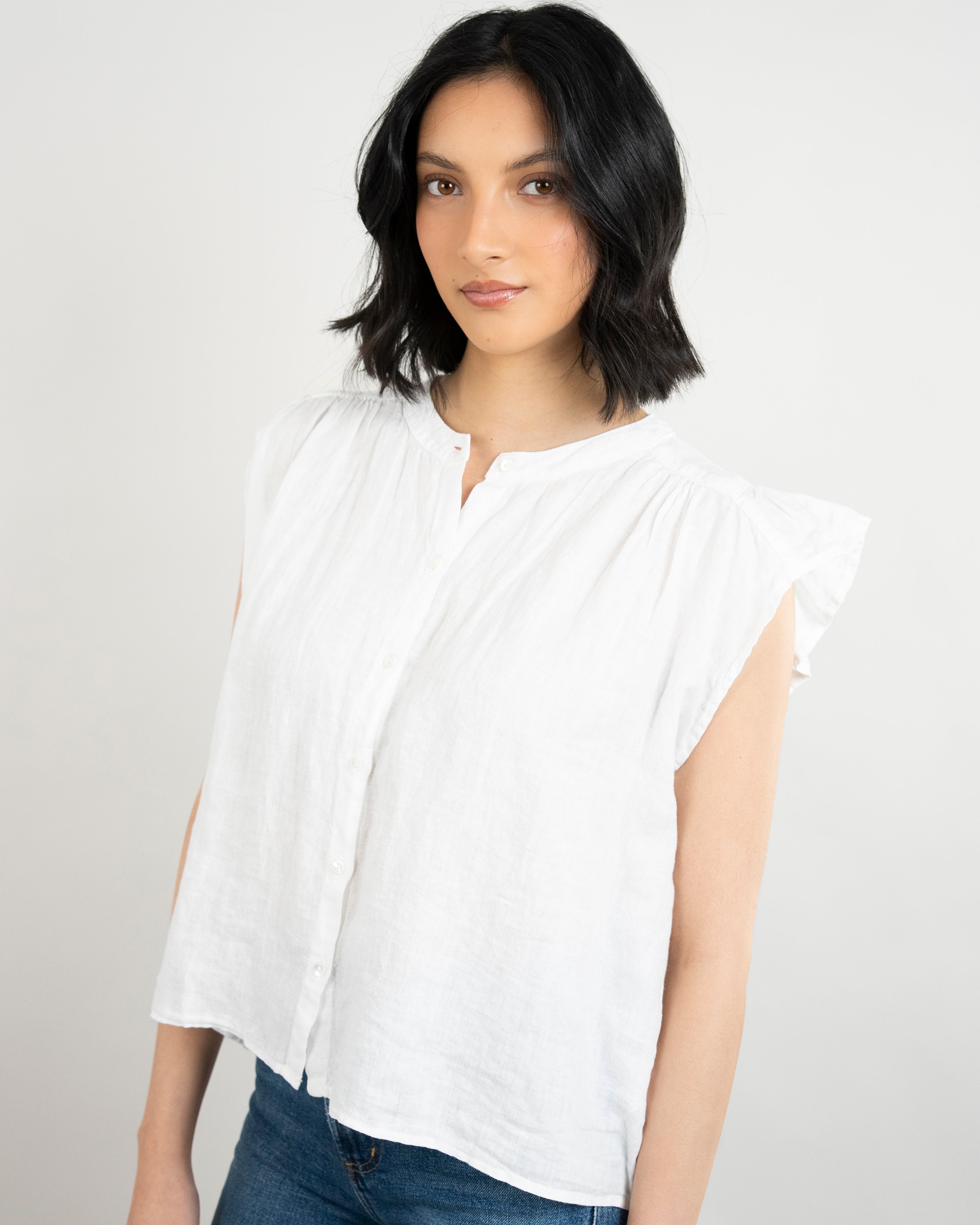 Janey Woven Linen Top - White