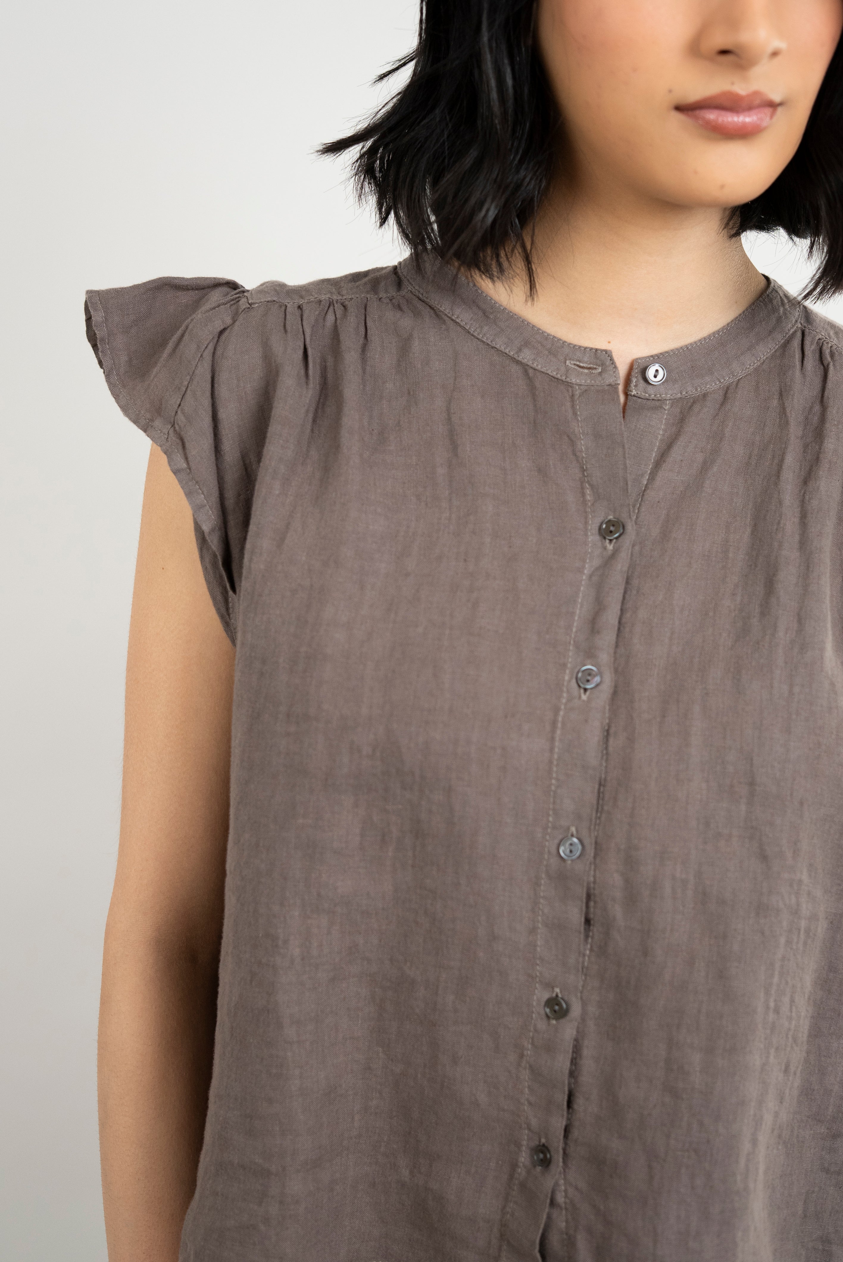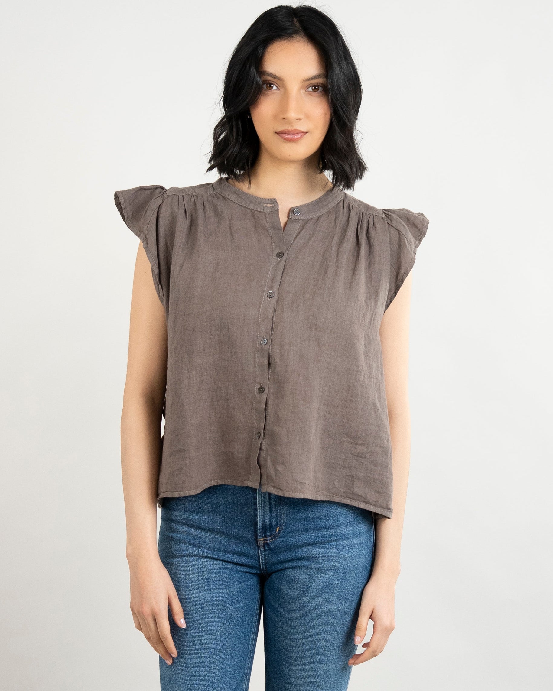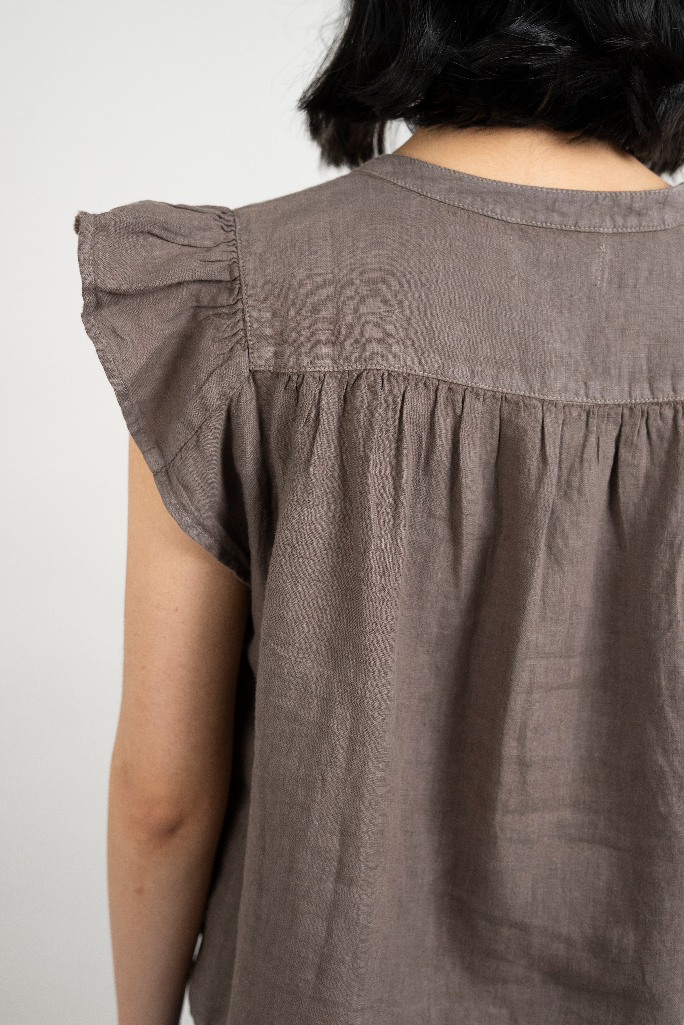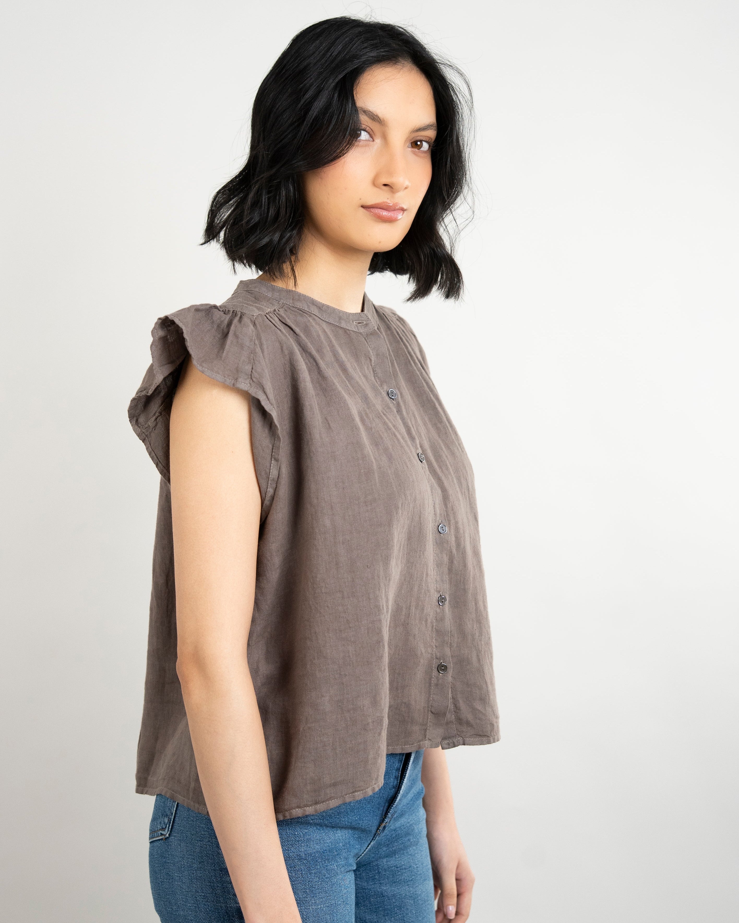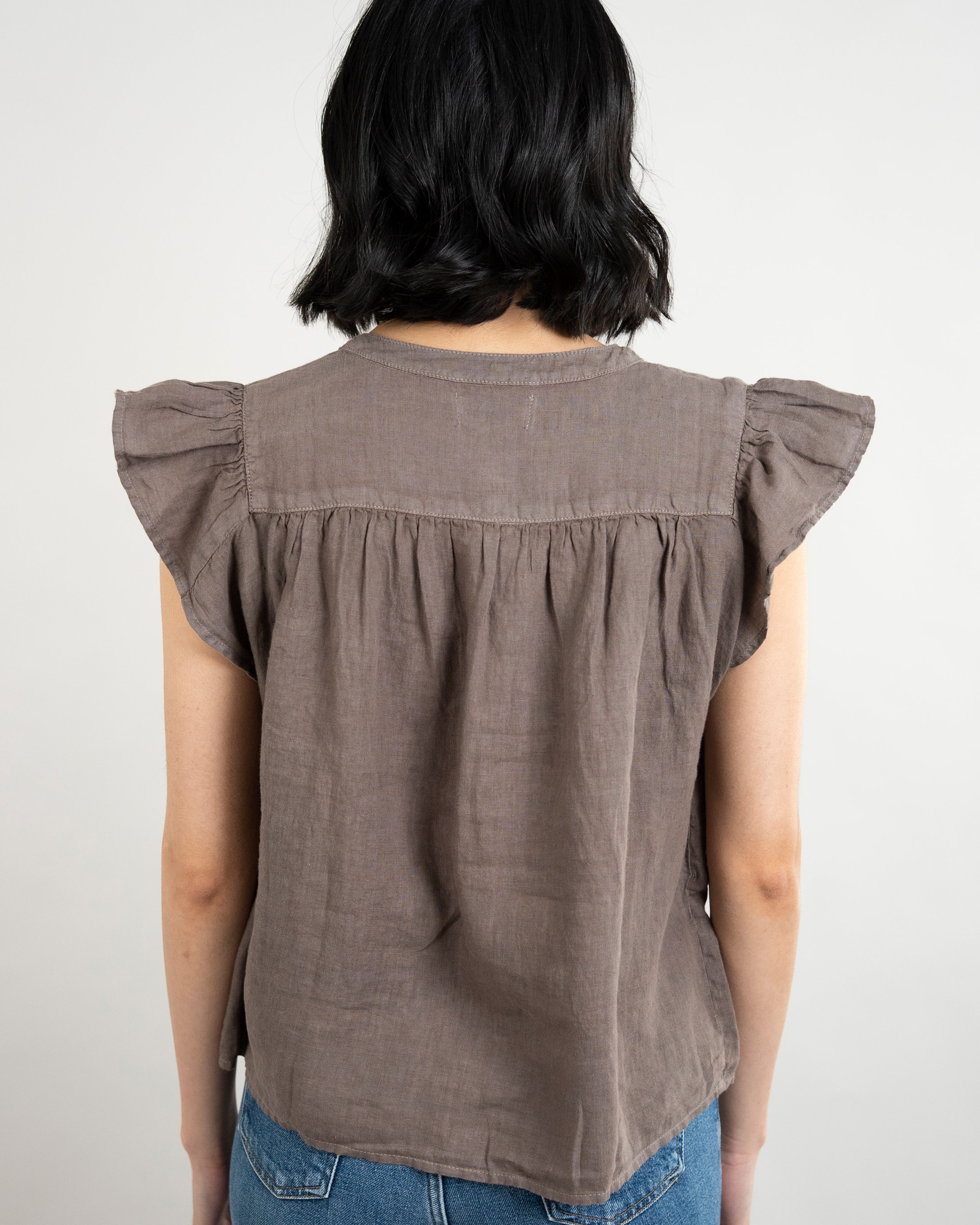 Janey Woven Linen Top - Mudslide