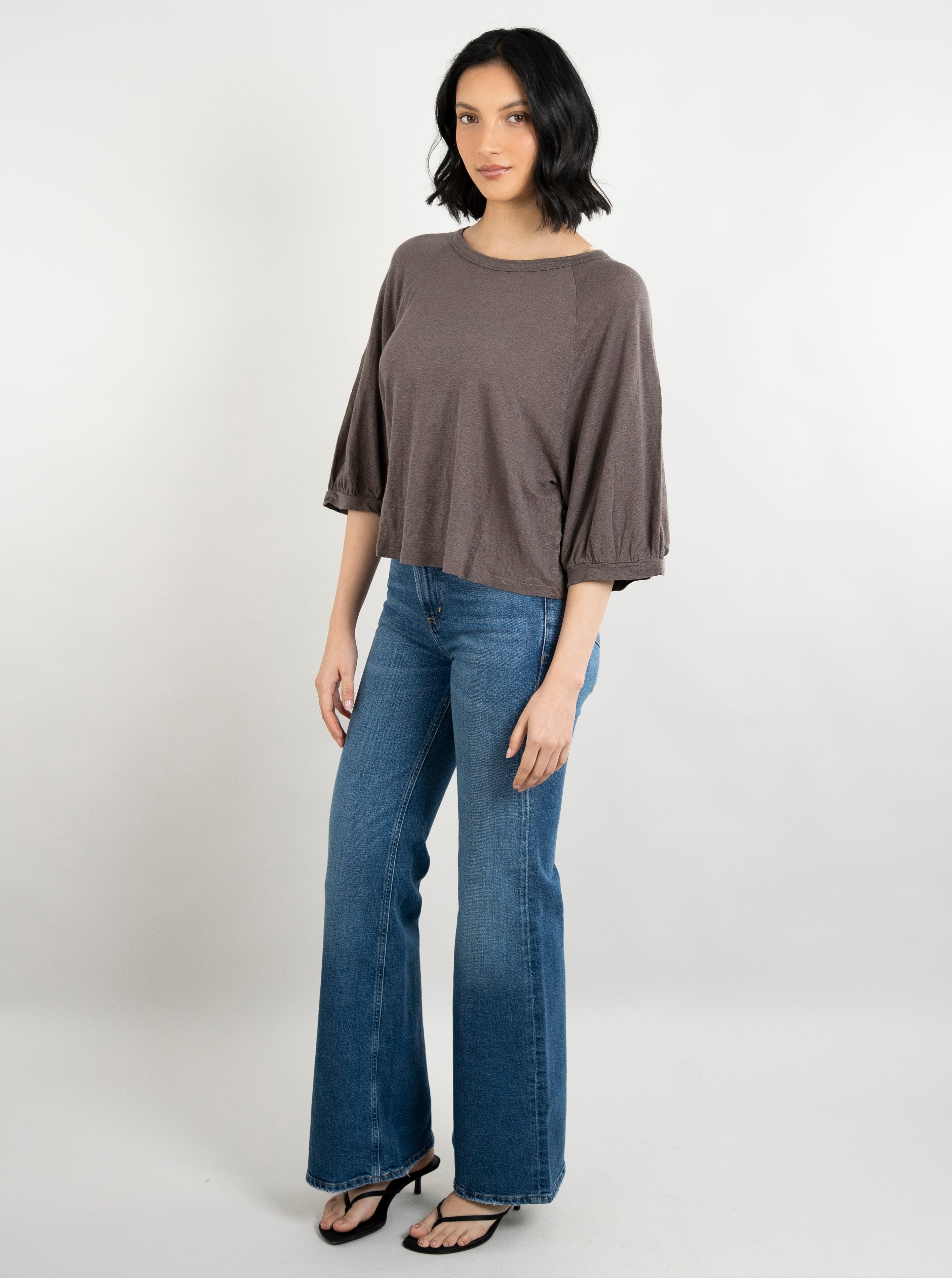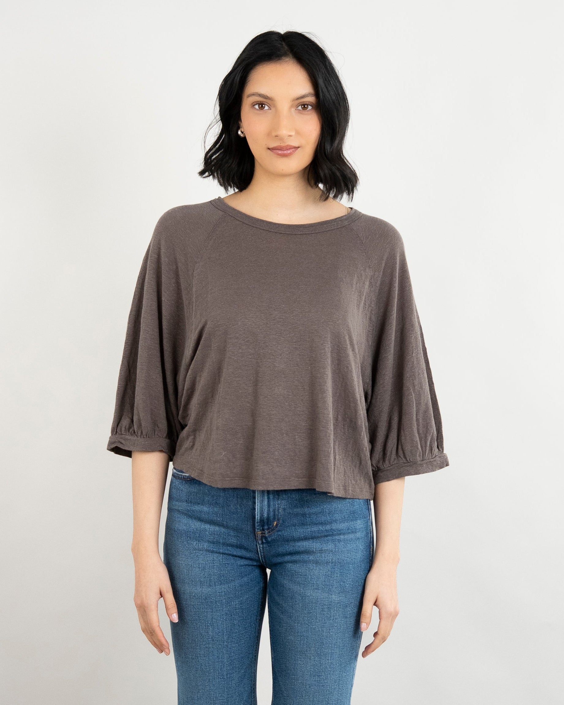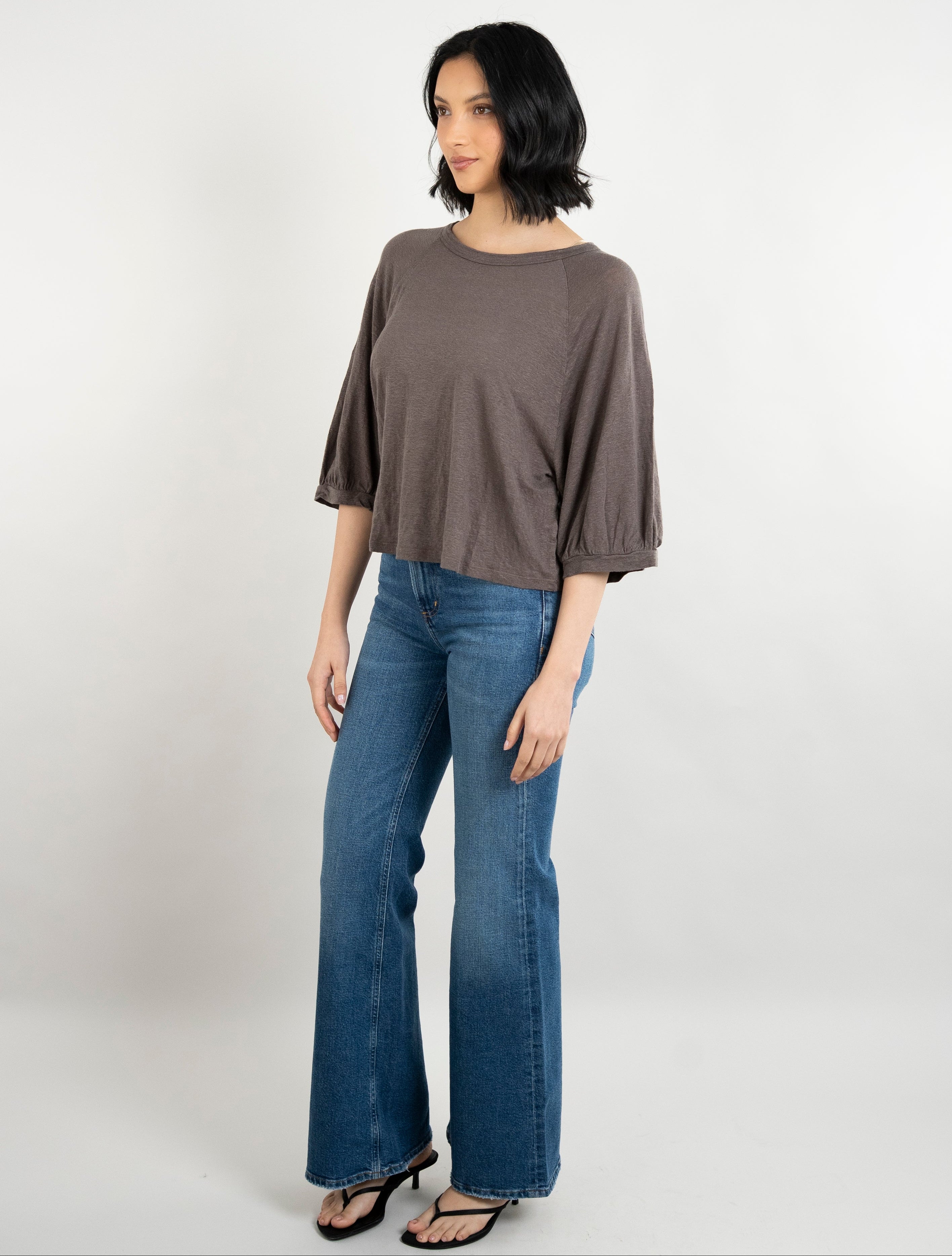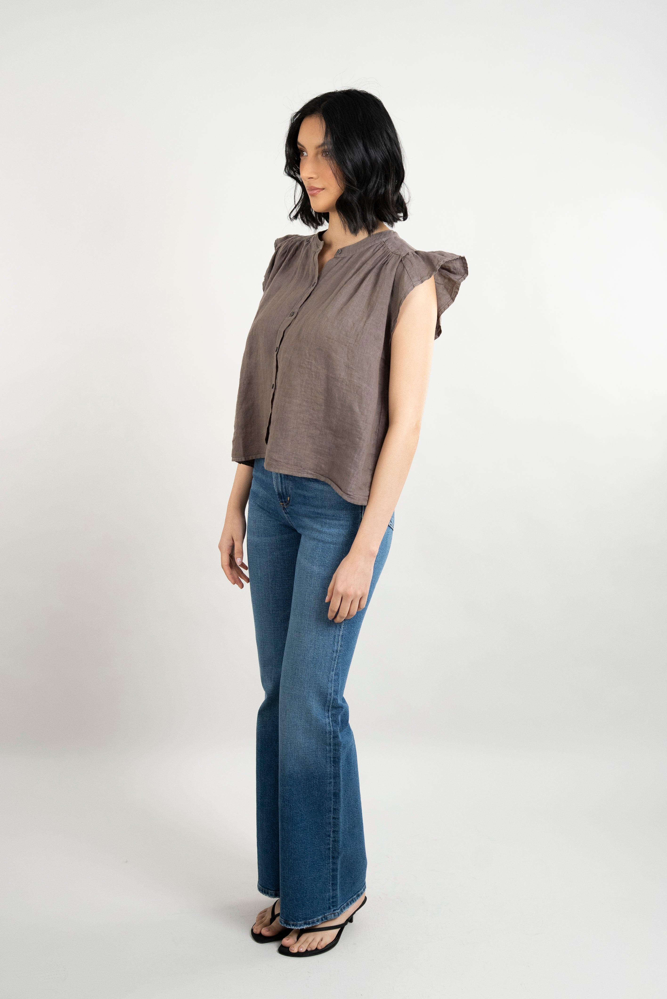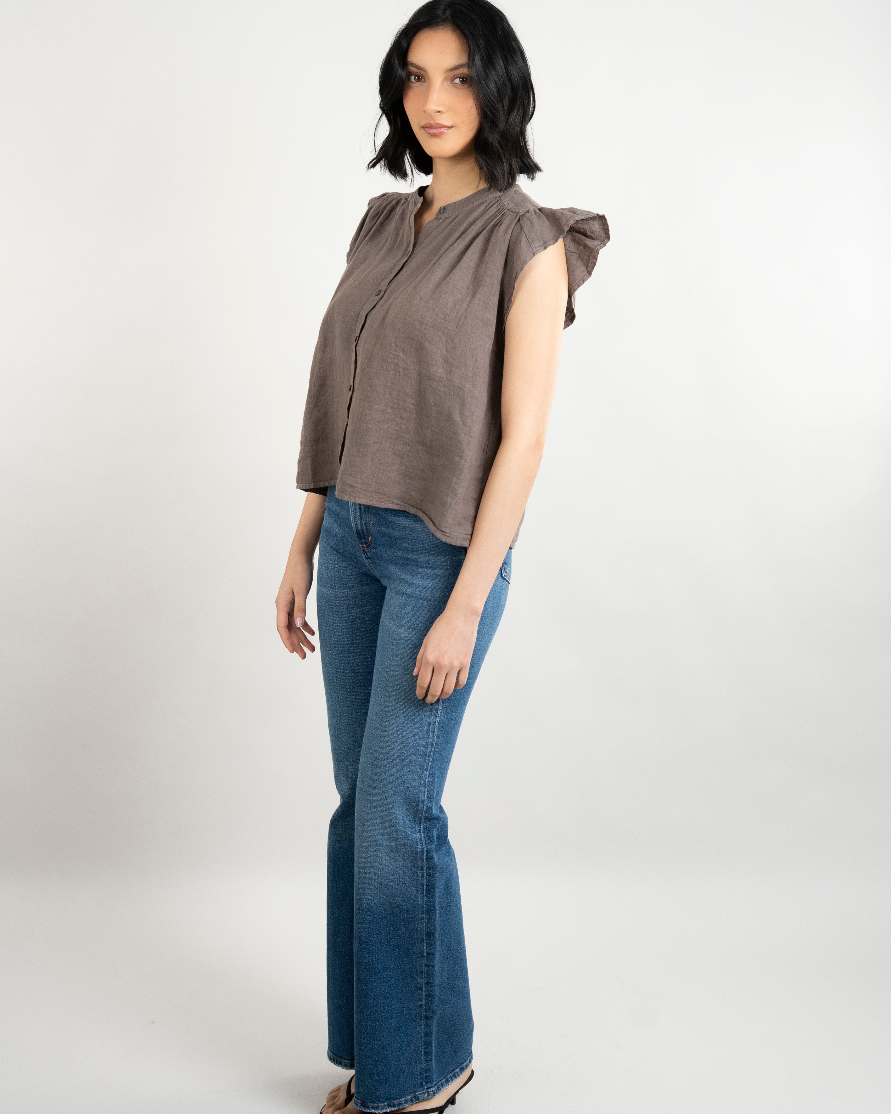 Janey Woven Linen Top - Mudslide