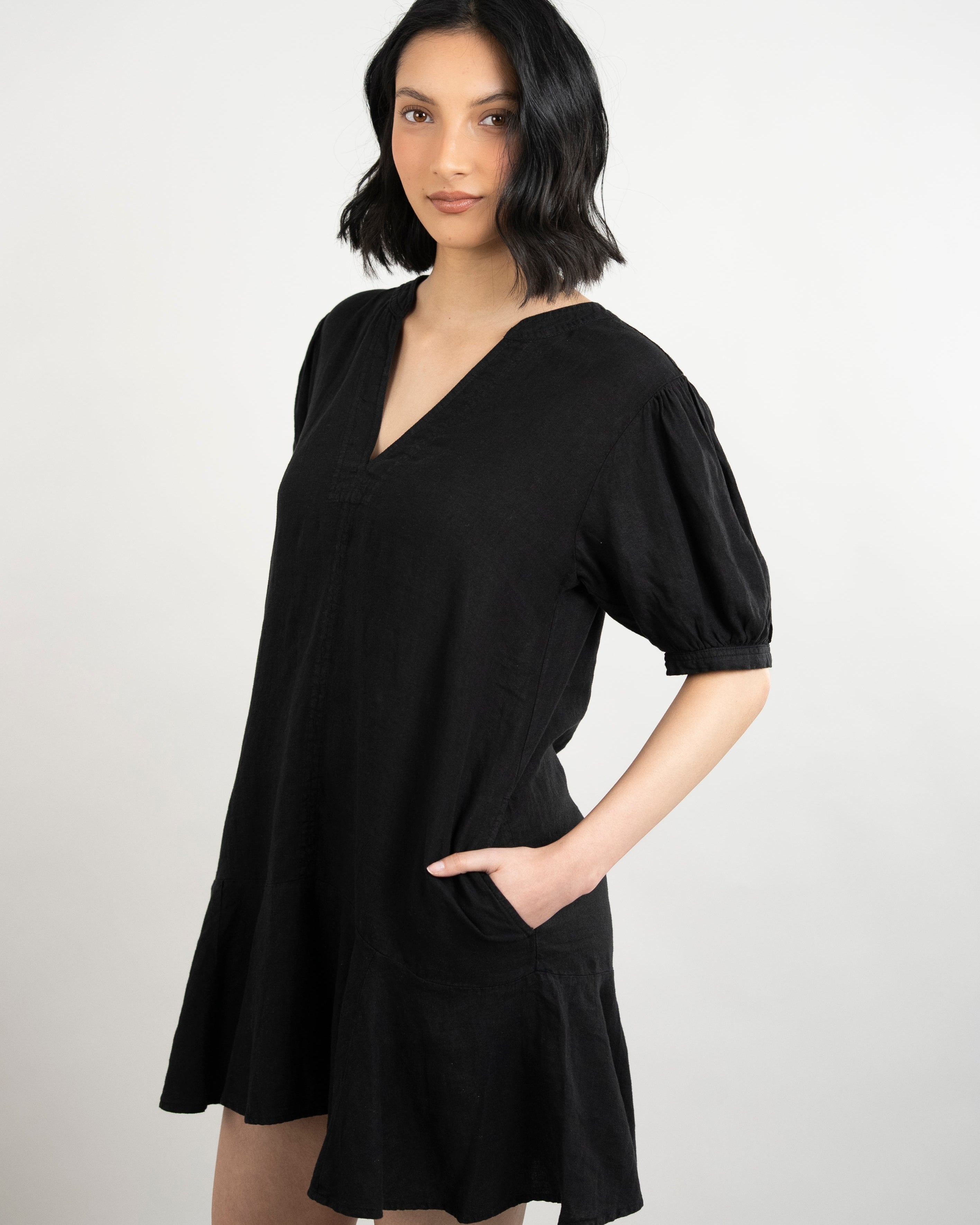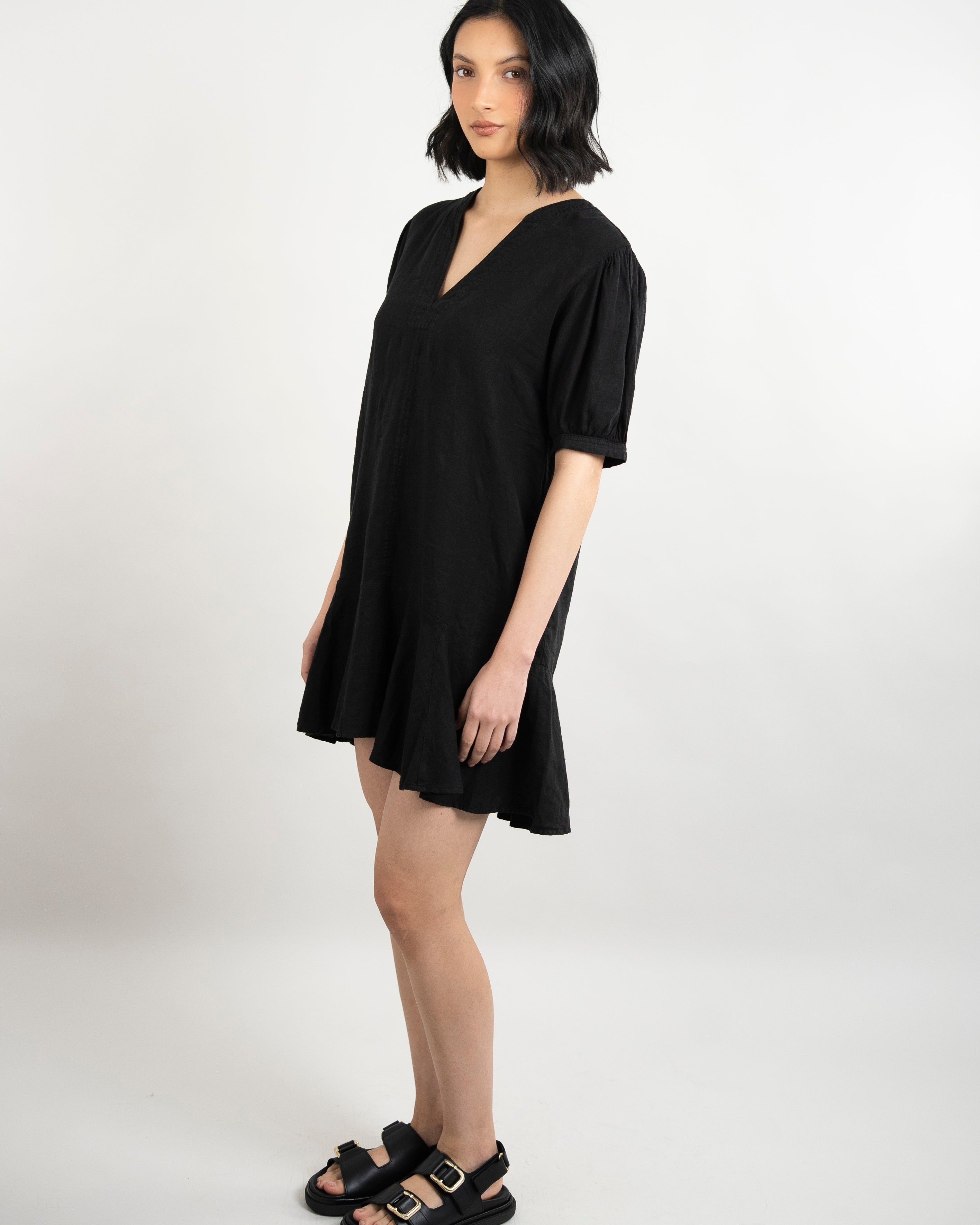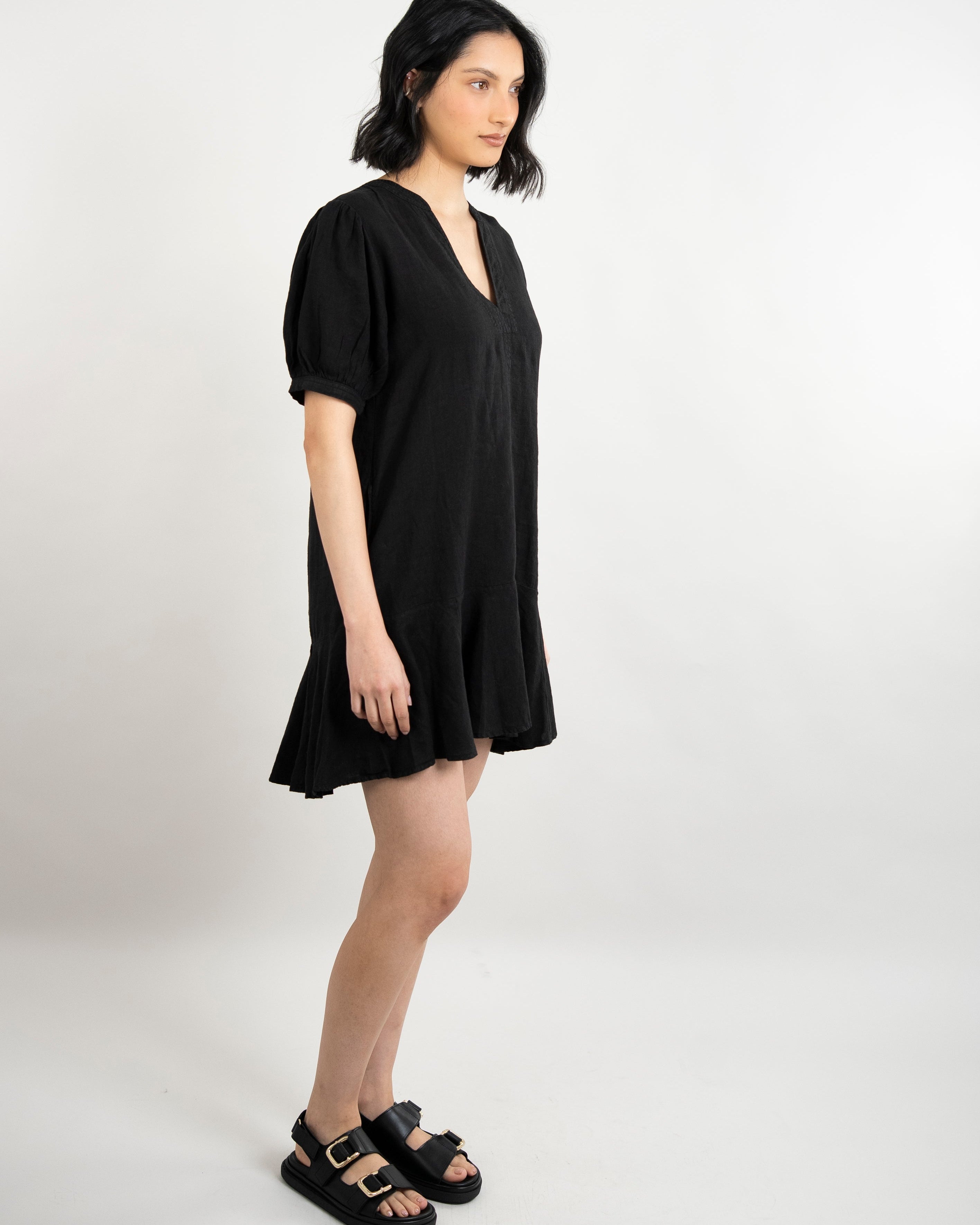 Meadow Woven Linen Dress - Black