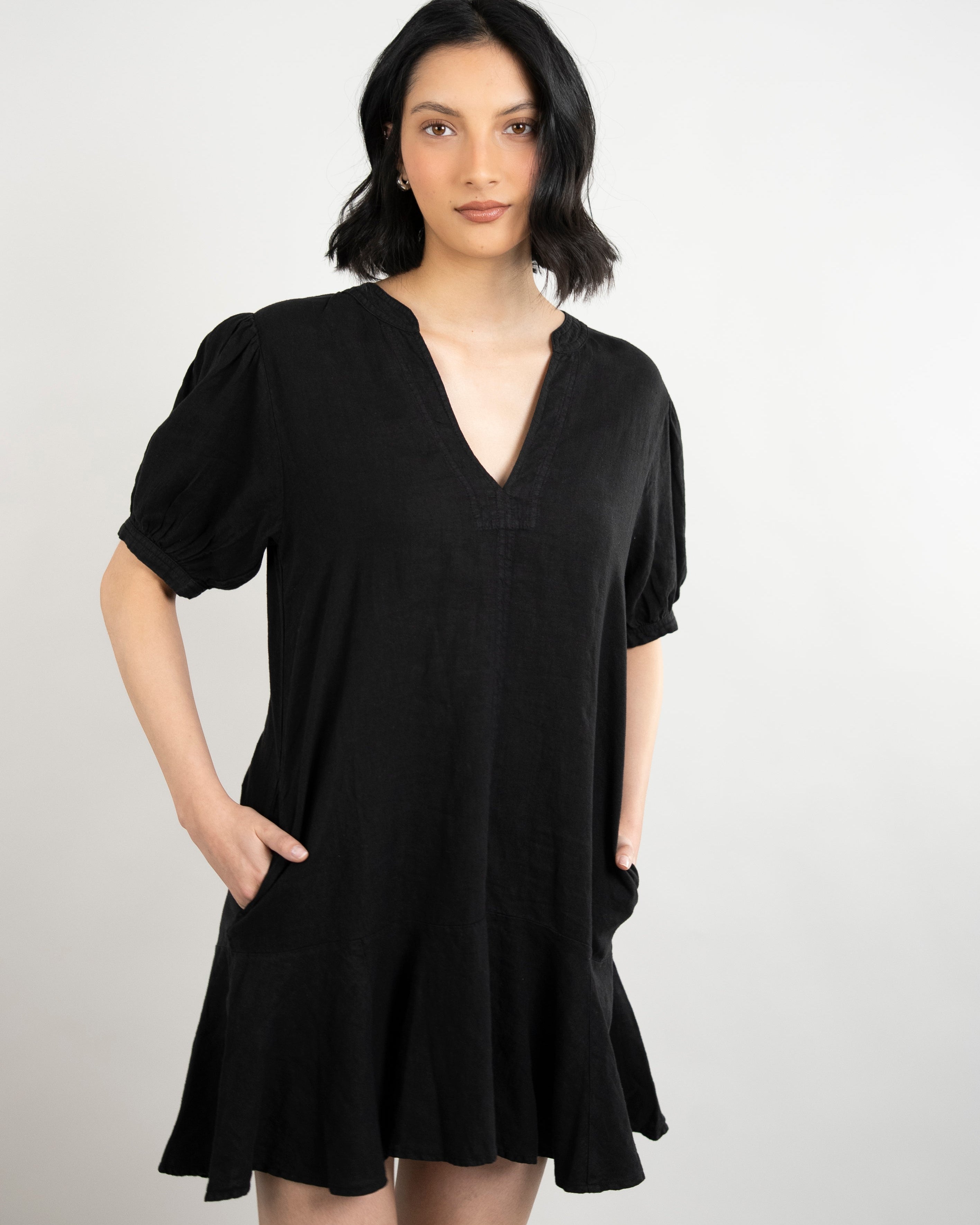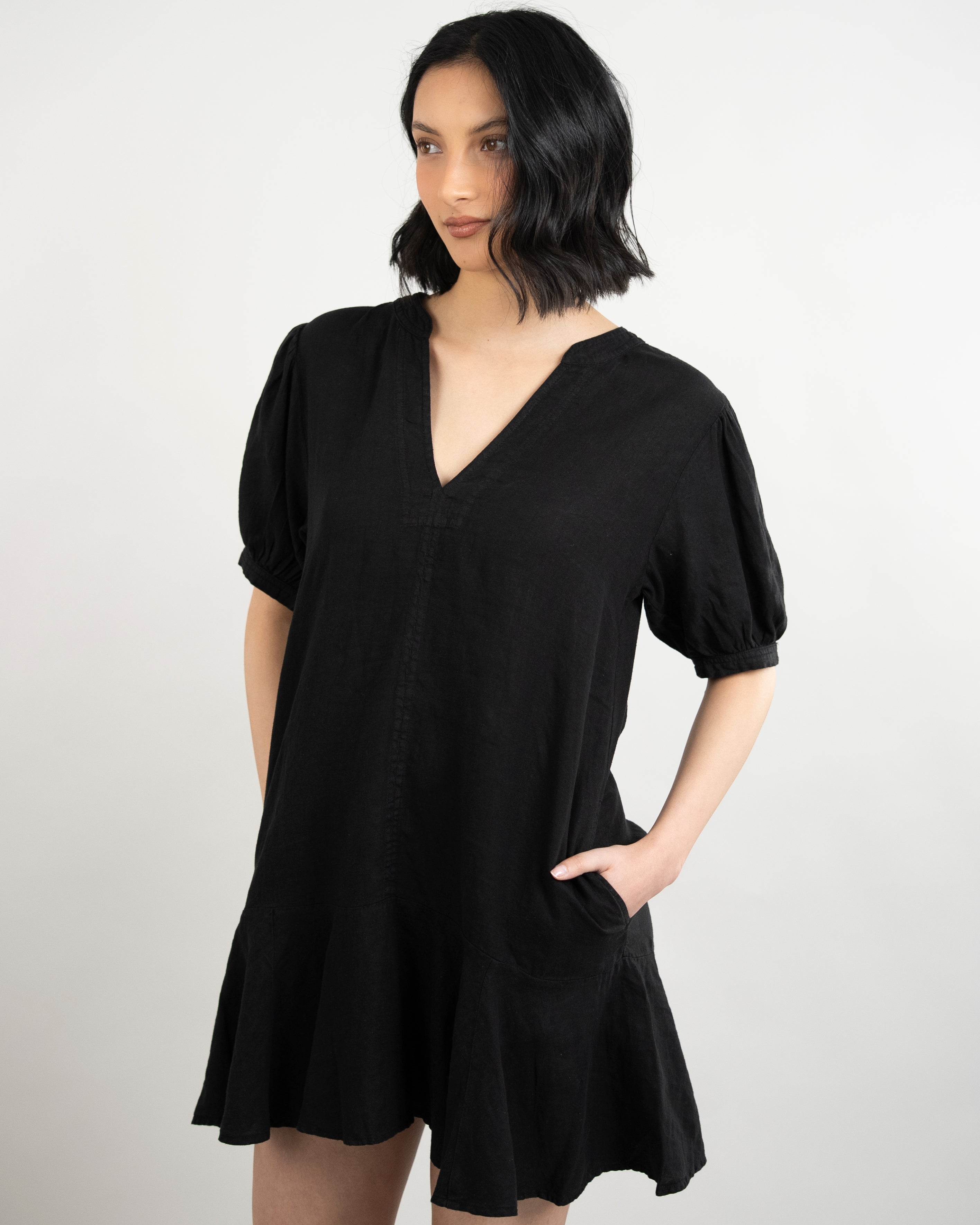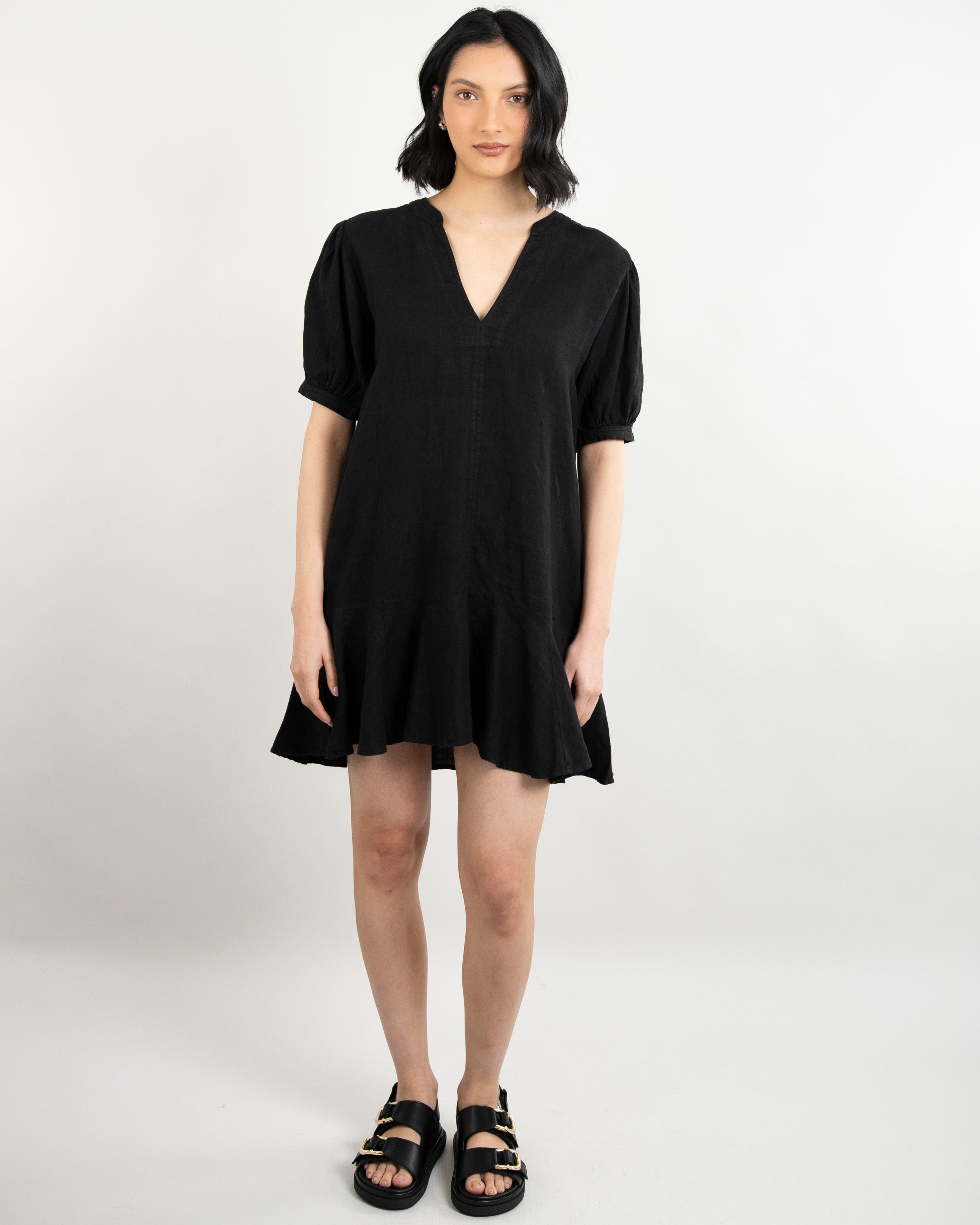 Meadow Woven Linen Dress - Black