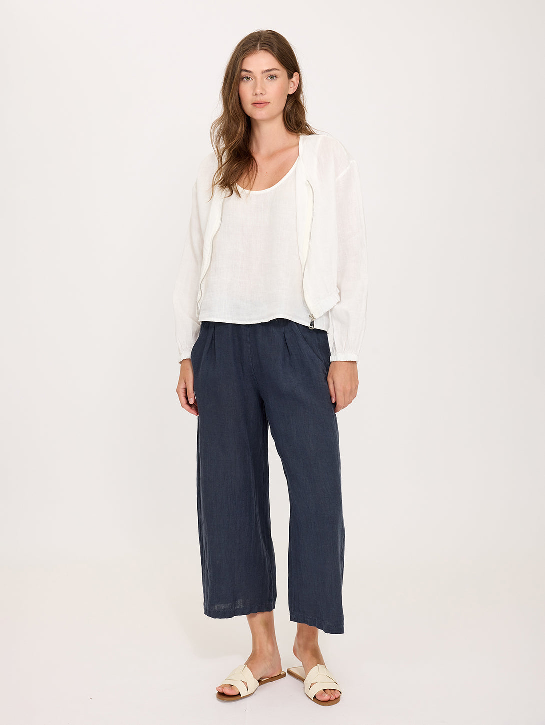This cropped linen pant offers an effortless design with lightweight comfort. Perfect for elevating casual looks during warmer seasons.