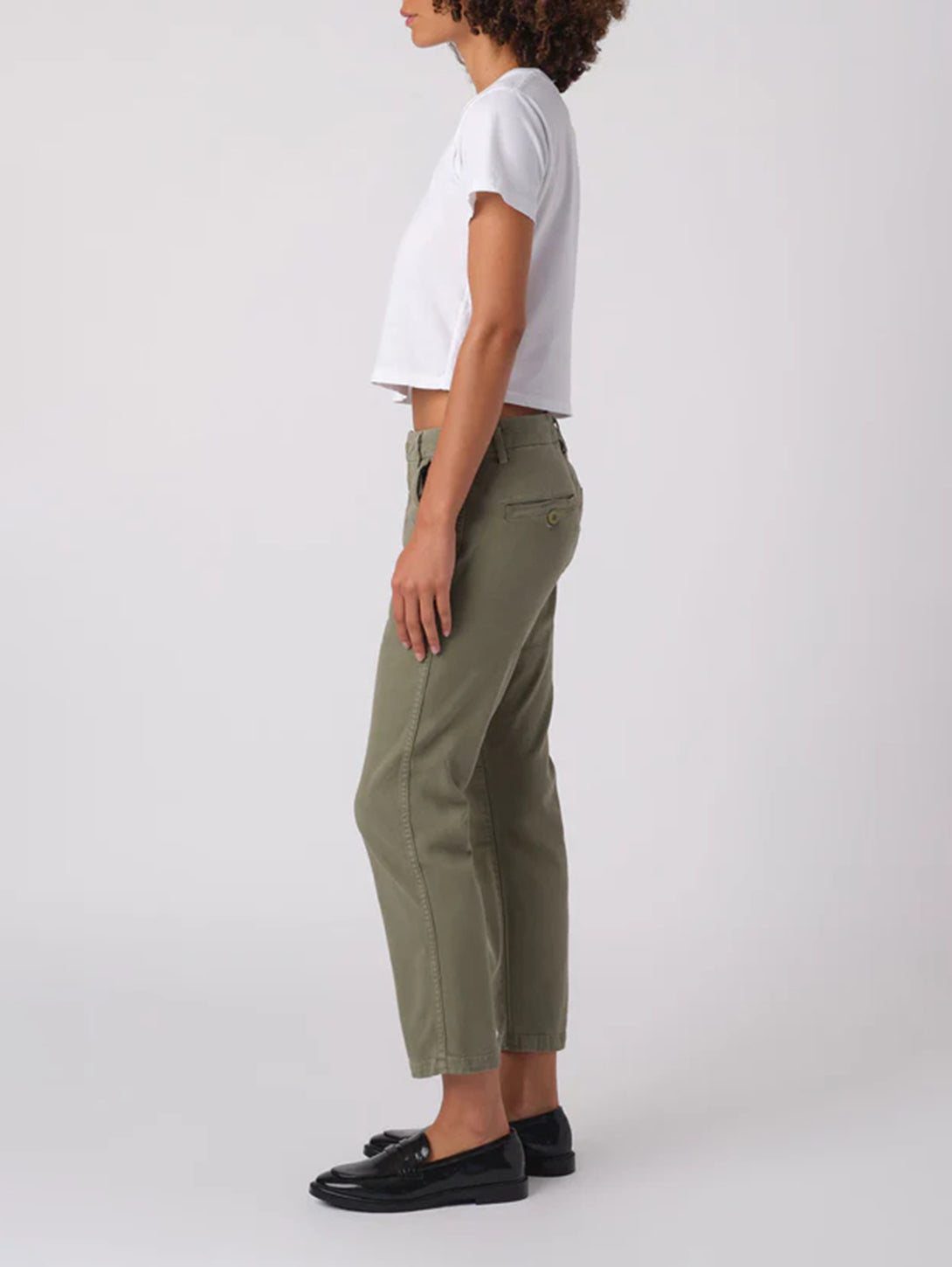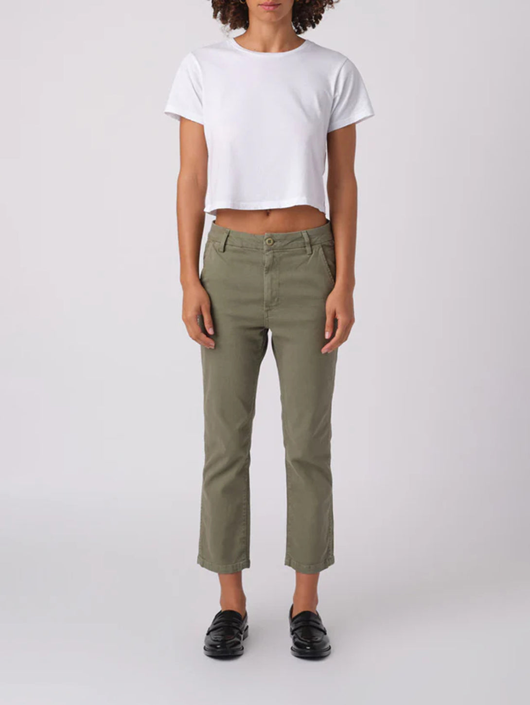 The EASY TROUSER is a slightly relaxed, crop straight pant with trouser styling and a single button with zip fly enclosure. Just like its name, it's meant to feel easy to wear and effortless to style.