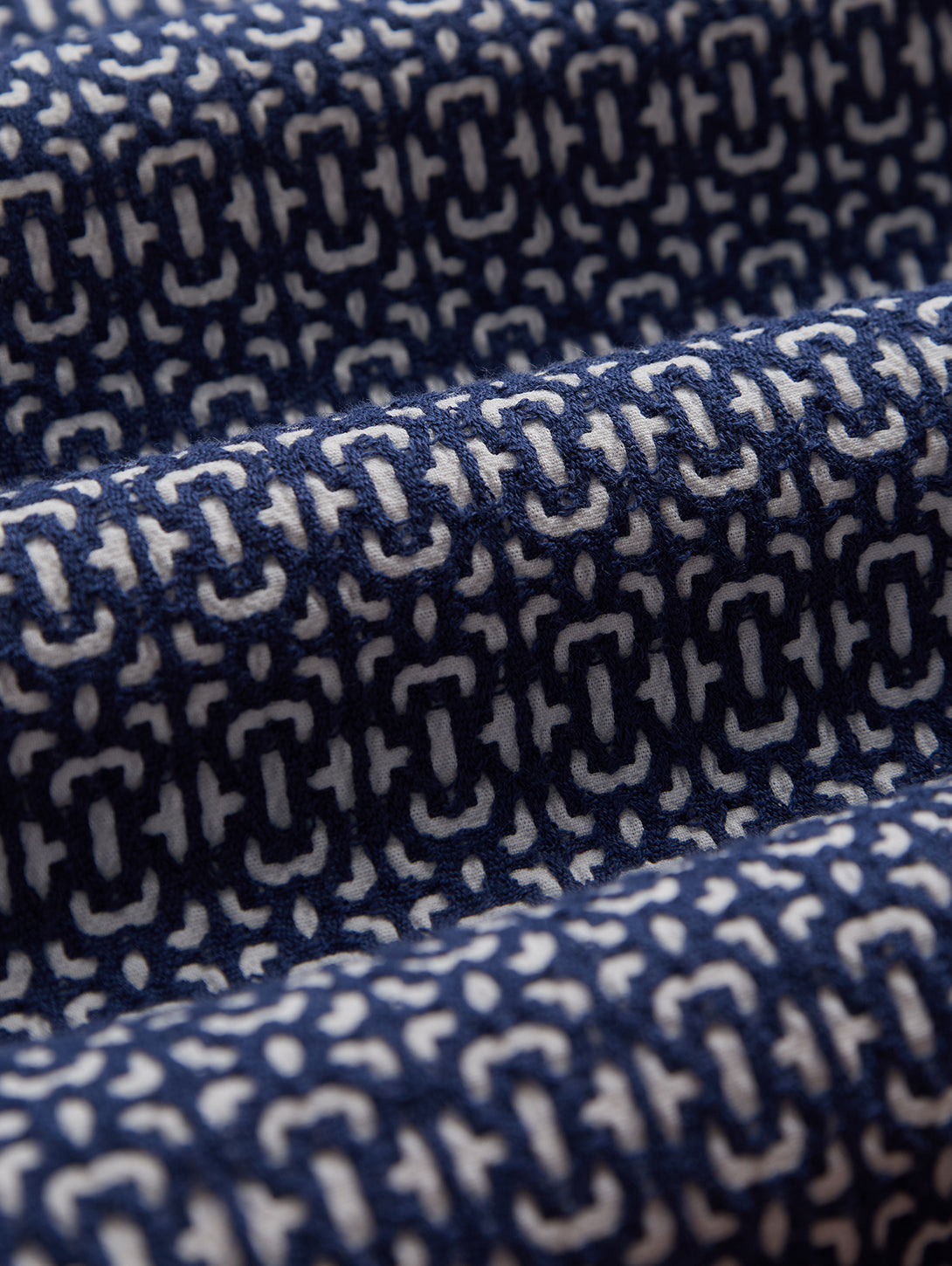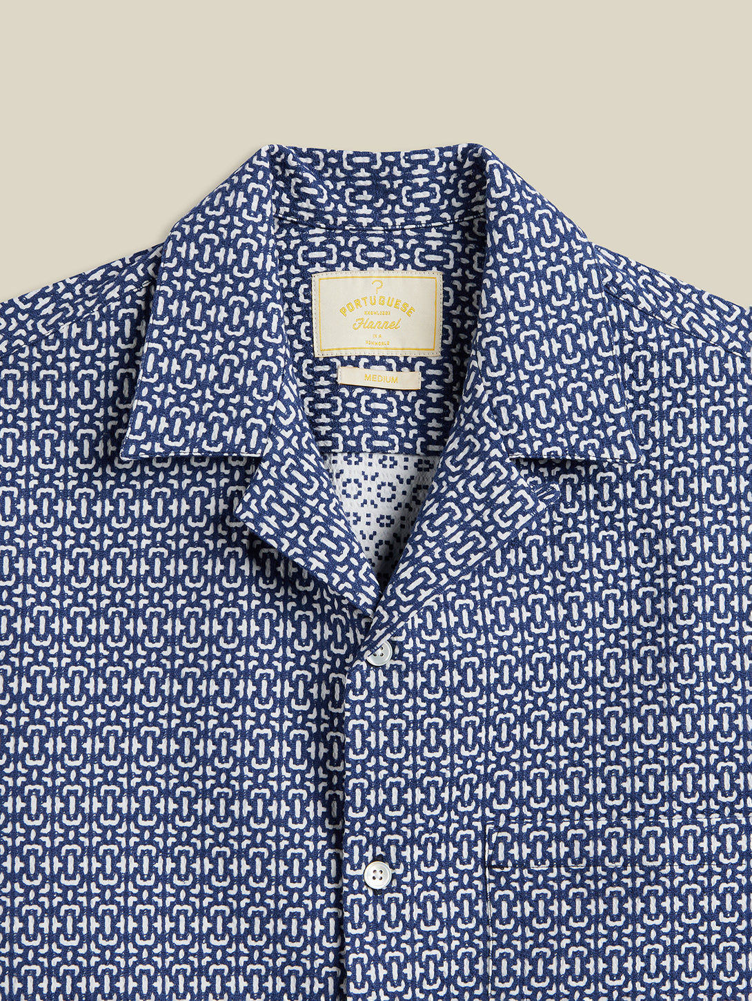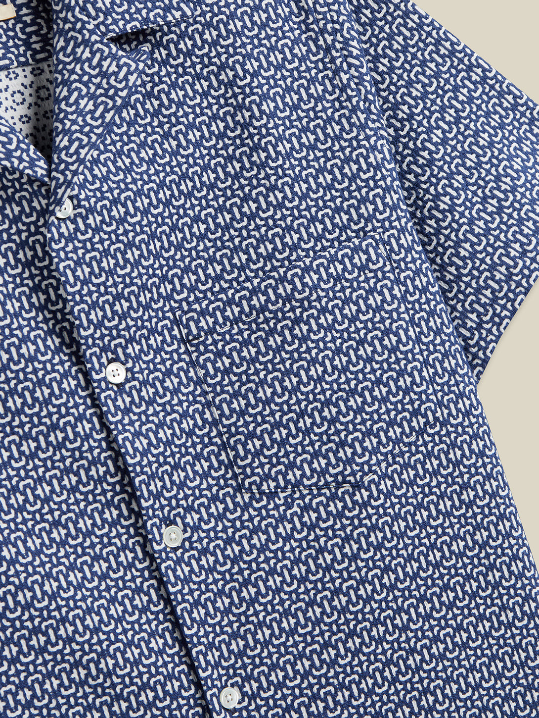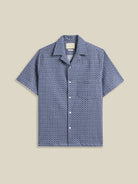A refined men's shirt featuring an abstract tile design in striking blue tones. Perfect for elevating your everyday wardrobe with contemporary style and understated elegance.