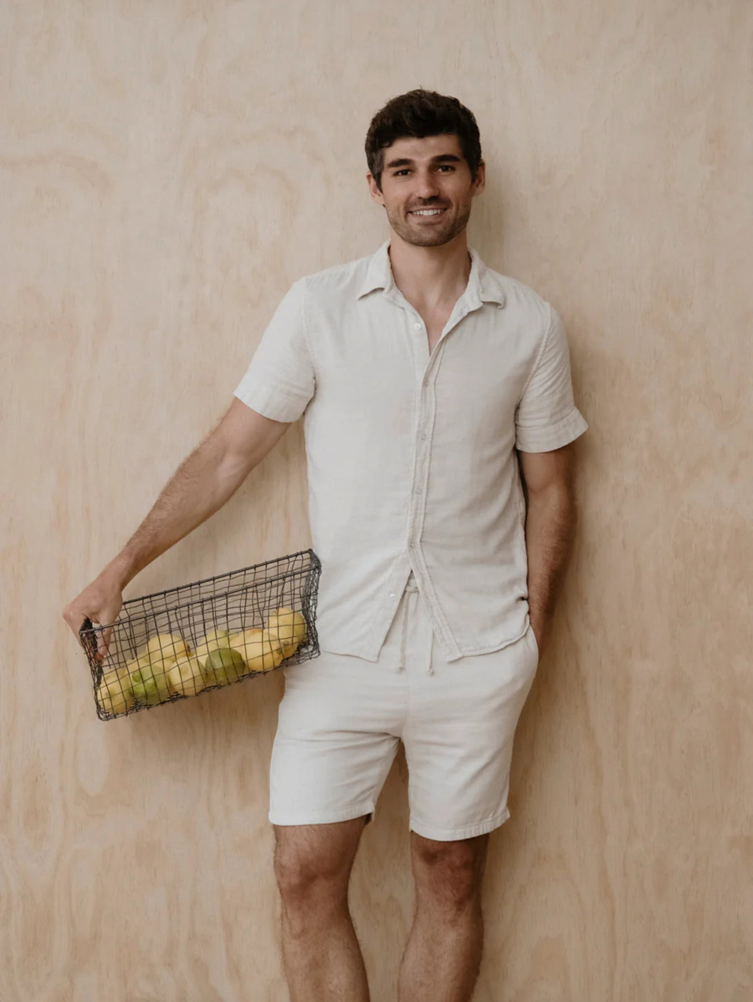 Konrad Cotton Linen Short Sleeve Shirt - Eggnog Wh