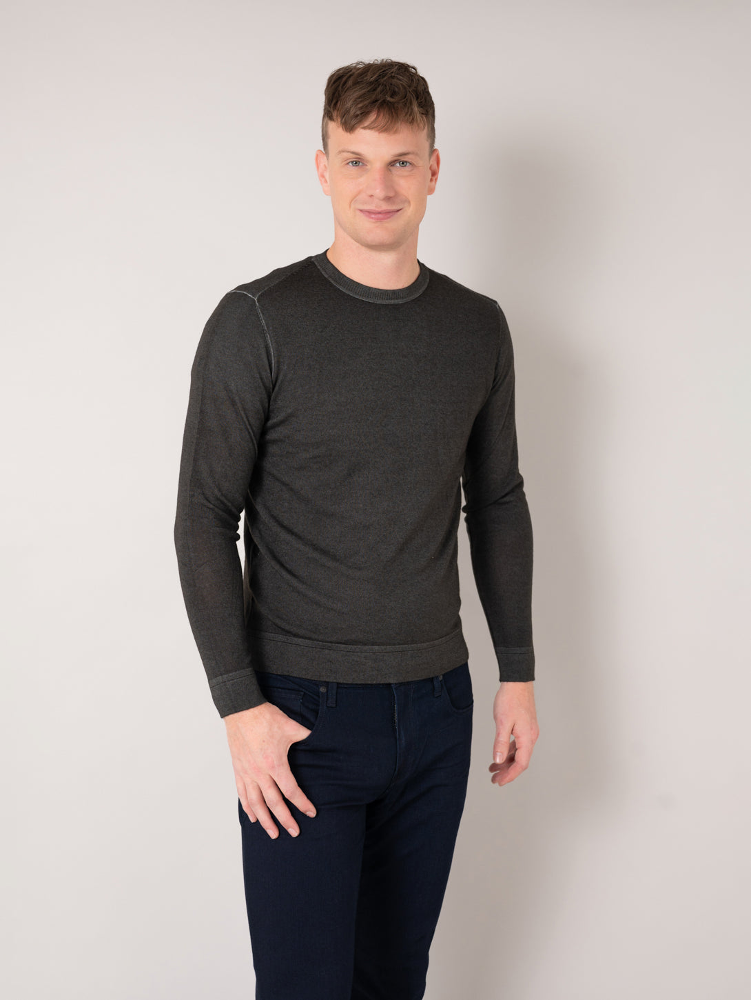Crafted from 100% extra-fine merino wool and finished with a subtle vintage wash, this lightweight crewneck sweater offers softness, and tonal depth. Designed for transitional seasons and smart-casual style, it pairs a polished look with everyday ease.
