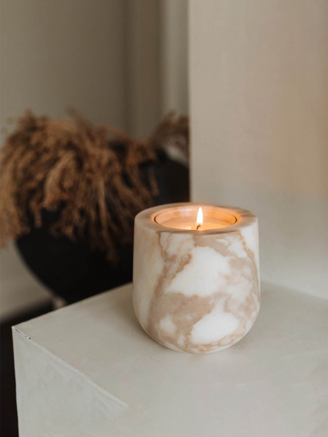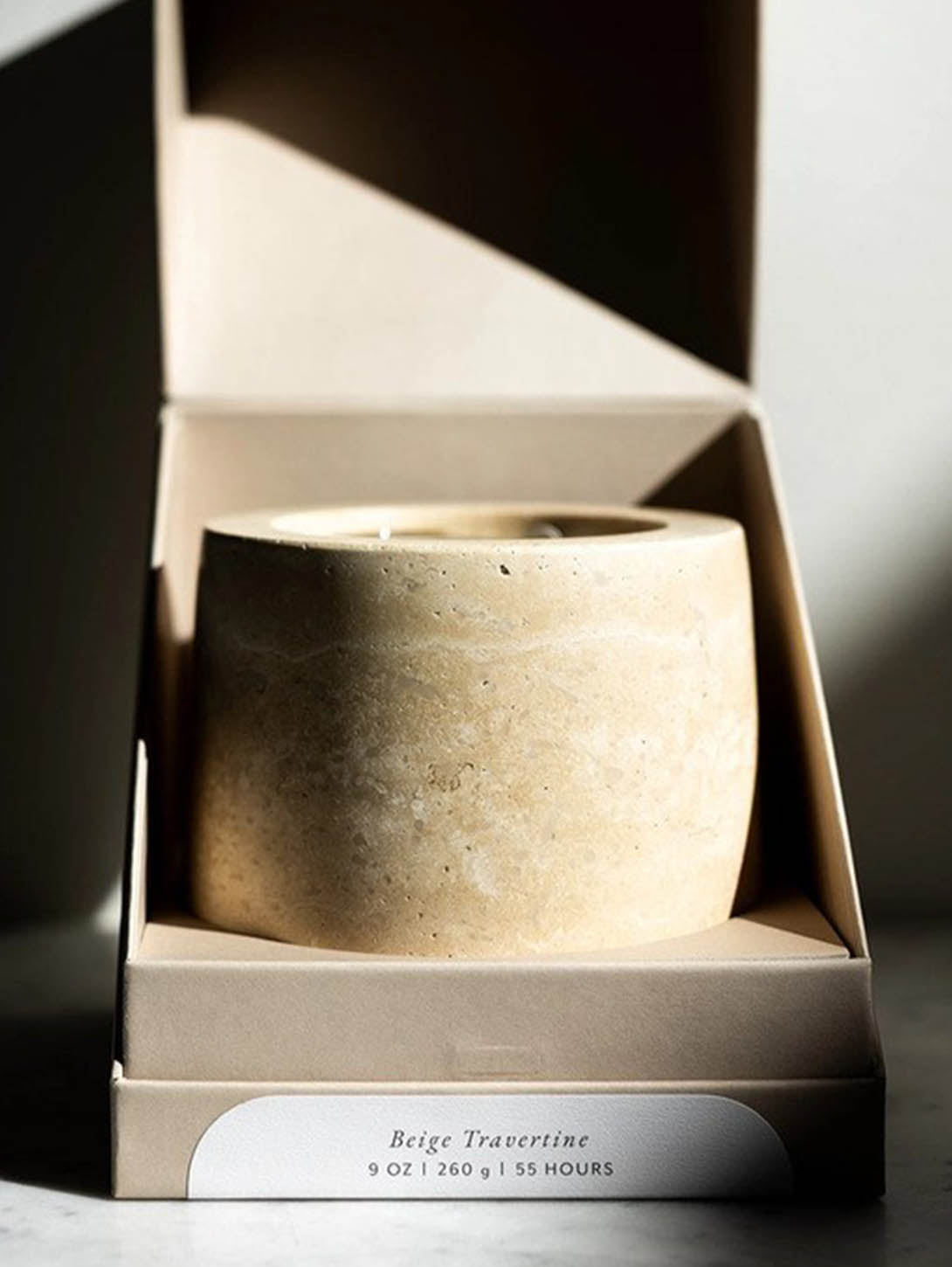 Beige Travertine Refillable Candle Vessel