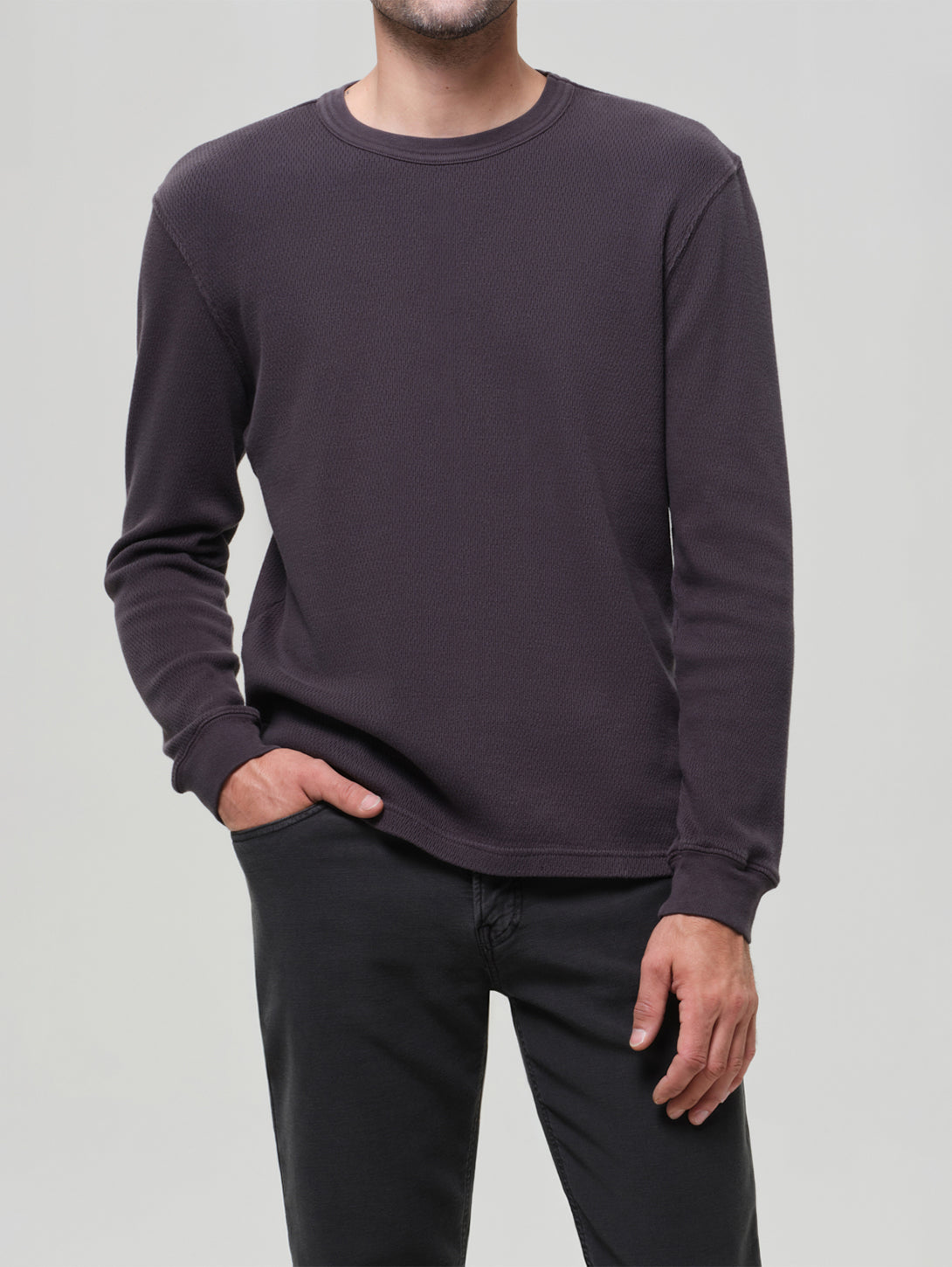 The ‘Waffle Crewneck’ is a cold-weather essential, crafted from a textured midweight thermal inspired by vintage military layers. Designed for a close yet comfortable fit, the long sleeve silhouette is easy to wear on its own or under outerwear. A refined update to the classic base layer.