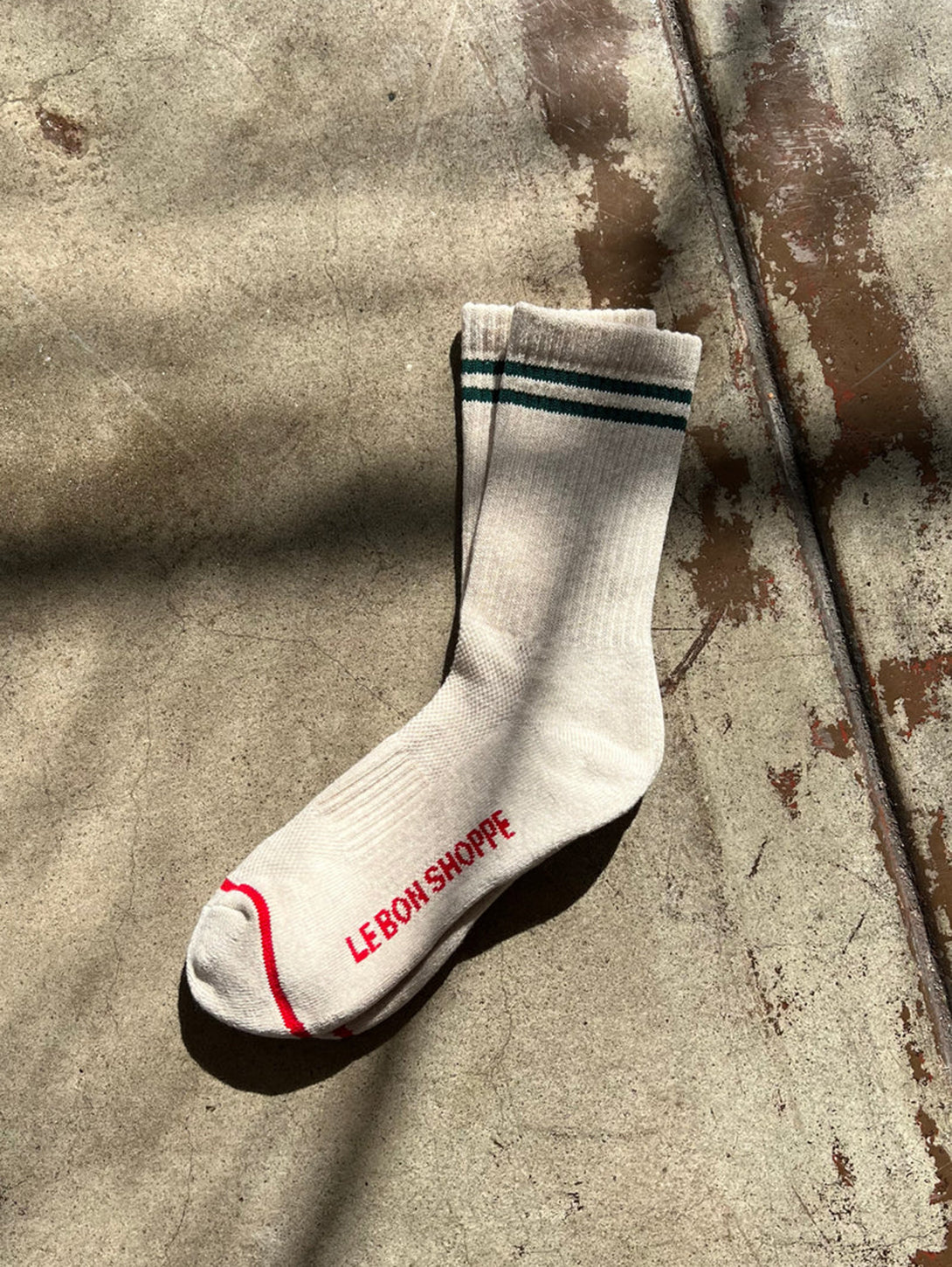 A signature style and year-round bestseller - the Boyfriend Socks capture a sporty vintage charm made for everyday wear. This slightly longer-than-crew sock features a contrast double stripe, mesh along the top of the foot for breathability, and elastic arch support. Durable, comfortable, and perfect for pairing with any shoe.