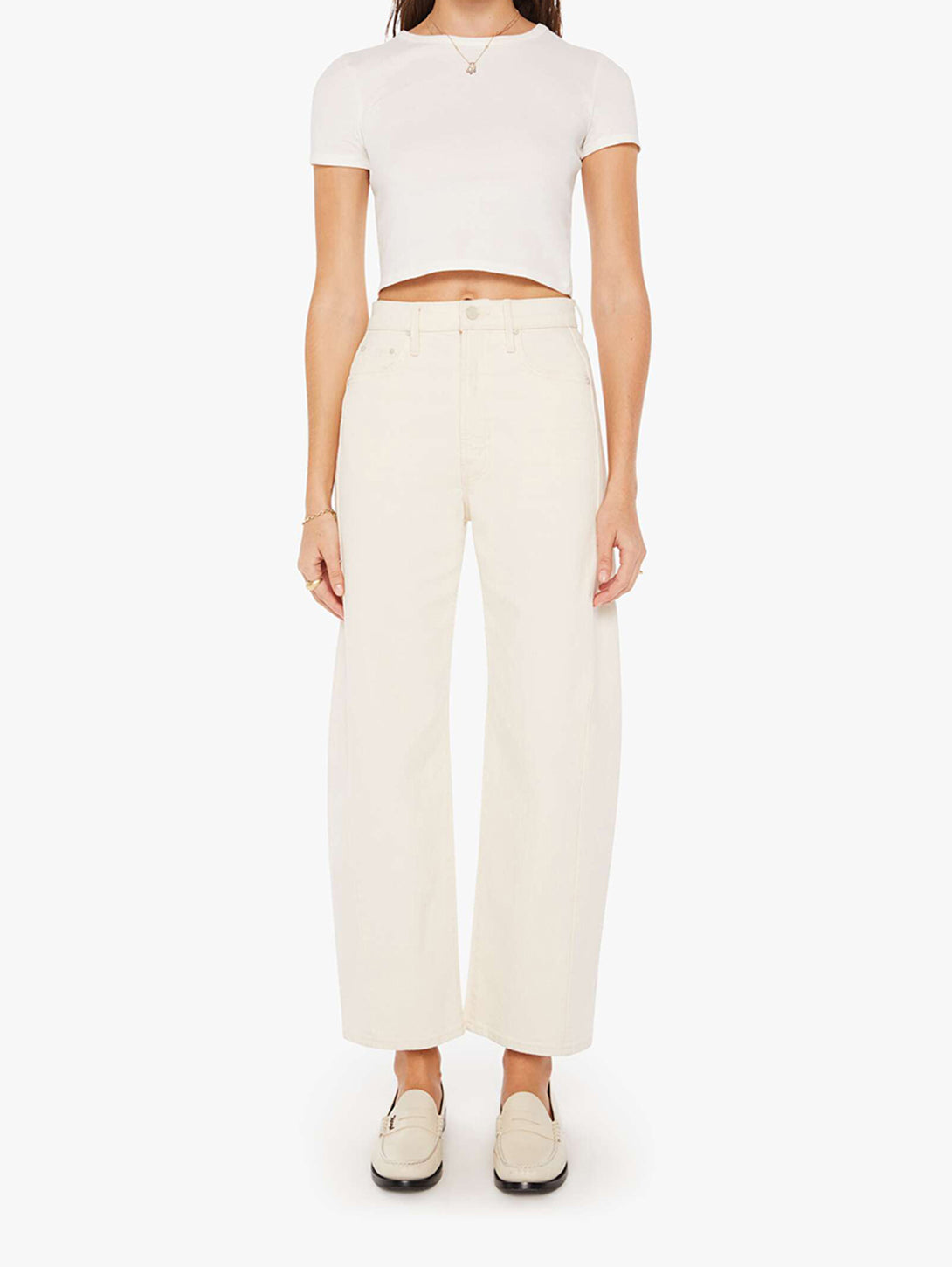 An expanded collection of foundational pieces designed for All Day, Every Day. Created for versatility, layering, and year-round wearability, these are the pieces you will never stop reaching for. A super high-waisted jean with a wide, curved leg, a 29" inseam, and a clean hem. Cut from a SUPERIOR cotton blend with a touch of stretch, Act Natural is a creamy white hue with tonal hardware.