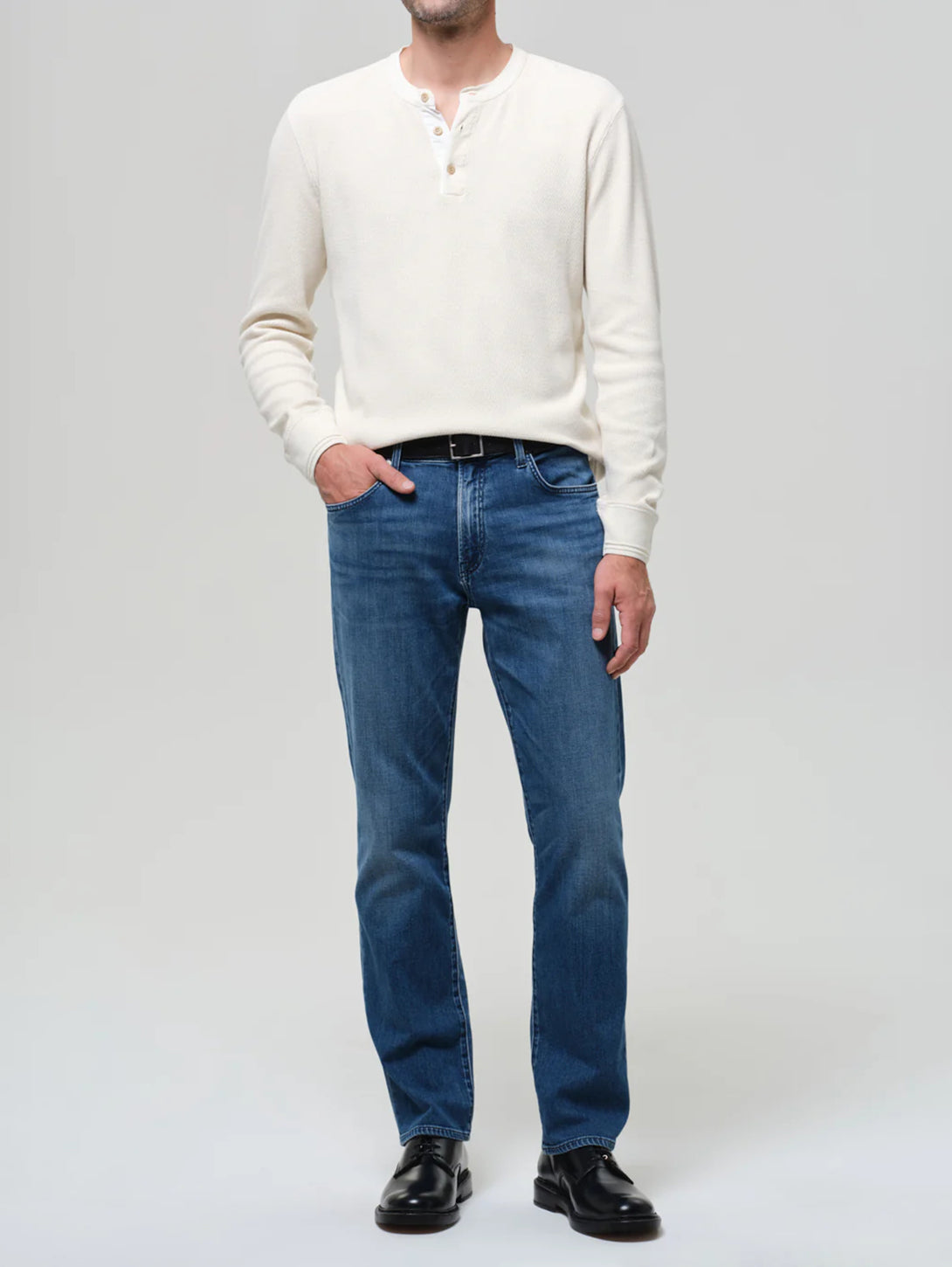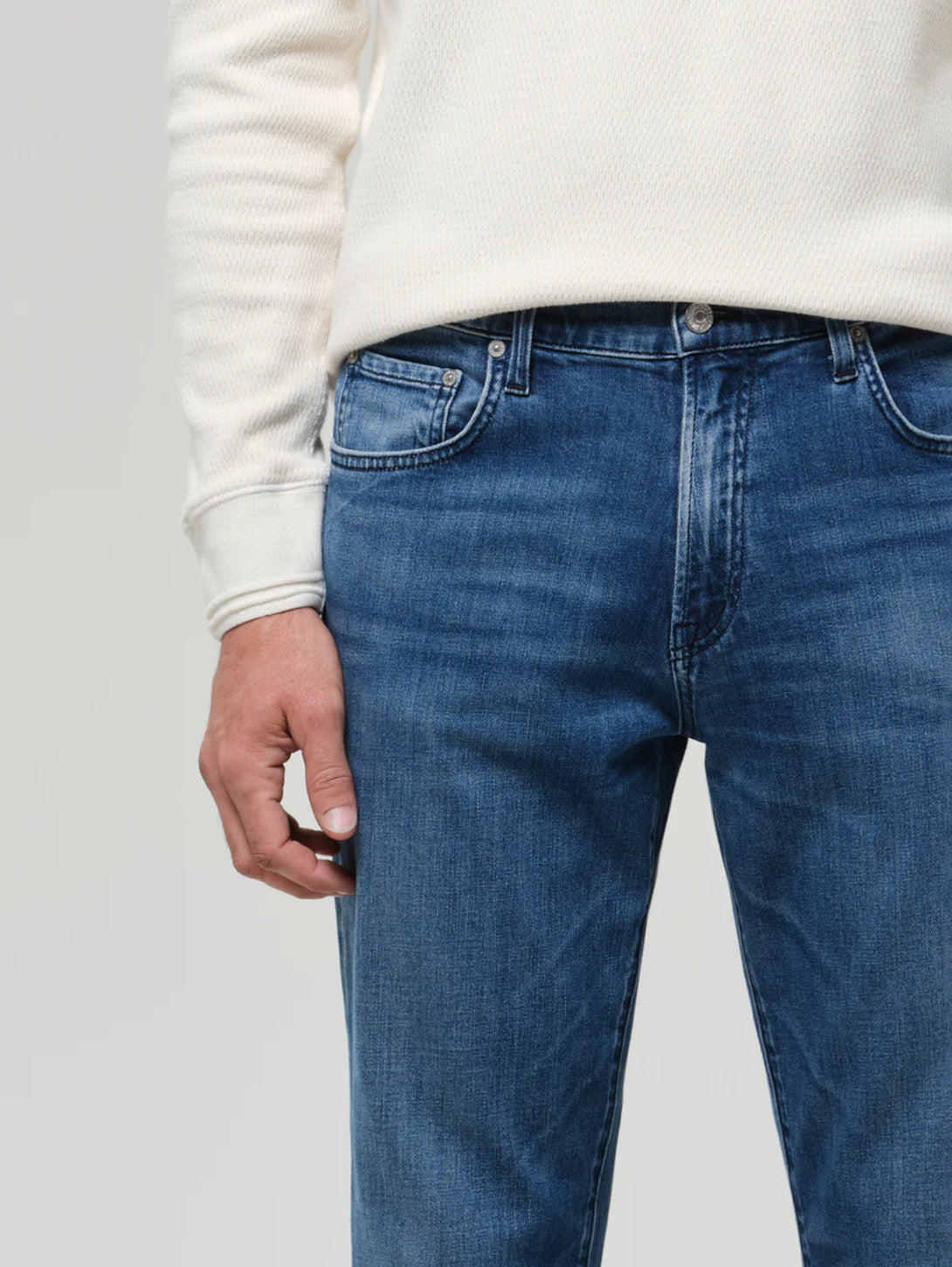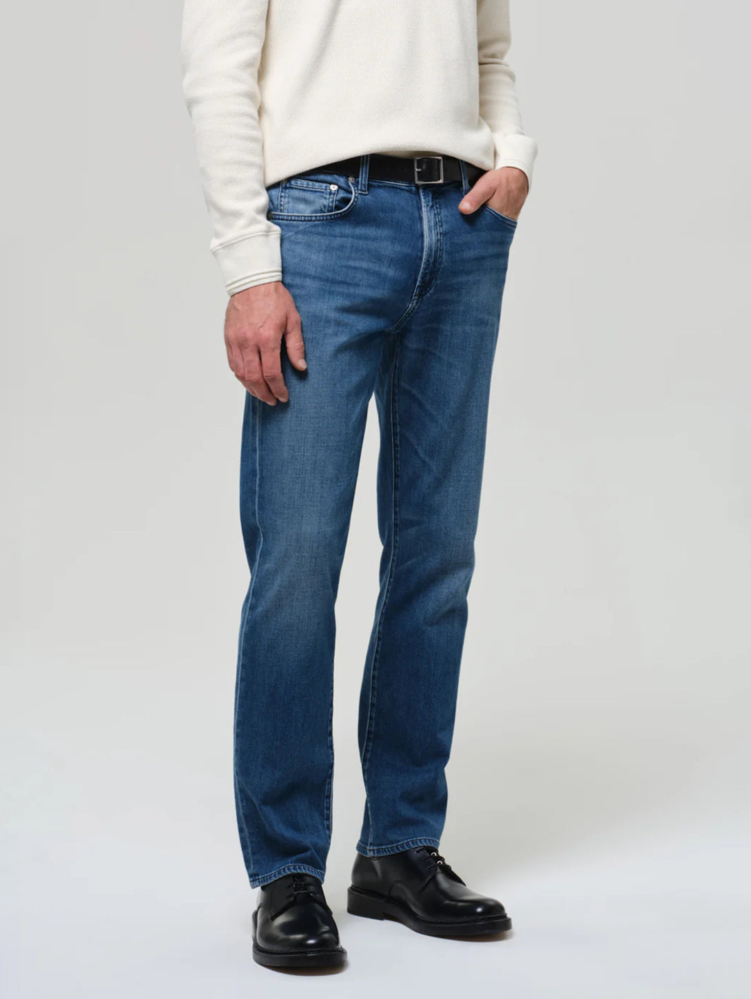 The Elijah Straight is our classic straight fit—our most relaxed silhouette, cut straight through the hip and leg for a clean, timeless look. Crafted in Tropical Denim, it takes cues from tropical wool tailoring—lightweight, breathable, and built for warm-weather wear. Designed to move with ease while maintaining a polished appearance, it delivers refined comfort and effortless versatility rooted in denim tradition.