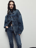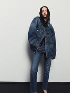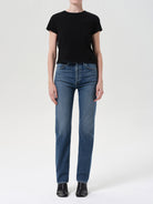 The 90’s Pinch Waist Long in Overcast features a medium to dark tinted indigo wash with soft fading and marbling for a broken-in look. Cut from lightweight comfort stretch denim, it’s designed to hold its shape while maintaining a soft, easy feel. The high-rise, straight-leg fit and 32" inseam create a clean, lengthened silhouette.