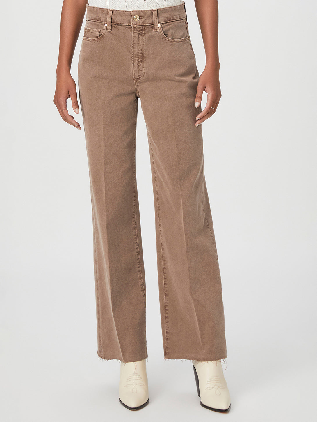 This modern high-waisted wide leg has an easy, relaxed fit with a 31" inseam. This pair comes in a vintage-inspired khaki shade and is crafted from comfort stretch denim with plenty of coverage and the perfect amount of stretch.
