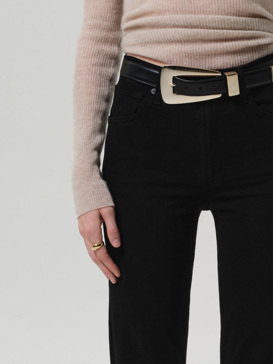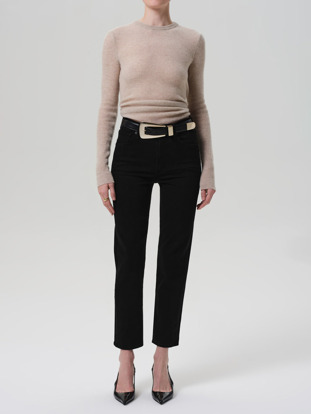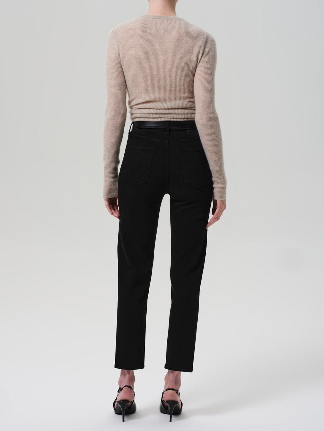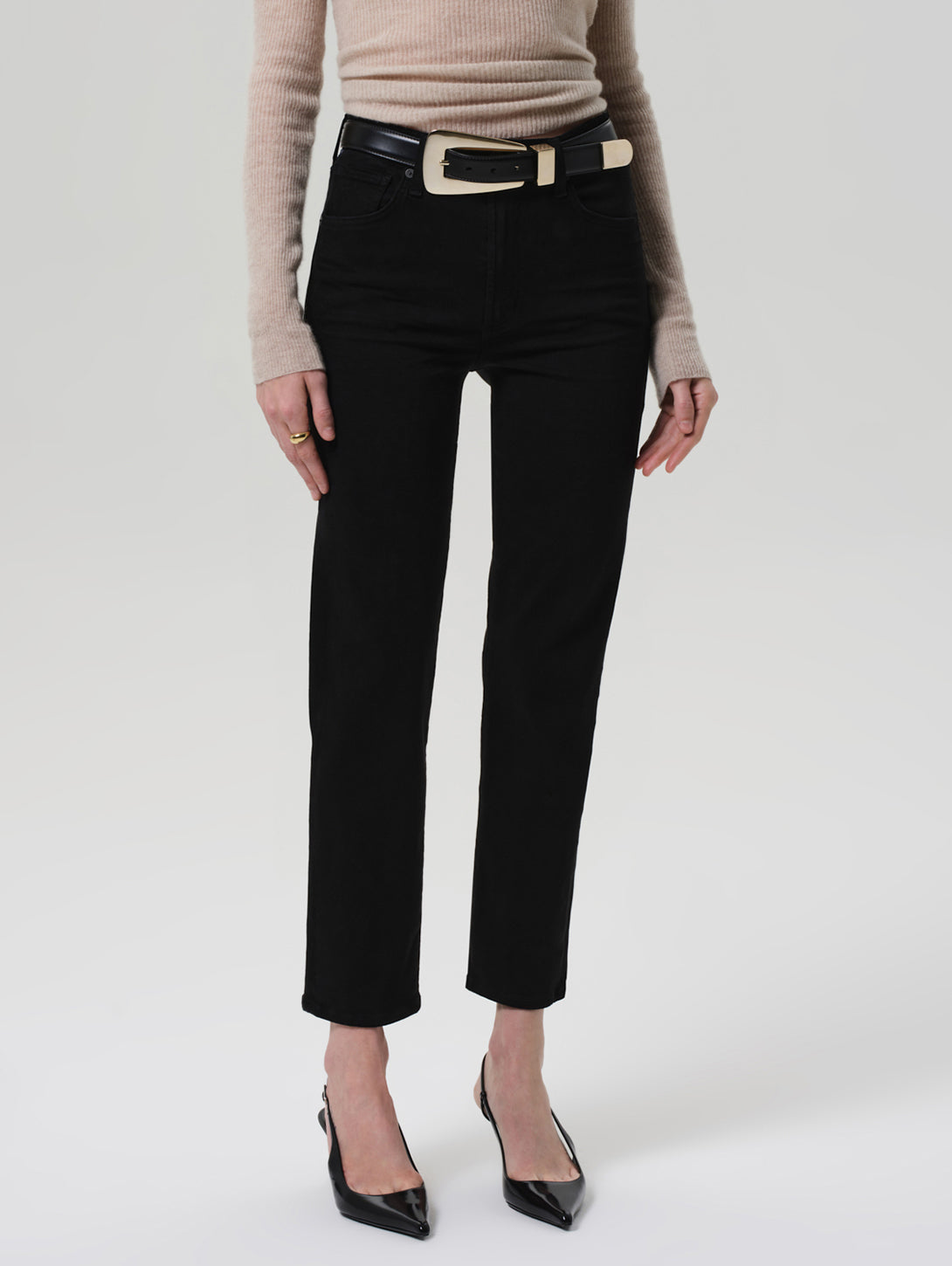 The Caia is a high-rise straight leg designed for everyday ease, crafted from soft stretch denim with a lightweight, flexible feel. The streamlined silhouette sits high on the waist and falls to an ankle-skimming length. The Plush Black wash—a clean, true black—offers a sleek, polished finish. Perfect paired with crisp shirting or easy knits.