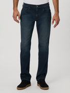 This slim straight fit comes in a classic wash with natural fading and whiskering. This style has the look of authentic vintage denim but is incredibly comfortable with plenty of stretch and recovery.