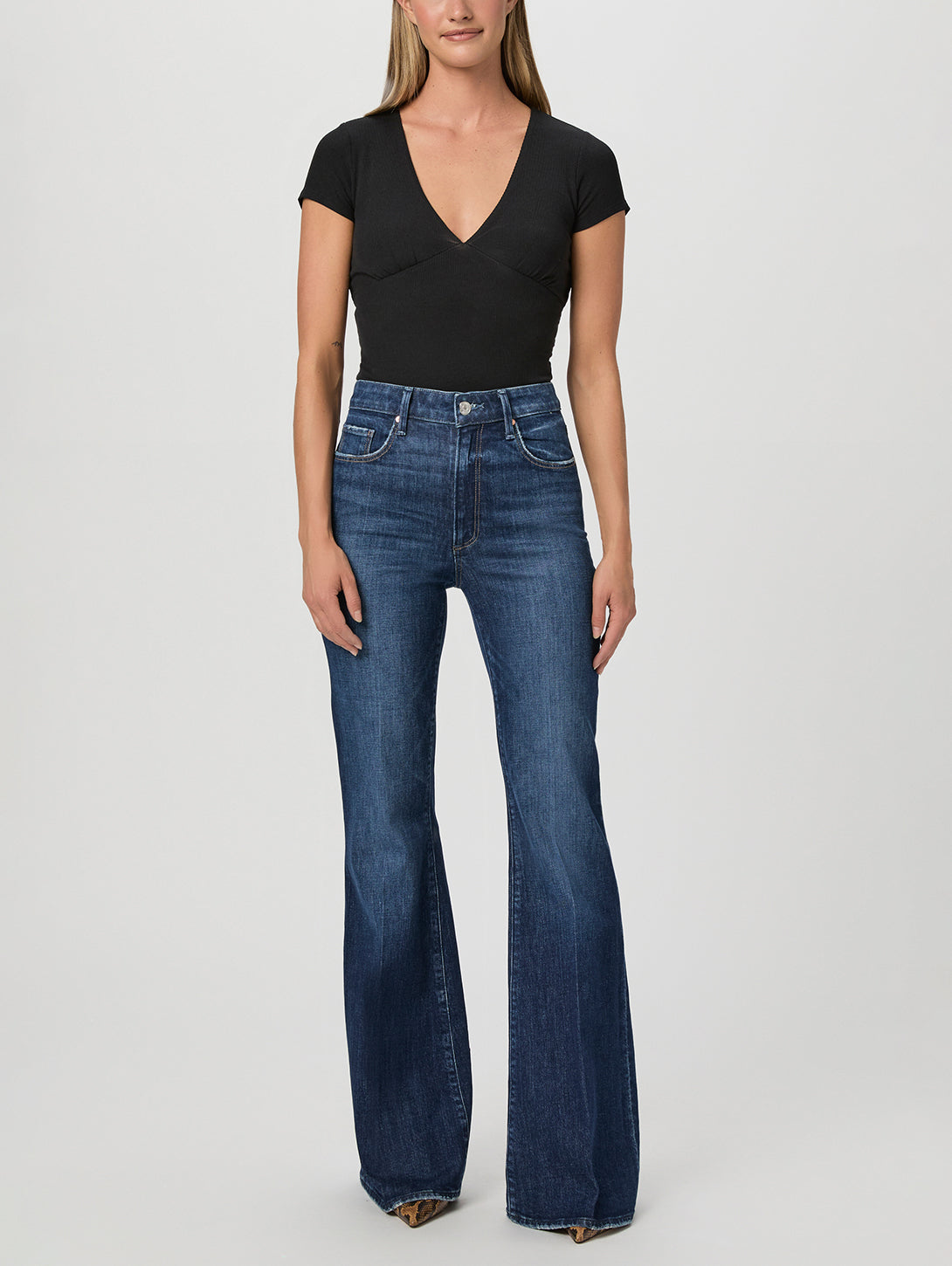 Sasha is our high-rise wide leg with a fitted top block and a slightly relaxed fit. This pair is cut from our bestselling PAIGE VINTAGE denim in a chic, elevated dark wash. PAIGE VINTAGE takes all of the work out of breaking in your favorite pair of vintage jeans. We've combined the comfort of stretch with everything you love about authentic vintage denim to create super soft jeans that feel perfectly lived-in from the very first wear.