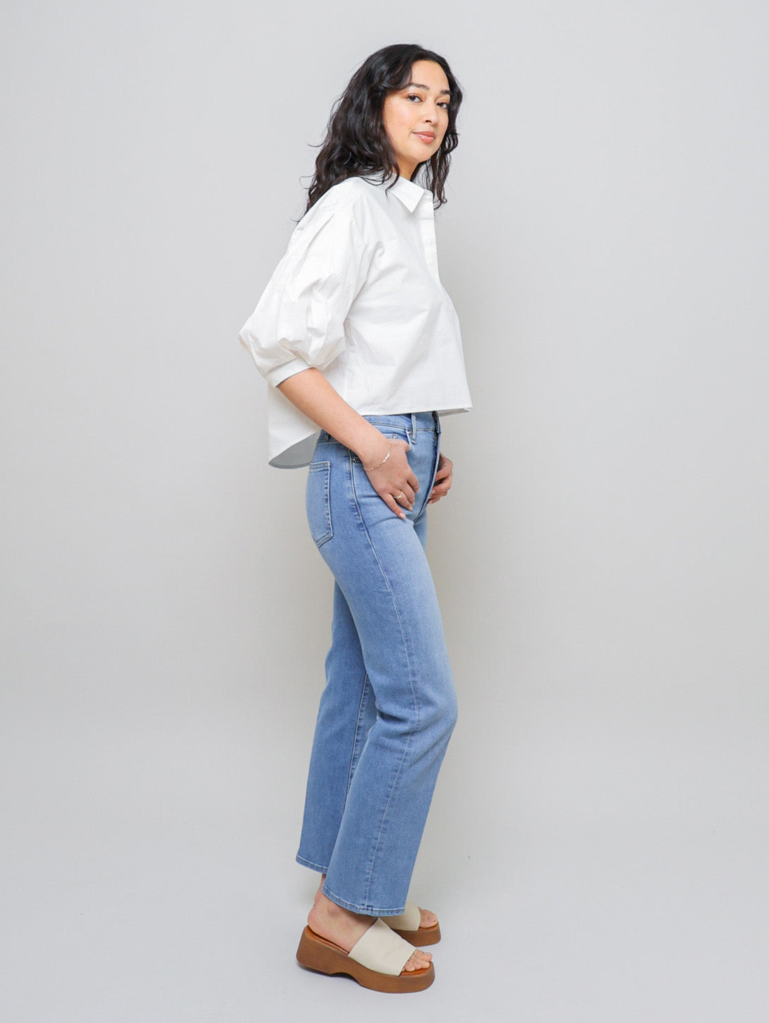 The ultimate straight-leg jean crafted from super stretch denim for all day comfort. Le Sleek Straight features a high rise and relaxed straight leg that hits at the ankle, perfectly designed to be dressed up or down, and worn all day, everyday.