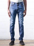 Introducing AOMORI (“Blue Forest”), a collection focused on mixing comfort with authenticity and function. Edwin’s Slim Taper is the signature carrot fit, properly balancing a roomy thigh with a tapered bottom. Produced in a 12 oz. light blue cotton stretch “Kurai” wash. Made in Japan with a zipper rise closure, classic contrast stitching and 5-pocket styling.