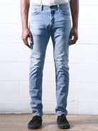 Introducing AOMORI (“Blue Forest”), a collection focused on mixing comfort with authenticity and function. Edwin’s Slim Taper is the signature carrot fit, properly balancing a roomy thigh with a tapered bottom. Produced in a 12 oz. light blue cotton stretch “Raito” wash. Made in Japan with a zipper rise closure, classic contrast stitching and 5-pocket styling.
