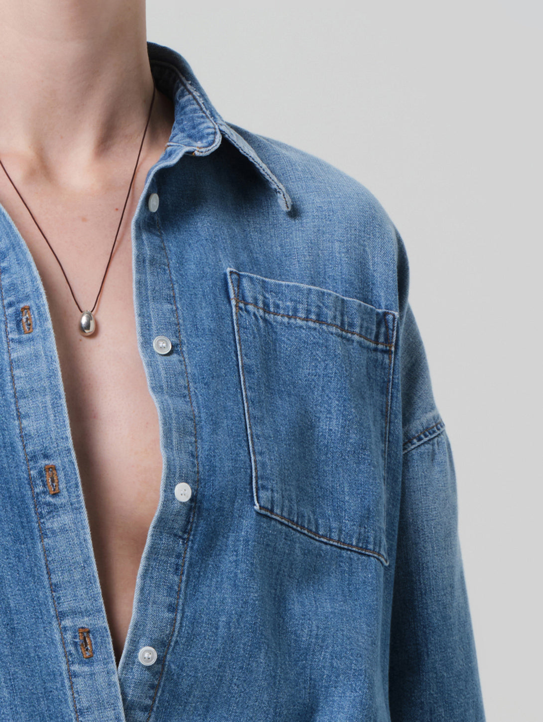 The Francis Cropped Cape Button-Up offers a fresh take on the classic button-down. Crafted from 100% cotton, it features expertly placed seam details for a close, accentuating fit. The cropped silhouette adds a modern twist, making it the perfect piece to pair with high-waisted denim or a sleek skirt for an effortlessly elevated look.