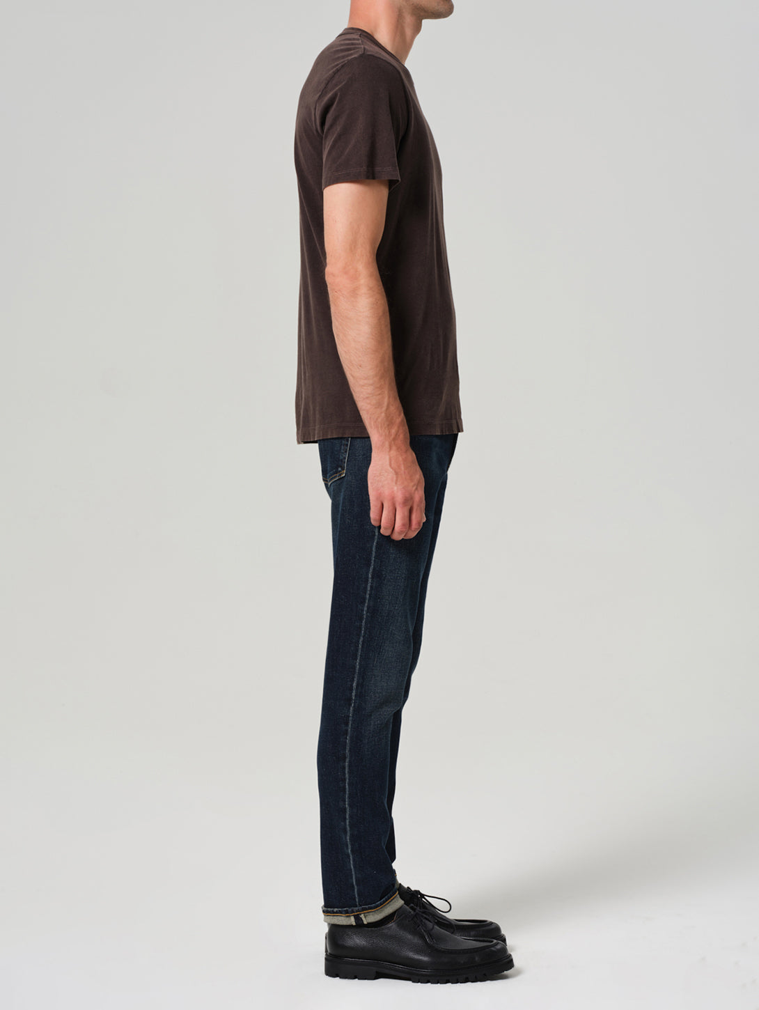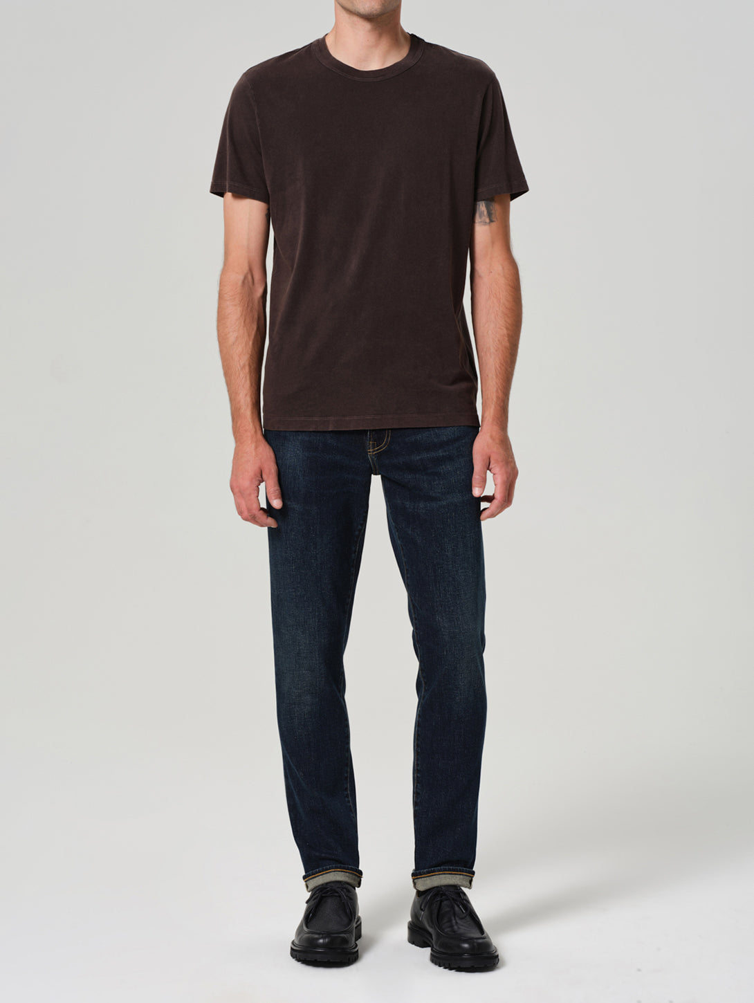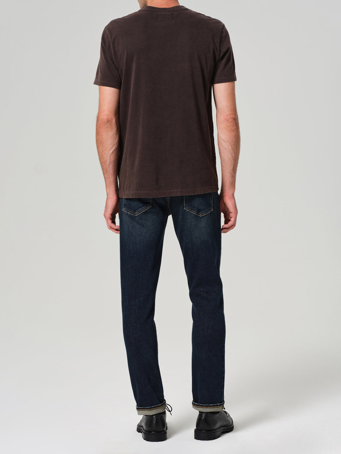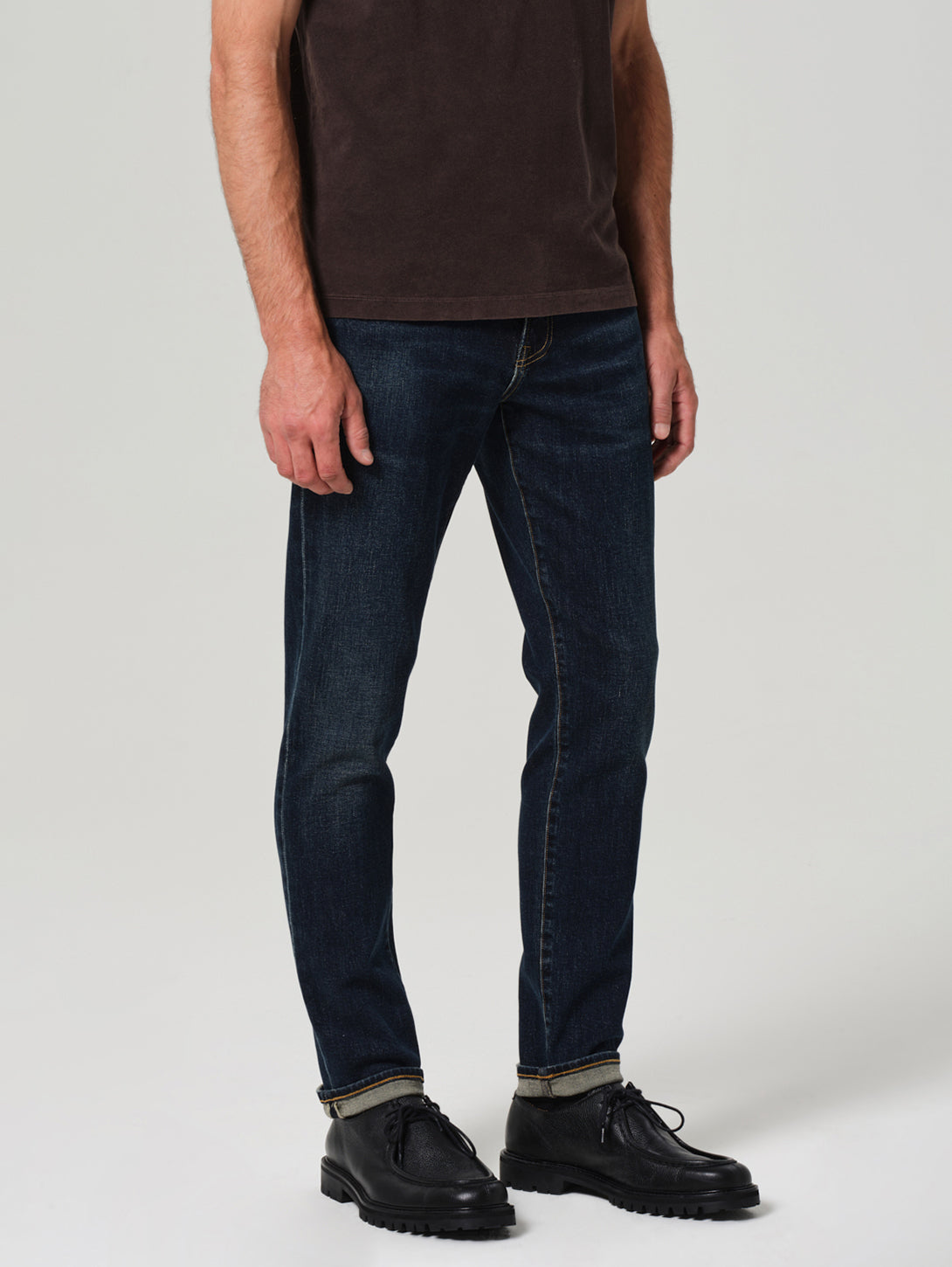 Our trimmest option, tailoring the slim to offer a trimmer look from the knee down while offering room throughout the hip and thigh.
