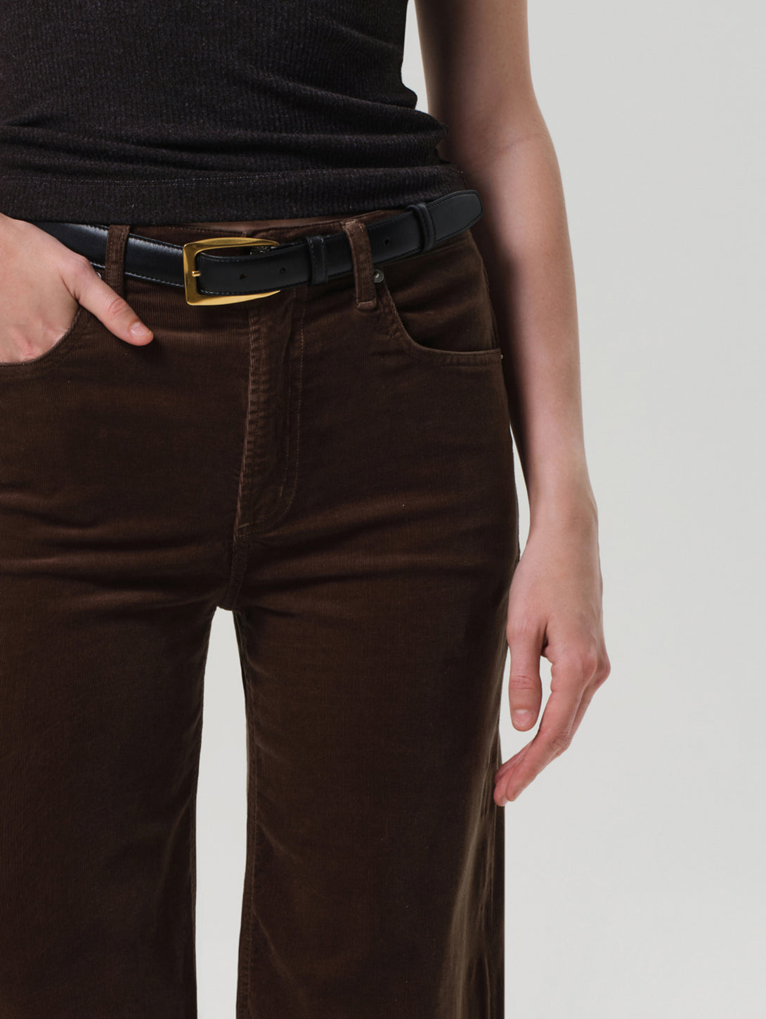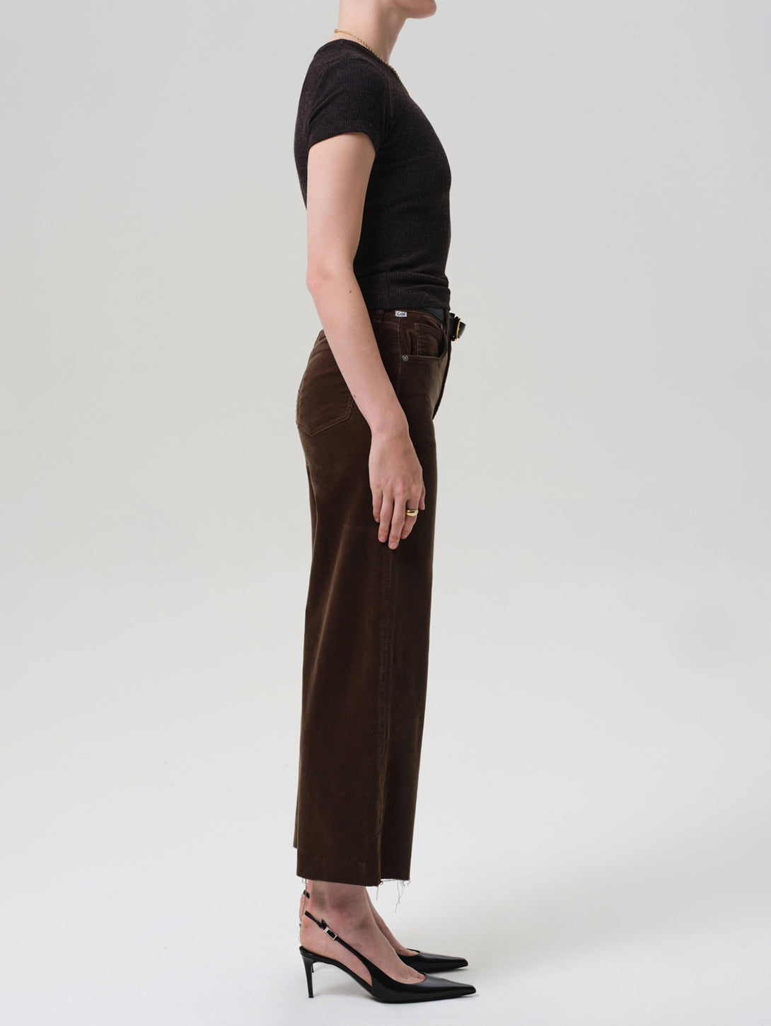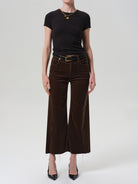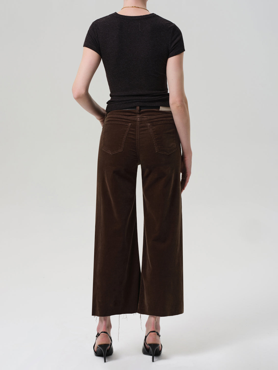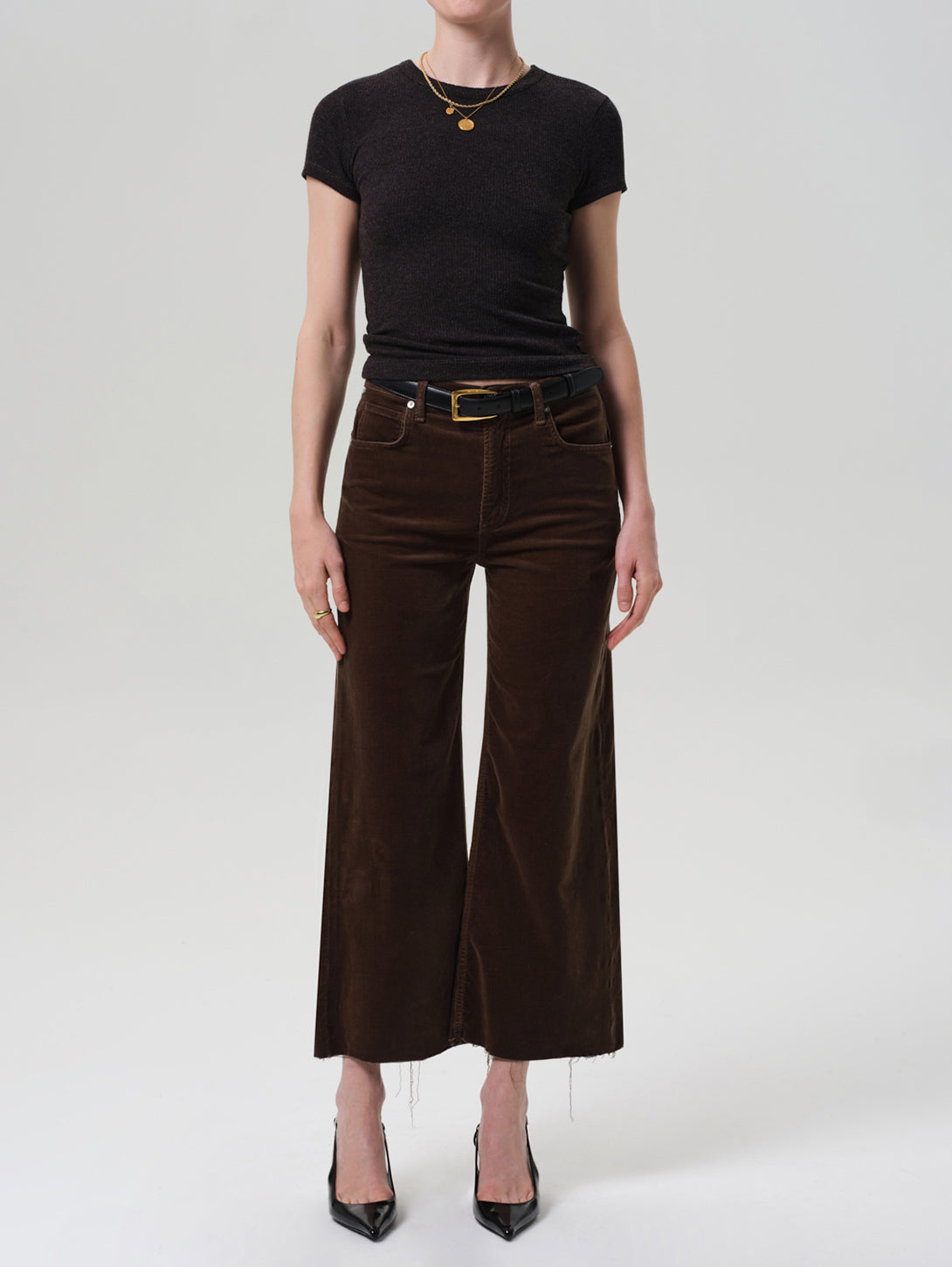 The Lyra is a vintage-inspired wide leg that sits high on the waist with a relaxed top block and cropped inseam for a modern, voluminous silhouette. Crafted from soft stretch baby corduroy, Costes is a rich, medium-to-dark green that adds texture and depth to everyday styling. Pairs effortlessly with any footwear—boots, flats, or sneakers—for all-around versatility.