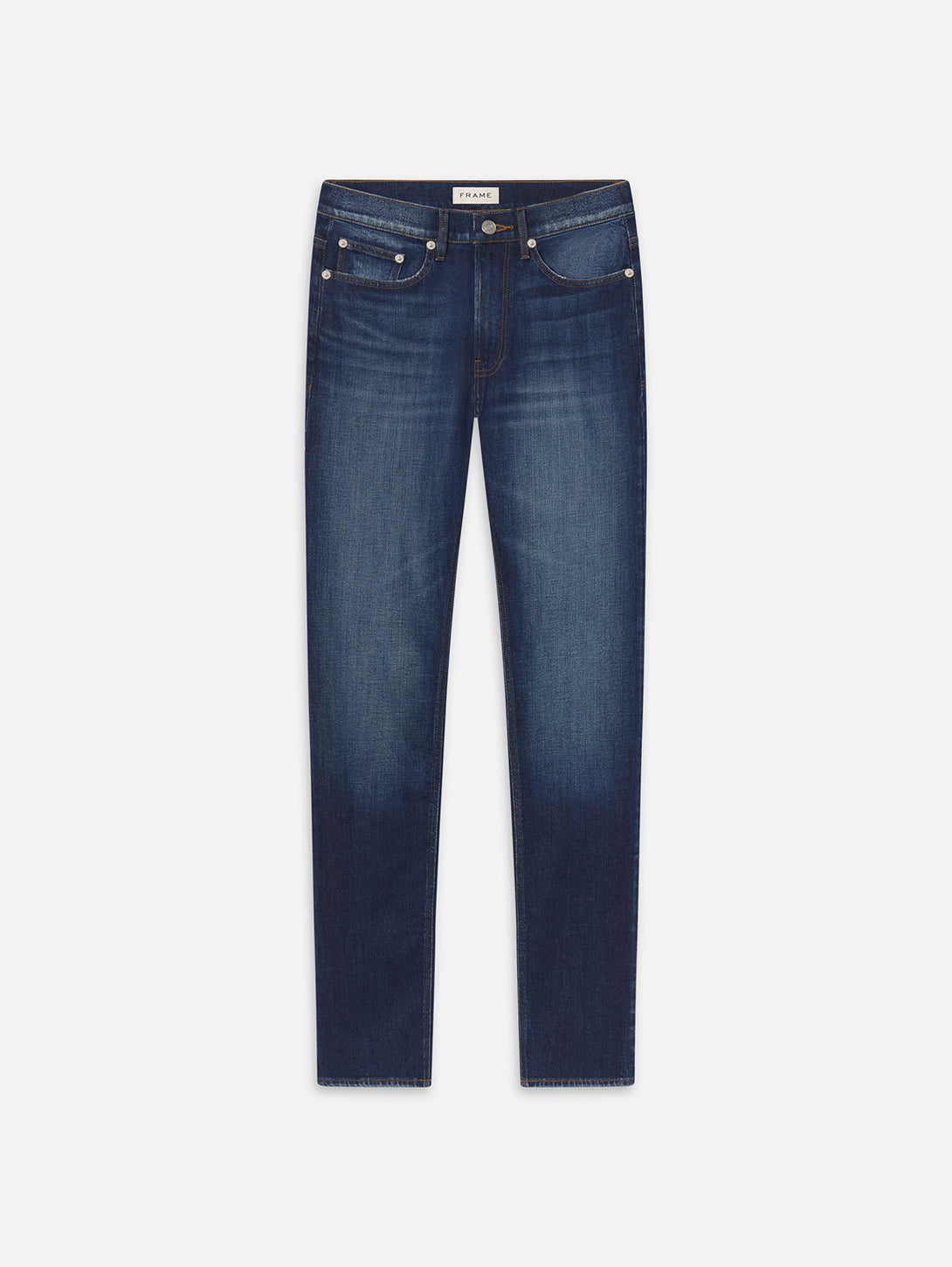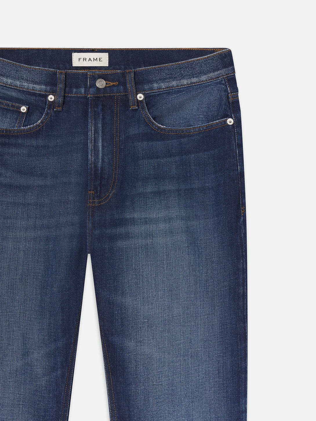 Our mid-rise, straight-leg silhouette is cut from a sustainable stretch-cotton blend using post-consumer recycled cotton and organic cotton. This 5-pocket pair easily achieves a smart, casual look in any wash.