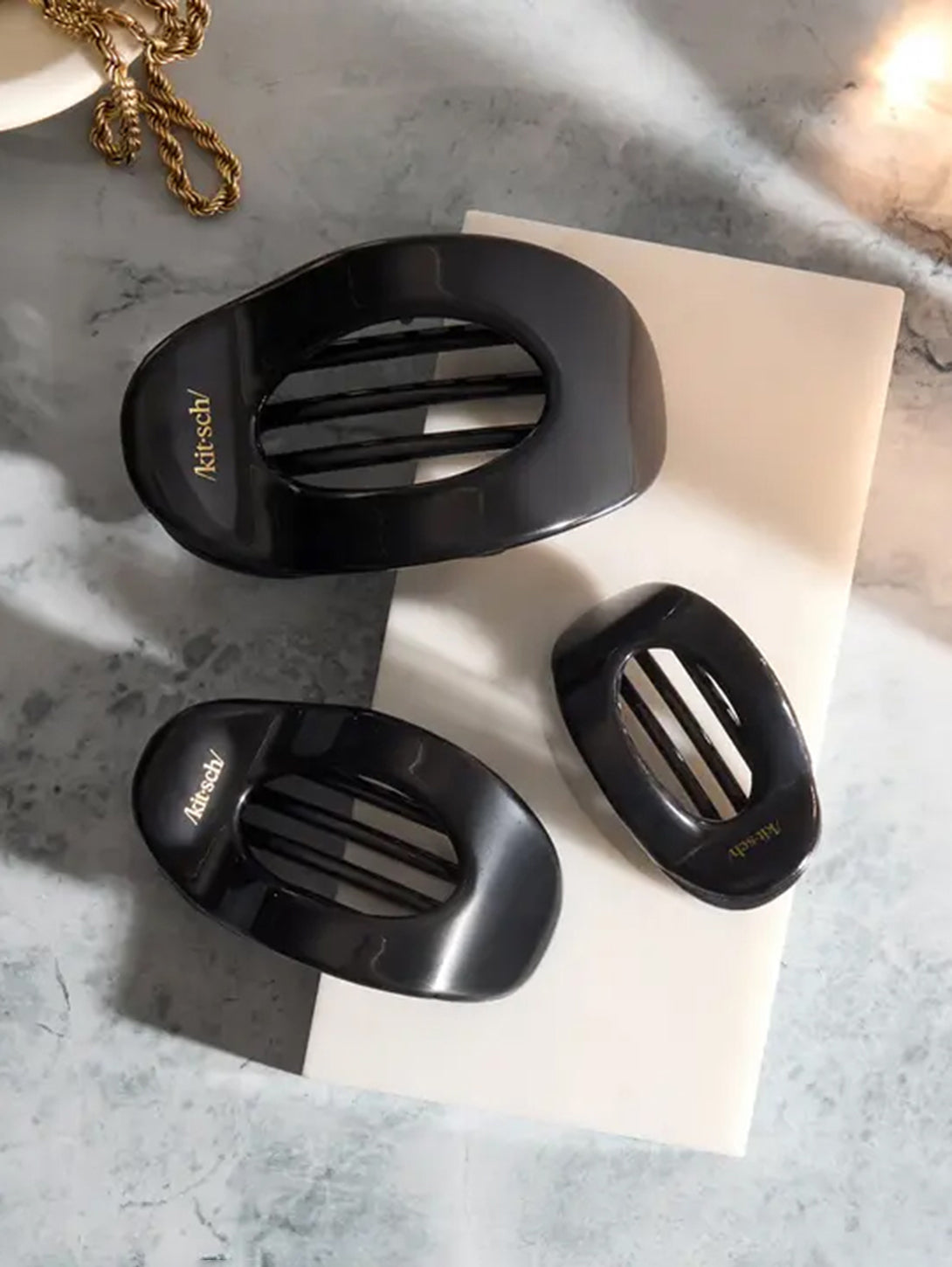 Fuss-free, flat design sits comfortably at the back of your head—perfect for driving, lounging, or yoga. Small-sized clip effortlessly secures strands for half-up or full updos. Use one clip for a simple look or stack two together for versatile styling Why You'll Love This. Elevates any outfit -Gentle, yet strong teeth grips all hair types without snagging or slipping. Made from recycled plastic, so you can style sustainably.
