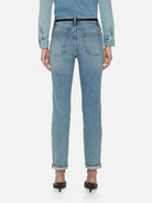 A boyfriend jean for the new millennium, this mid-rise silhouette hugs the hip and finishes into an ankle-length inseam. We love to style it with a 1” cuff, though you're free to unroll it for a longer look. Cut in our Structured Stretch denim for a vintage look with modern comfort.