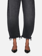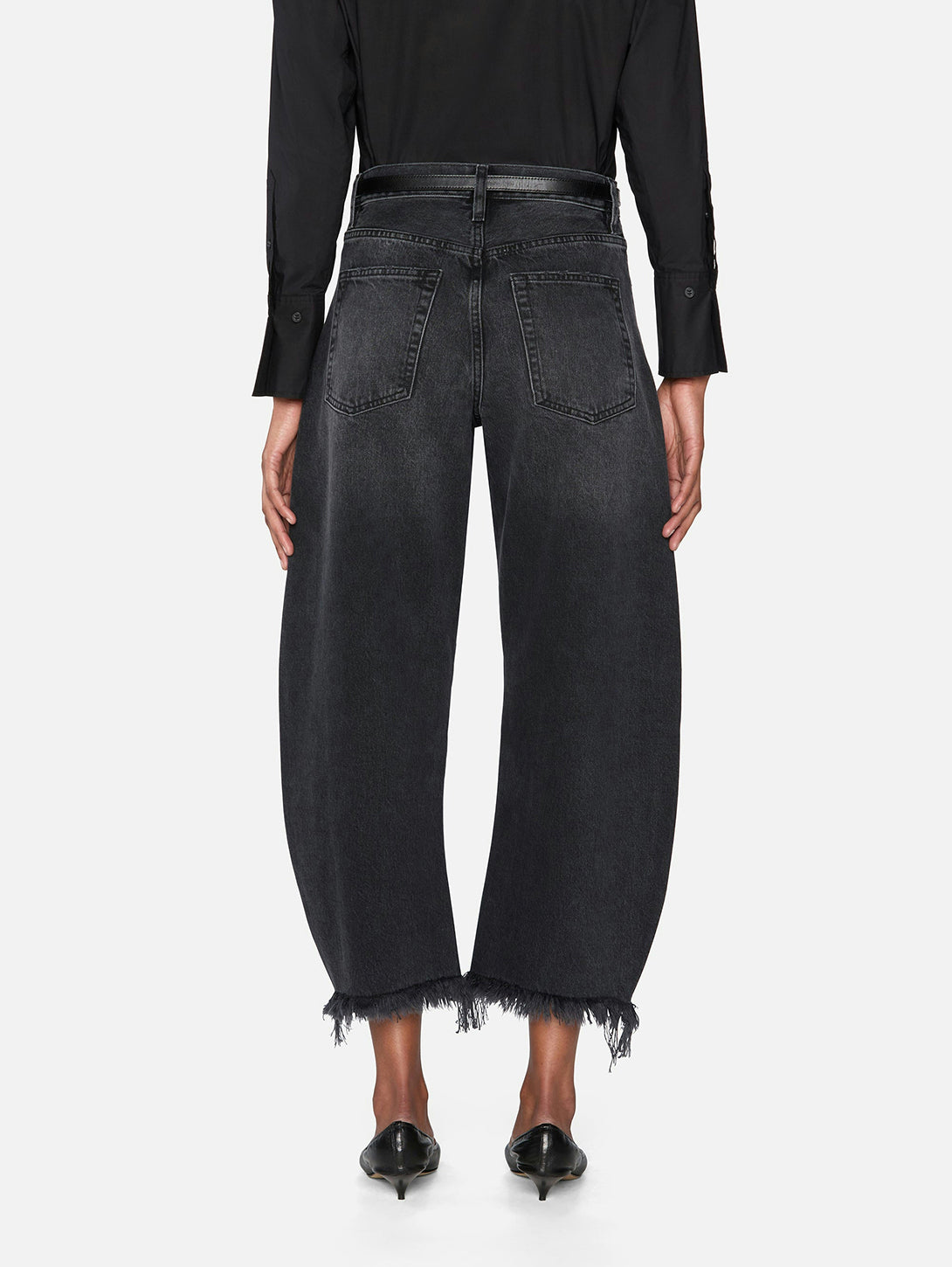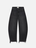 The best-selling Bubble, now with a shorter 27" inseam. The exaggerated take on the trending barrel silhouette is a unique fit and instant closet necessity. With a flattering high rise, these jeans have a curved outseam for a playful bubble effect. Note the raw, fringed hem for a pre-loved look.