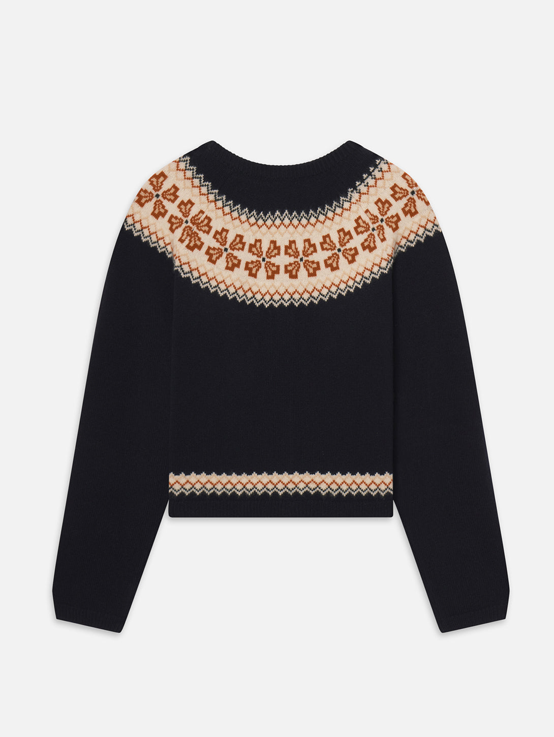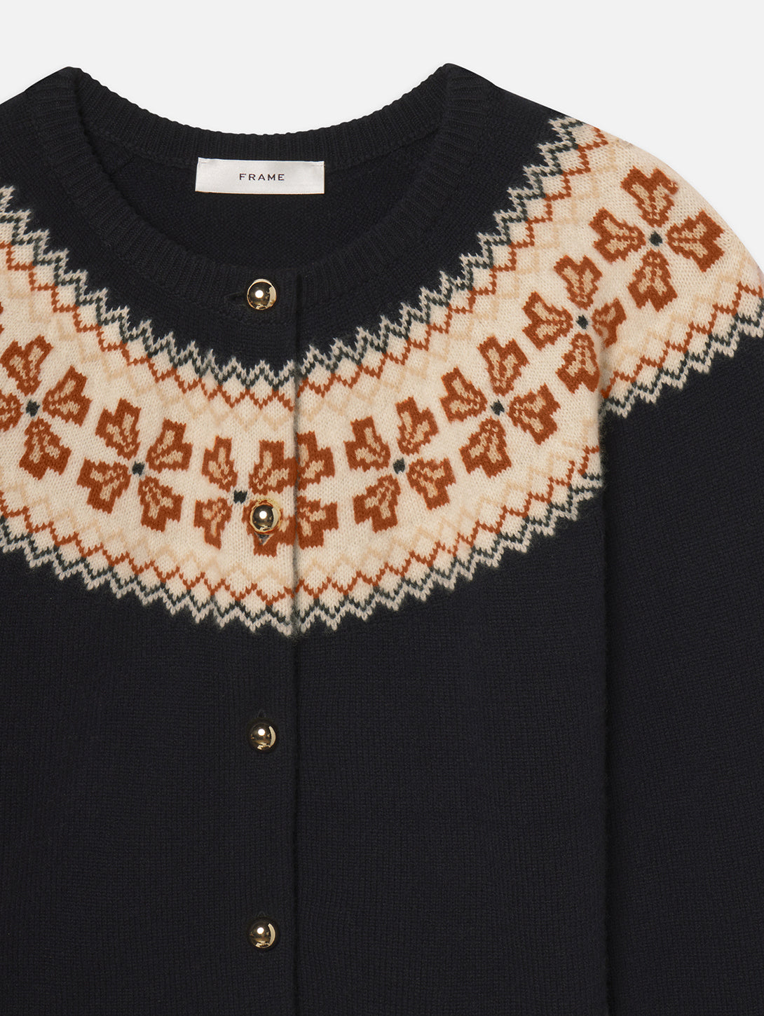 Crafted from pure cashmere, this cardigan pairs a nostalgic Fair Isle pattern with delicate gold buttons for a modern, feminine take on heritage knits.