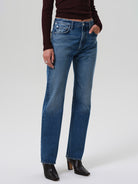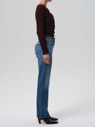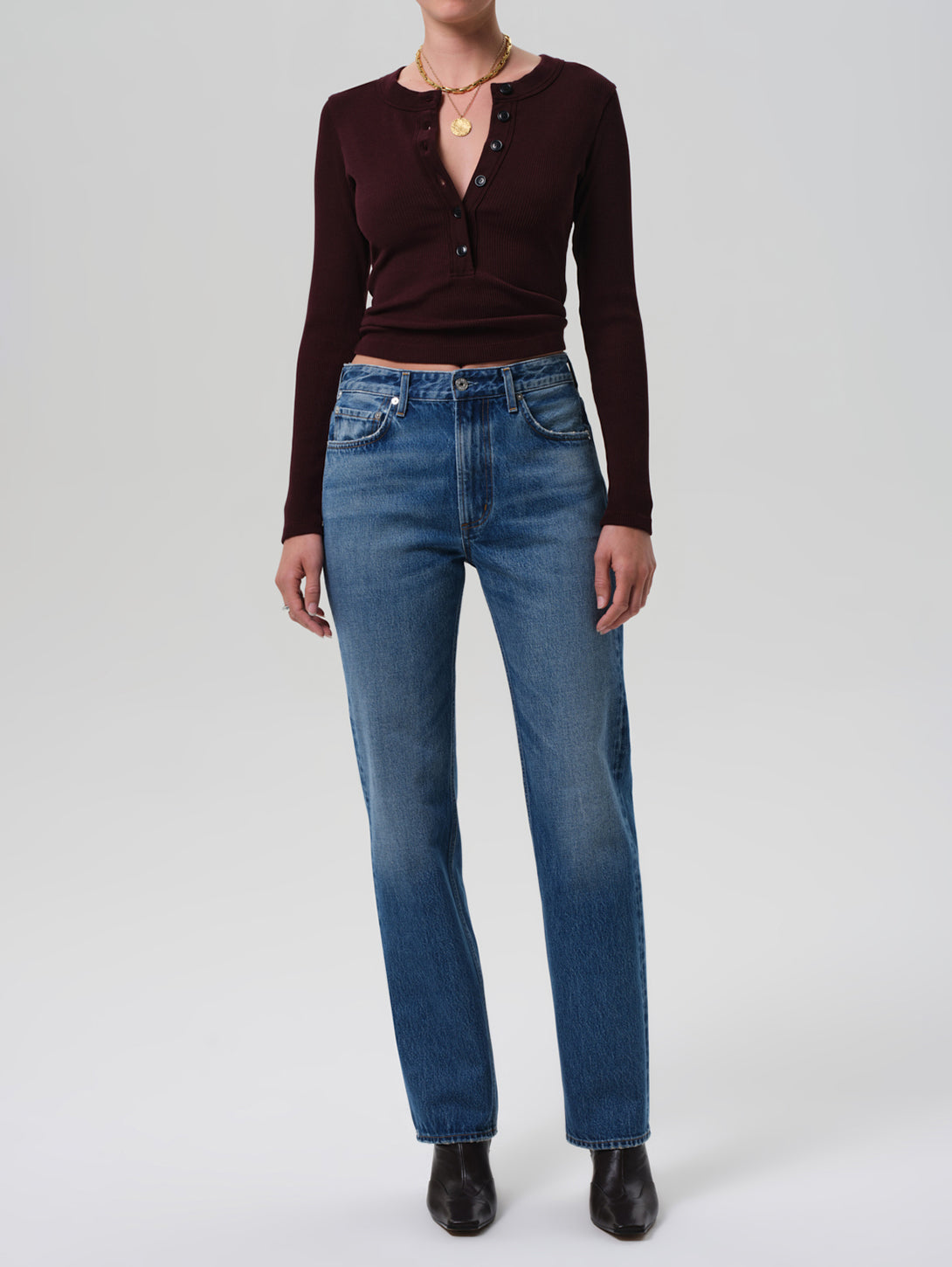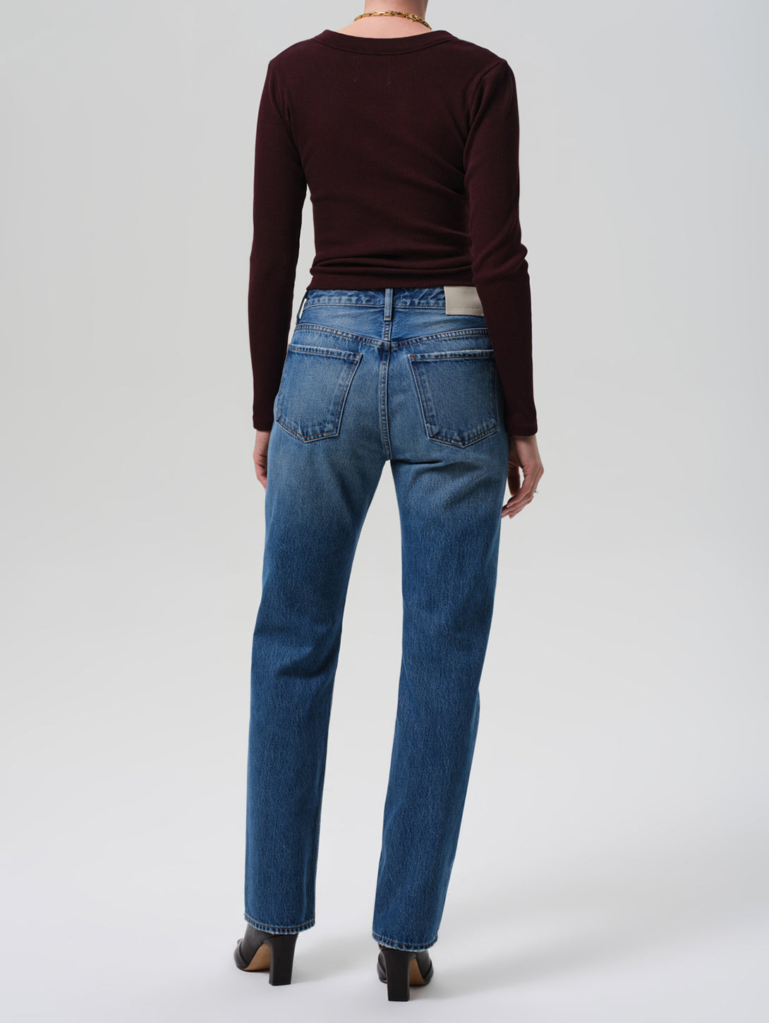 A refined essential with a modern edge, the Zurie is cut with a high rise and straight leg for a streamlined silhouette. Crafted from rigid regenerative cotton denim with a soft, broken-in feel, it offers lasting structure without stiffness. The medium indigo wash adds a lived-in touch—easy to style with everything from crisp shirting to slouchy knits.