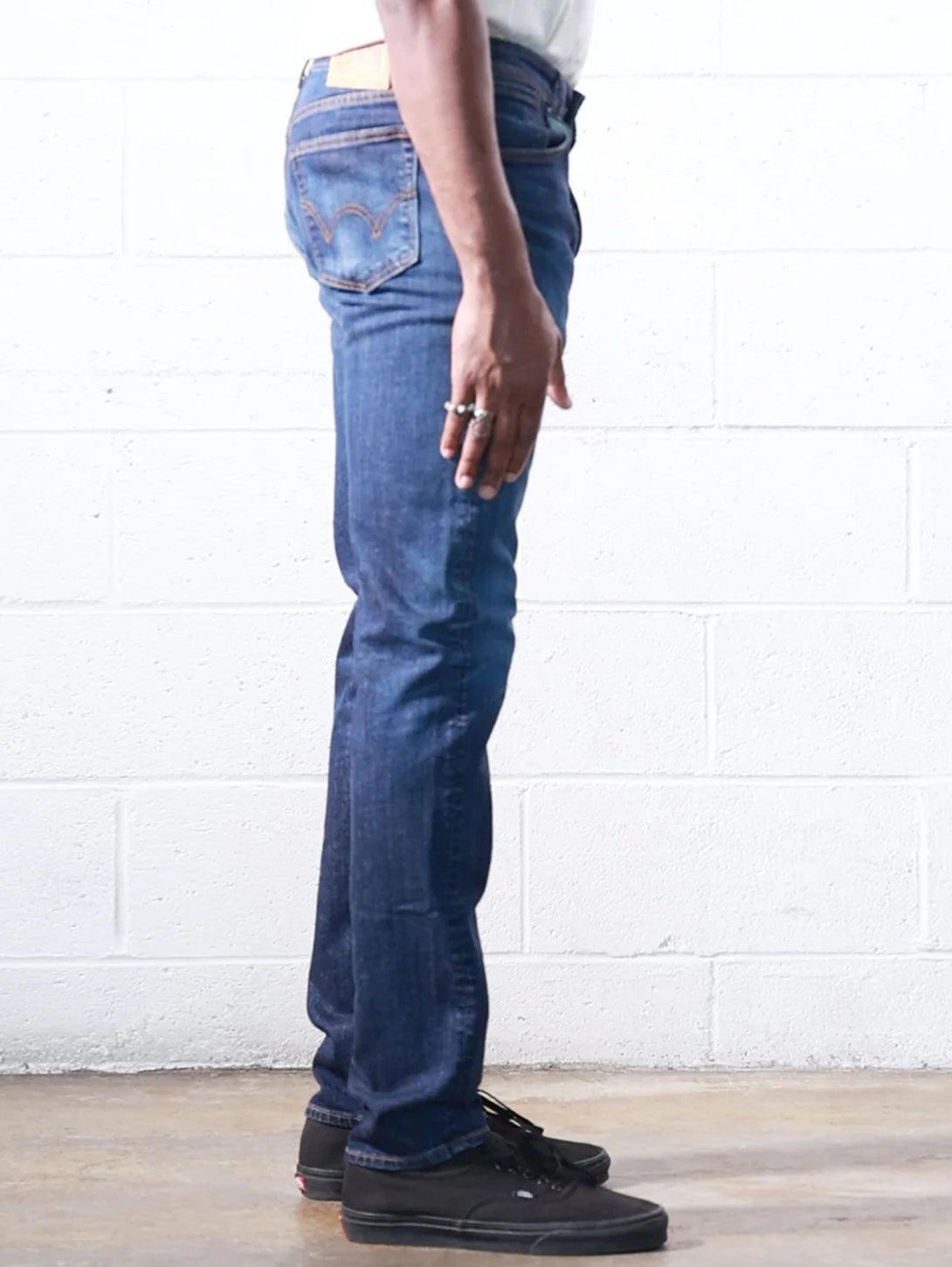 Introducing AOMORI (“Blue Forest”), a collection focused on mixing comfort with authenticity and function. Edwin’s Slim Taper is the signature carrot fit, properly balancing a roomy thigh with a tapered bottom. Produced in a 12 oz. light blue cotton stretch “Kurai” wash. Made in Japan with a zipper rise closure, classic contrast stitching and 5-pocket styling.