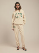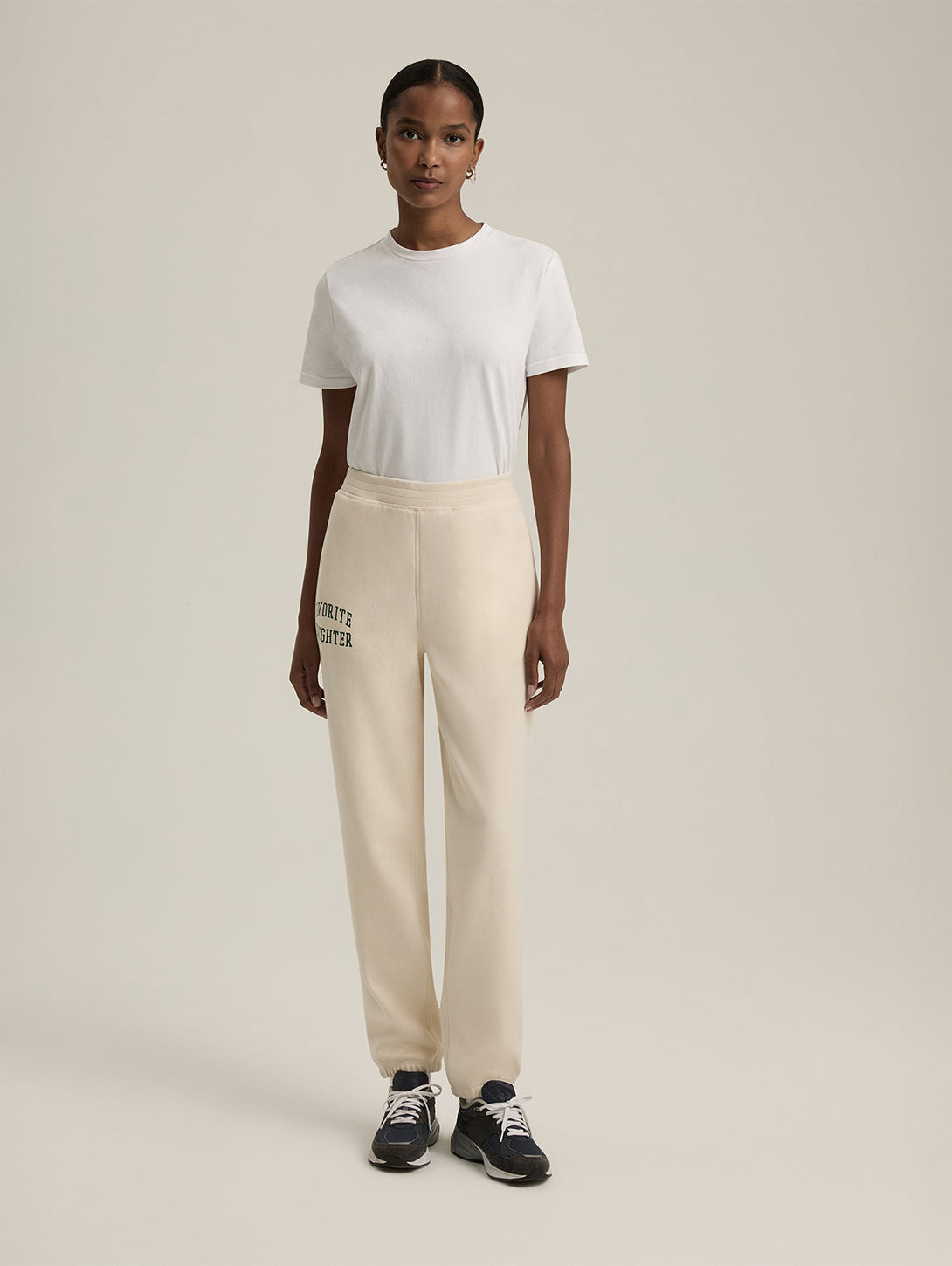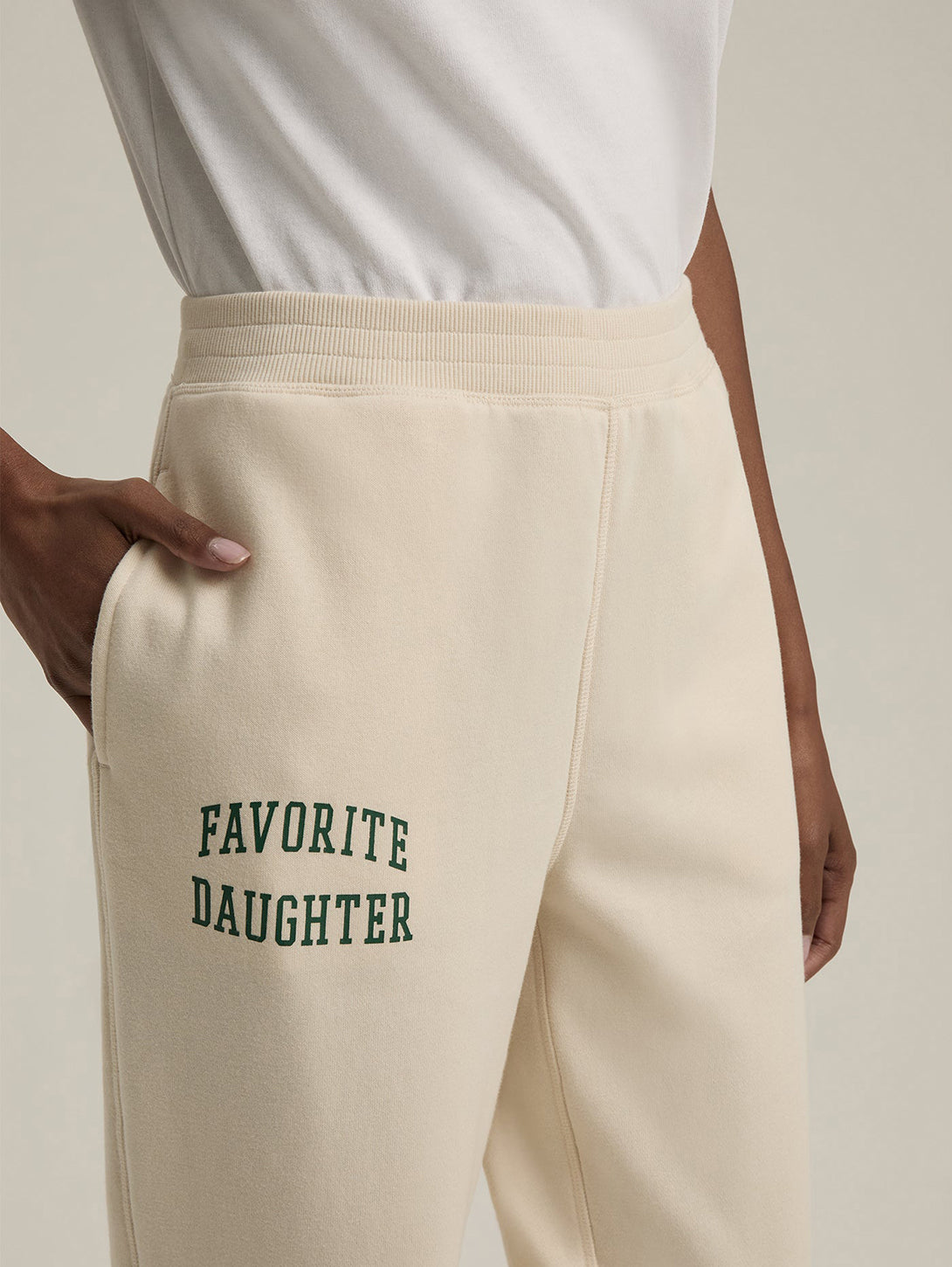 The comfiest pair ever constructed. The Logo Jogger is that super-soft favorite with all the style details—an elasticized waistband, side seam pockets, Favorite Daughter logo (of course), and a relaxed, classic fit. Designed with a 31" inseam and an 11.5" rise for the perfect laid-back feel.