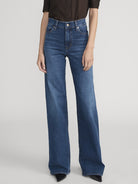 Our bestselling fit, now tall girl approved. Le Slim Palazzo Long offers an extended 34" inseam, the same flattering high rise, fitted hip, and subtle wide-leg flare. The dark blue jean is crafted from a sustainable, super-stretch cotton blend for soft and comfortable wear.