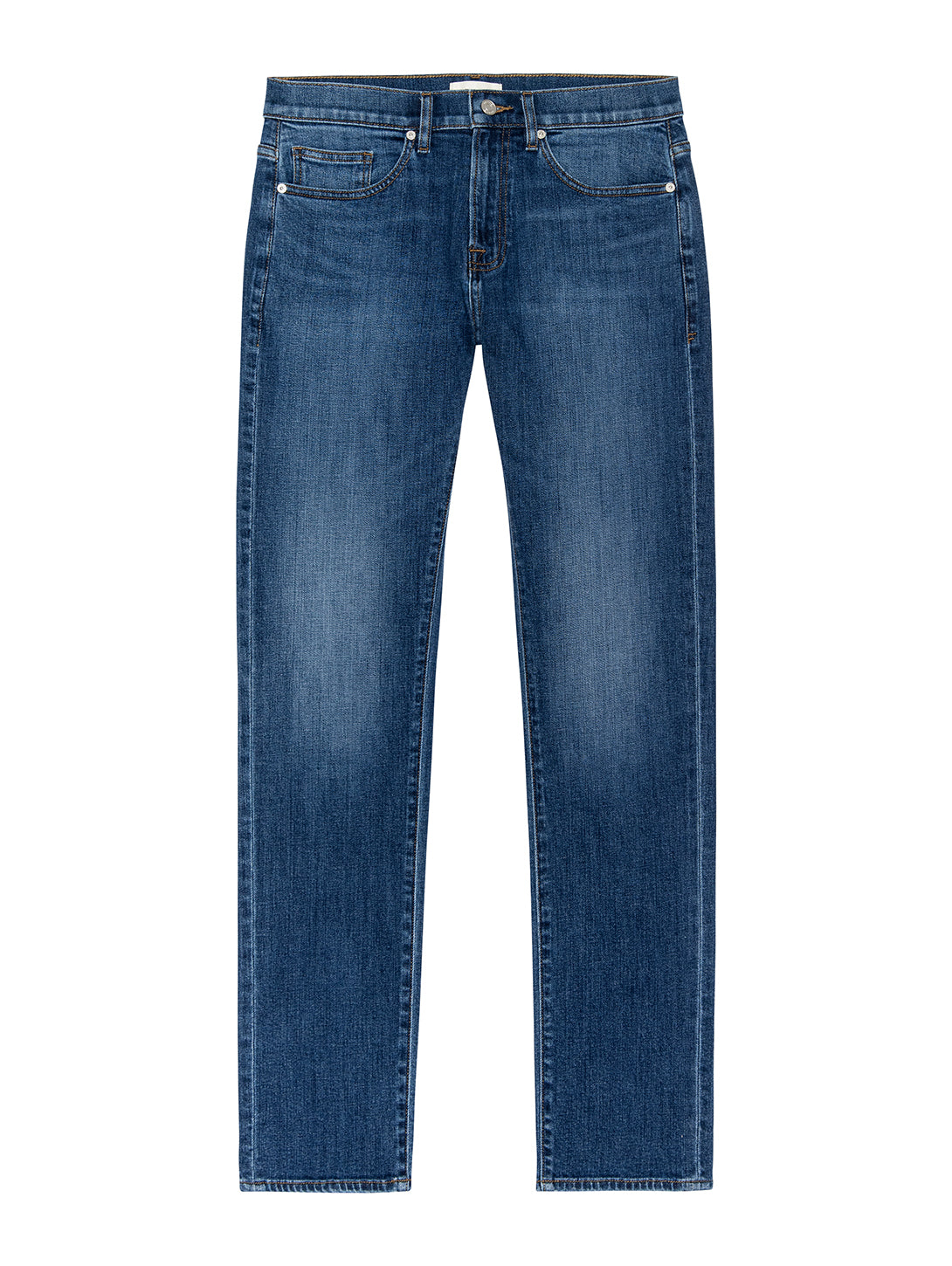 A FRAME signature jean, this style is designed with a classic 5-pocket construction, comfortable mid rise, flattering straight leg, and tapered slim fit at the leg opening. Crafted from smooth Structured Stretch denim.