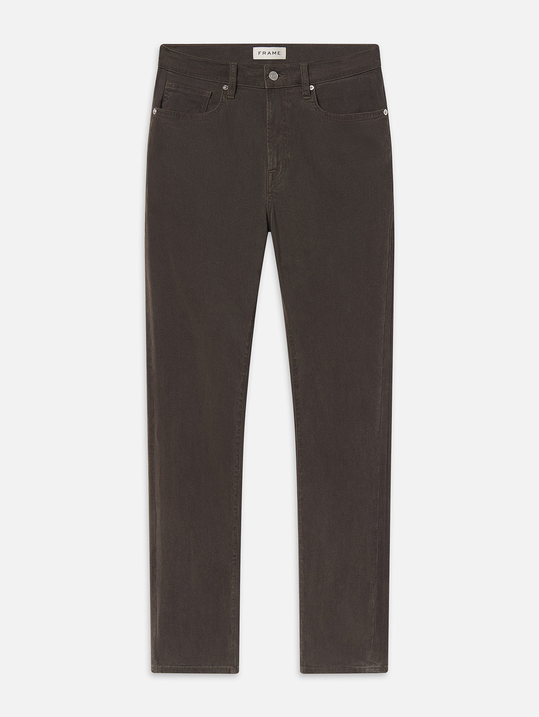 A FRAME signature jean designed with a classic 5-pocket construction, comfortable mid-rise waist, straight leg, and tapered slim fit at the leg opening. Crafted from our best-selling Soft Touch Twill fabrication, offering an ultra-smooth brushed feel.