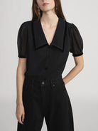 The Velvet Trim Sailor Blouse - Black