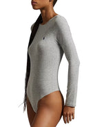The Polo Ralph Lauren Women's Club Cotton Long-Sleeve Thong Bodysuit is a versatile and comfortable staple for any wardrobe. Crafted from soft, breathable cotton with a stretchy fit, it ensures all-day comfort. The bodysuit features a classic crew neckline and long sleeves, complemented by a thong back that provides a smooth, seamless appearance under clothing. It is detailed with the signature embroidered Pony on the left chest and is machine washable for easy care.