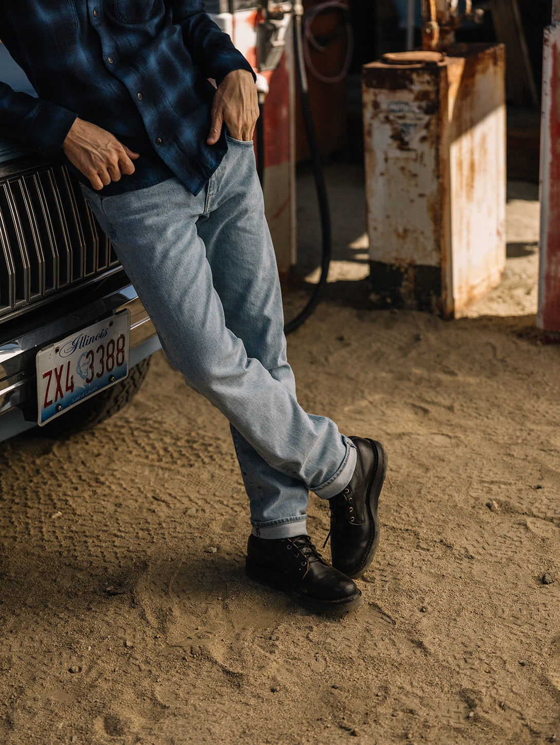 - Light wash denim