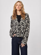 Bold meets cozy in The Xavier Bomber, a statement knit jacket that redefines casual cool. Featuring a striking black and ivory zebra pattern, this bomber-style knit is crafted with a soft textured feel, zip-front closure, and ribbed trim for a snug, athletic-inspired finish. Perfect for throwing on over basics or elevating denim looks with an edge.
