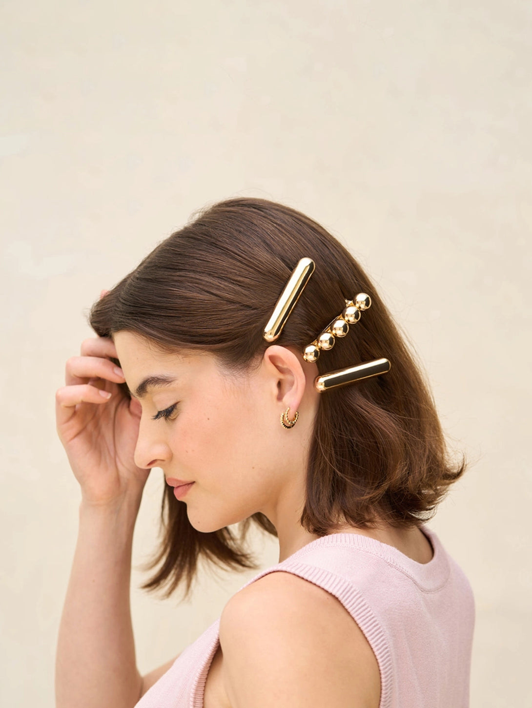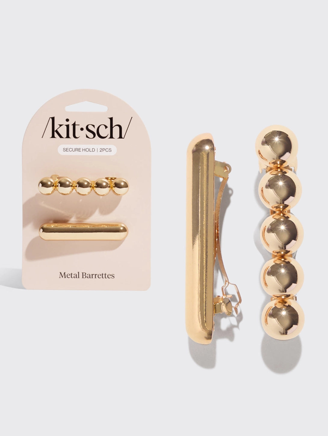 Elevate your hair game with our Gold Metal Barrettes from KITSCH. These barrettes are not only stylish but also a practical solution for managing your hair. KITSCH, a global beauty powerhouse, is committed to providing easy, elevated beauty solutions. Our barrettes are designed to be reliable and special, reflecting the brand's dedication to sustainability and quality. Whether you're dressing up for an event or need a quick fix, these Gold Metal Barrettes are your go-to hair accessory.