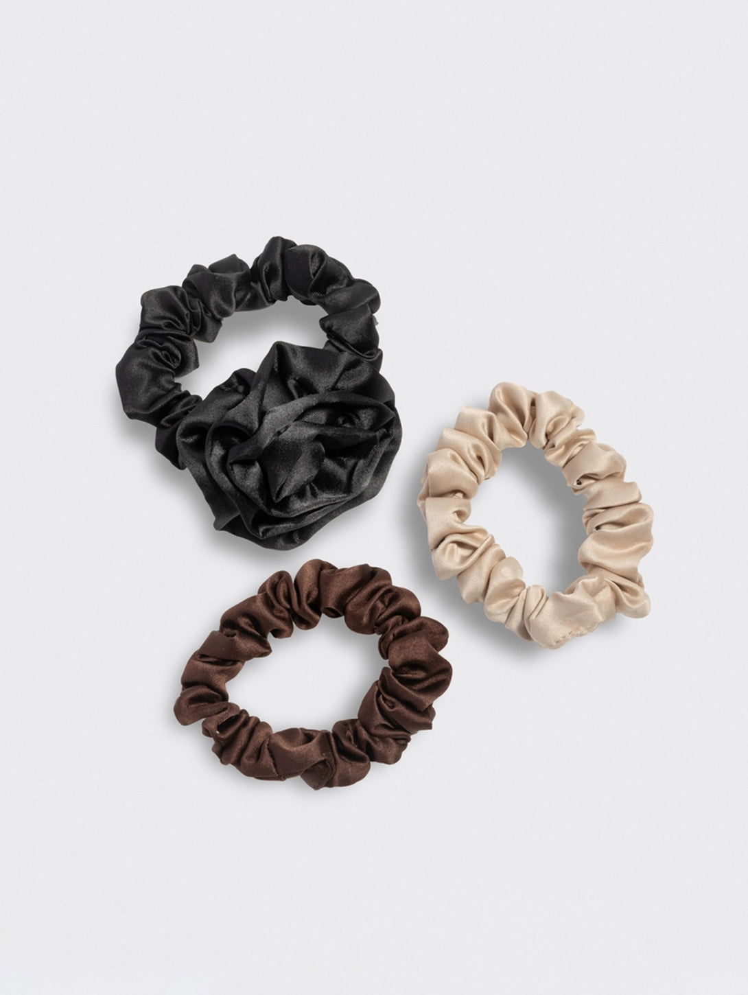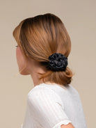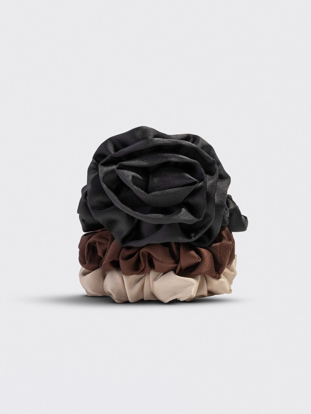 Rosette Ruched Satin Scrunchies 3pc Set - Black