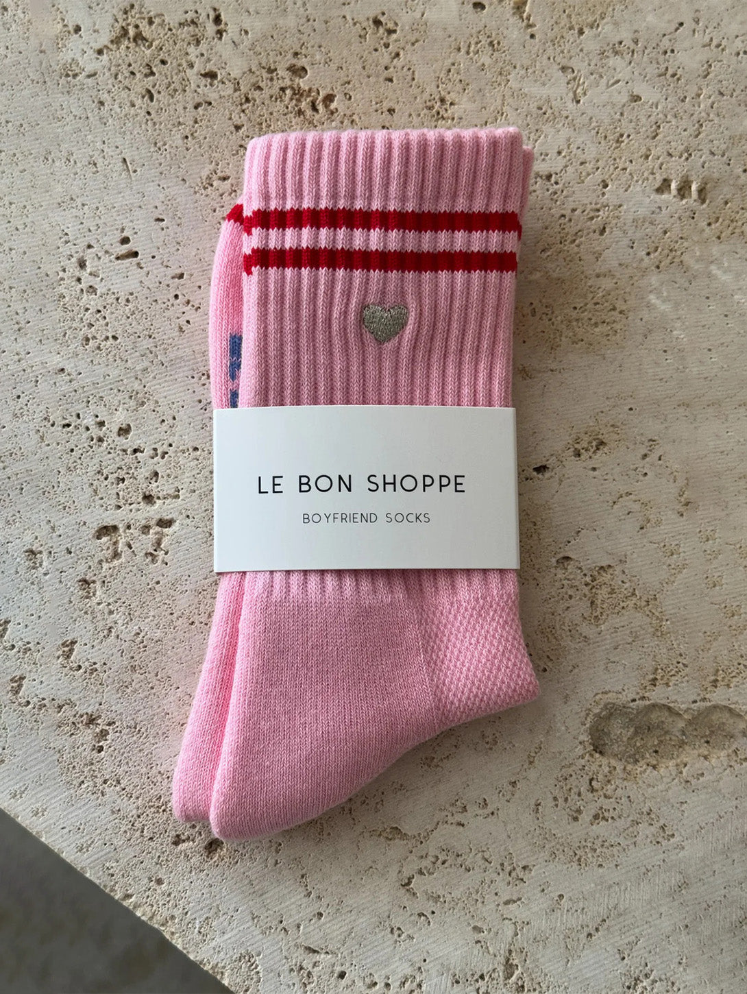 Embroidered Boyfriend Socks - Amour Pink + Heart