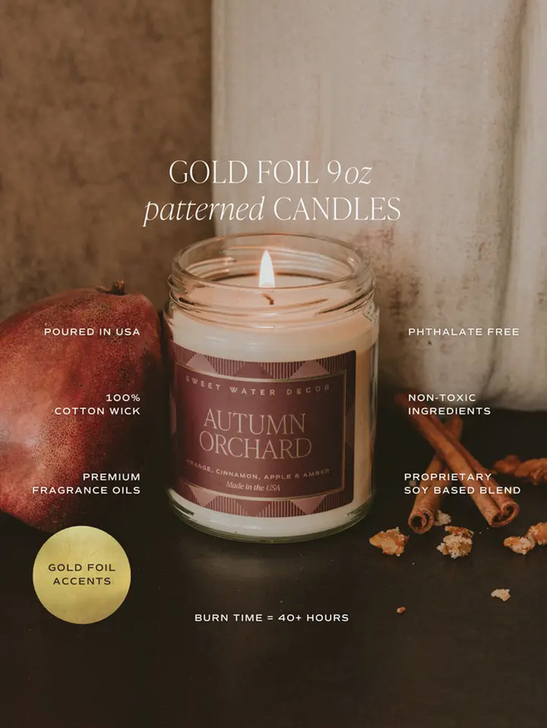 Step into the heart of fall with our Autumn Orchard Candle. Imagine a serene orchard, where the crisp scent of orange blends with the warmth of cinnamon, apple, and amber from our Mulled Cider fragrance. This candle fills your home with the essence of a perfect autumn day, making it ideal for cozy evenings and seasonal gatherings.